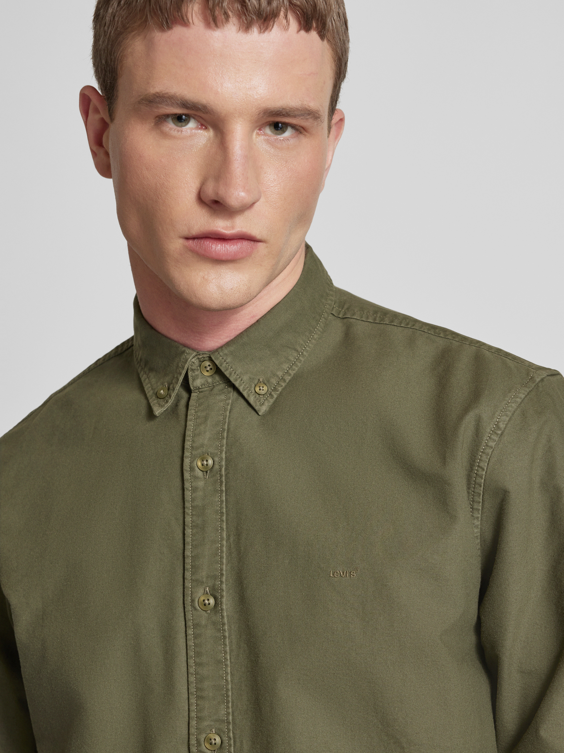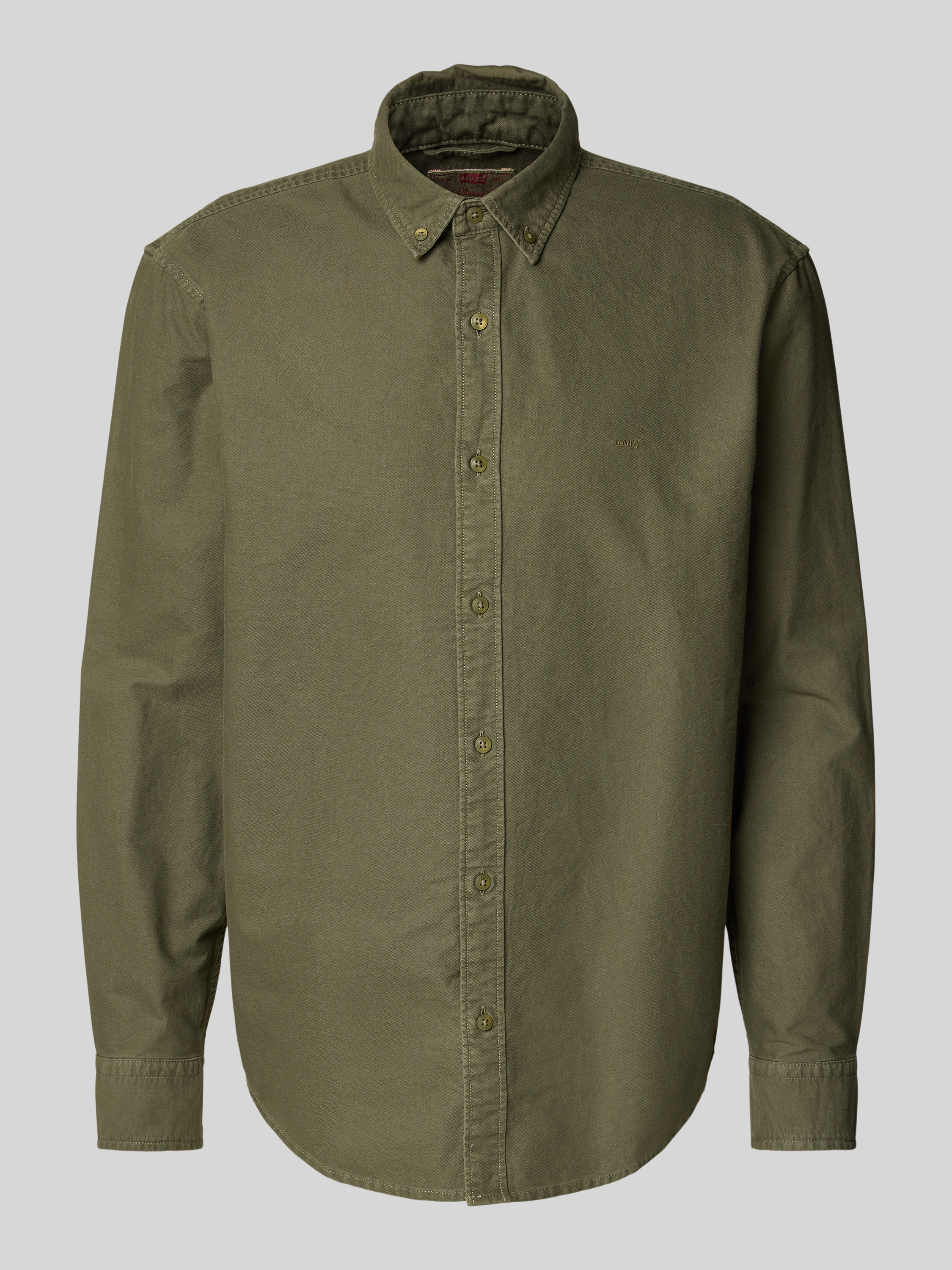 Koszula casualowa o kroju regular fit z kołnierzykiem typu button down - oliwkowy