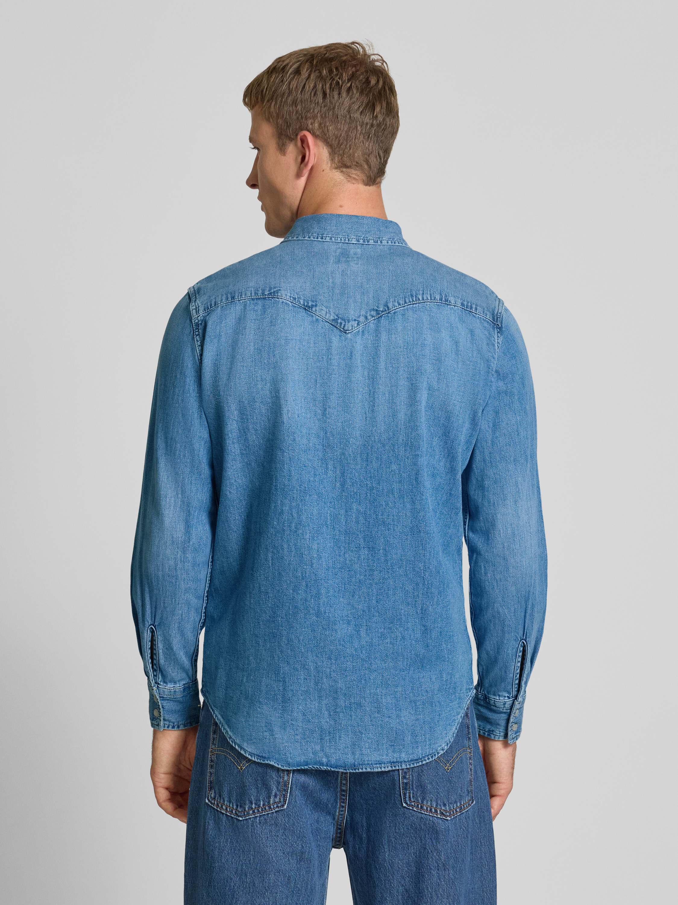 Koszula jeansowa o kroju regular fit z kieszeniami na piersi i detalem z logo - jeansowy niebieski