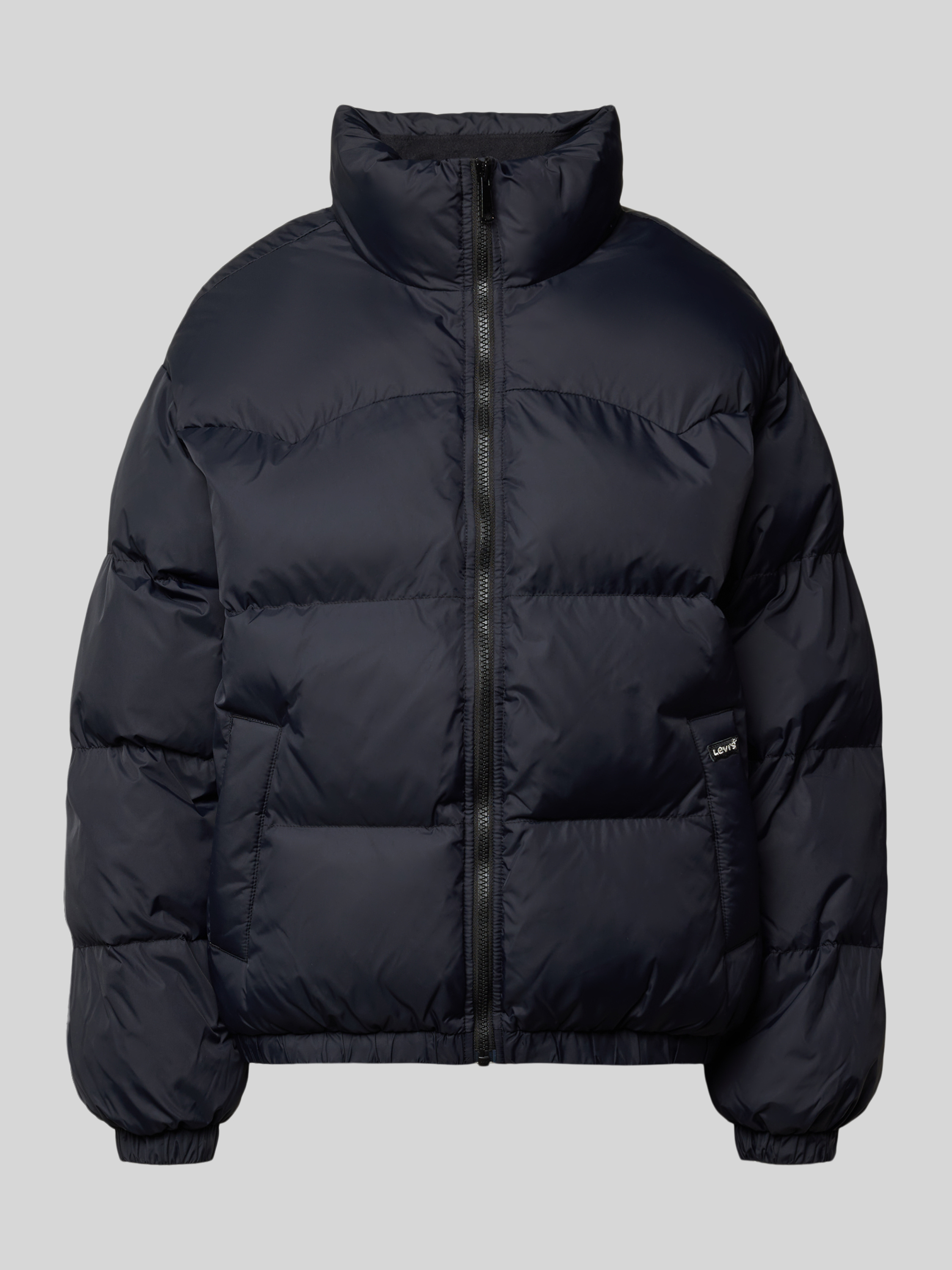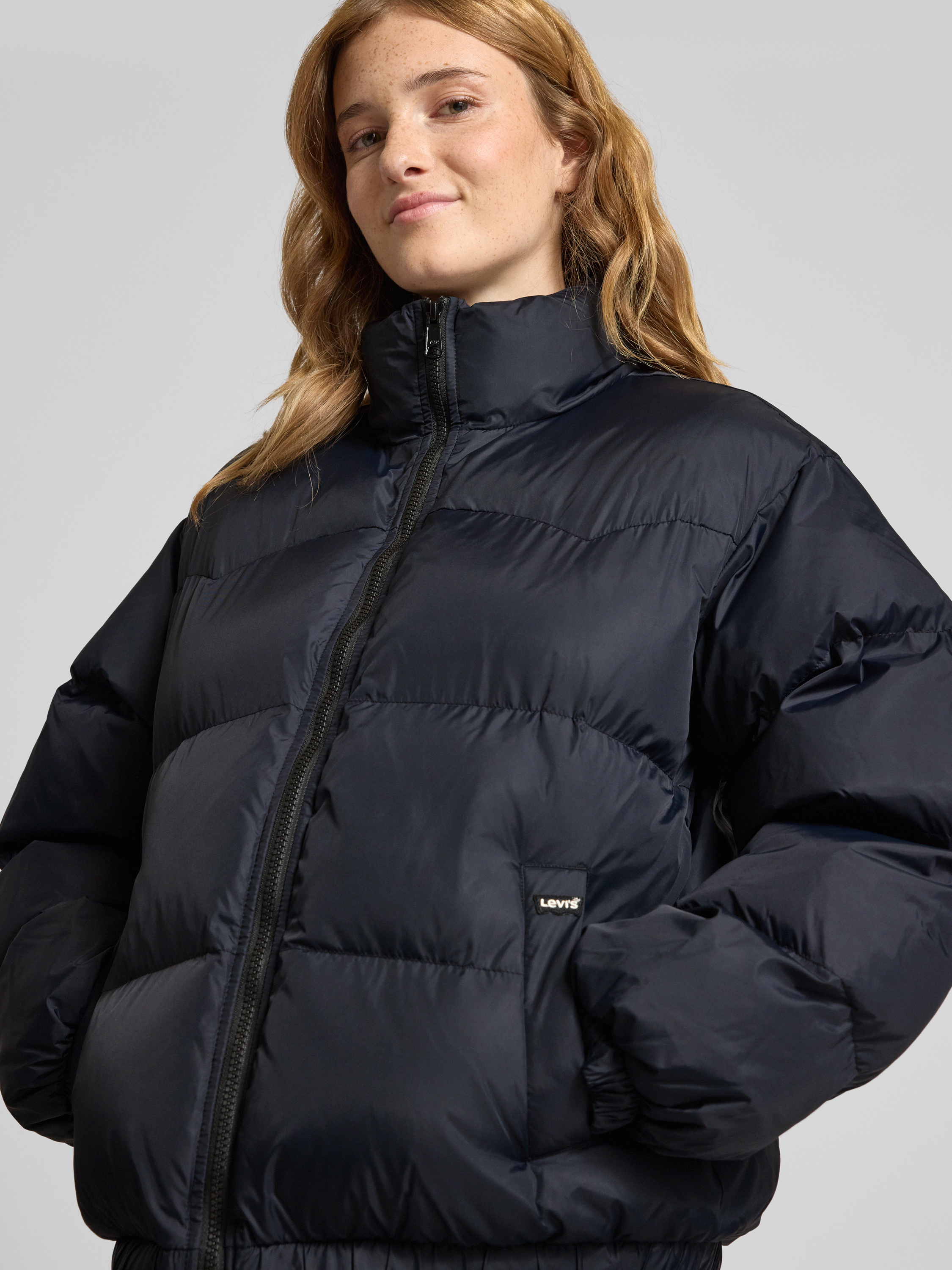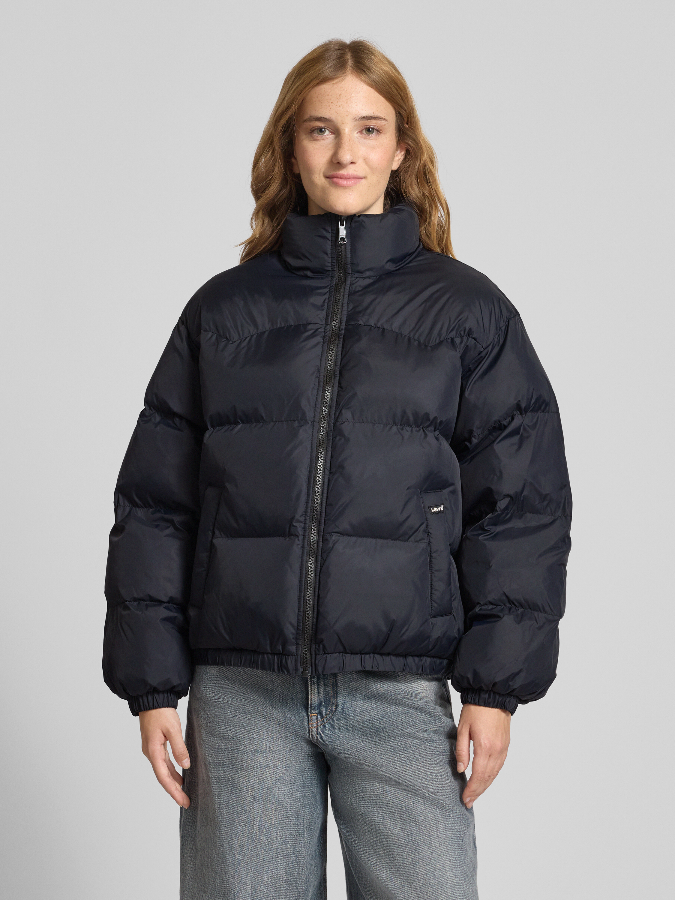 Kurtka pikowana ze stójką i wpuszczanymi rękawami - czarny
