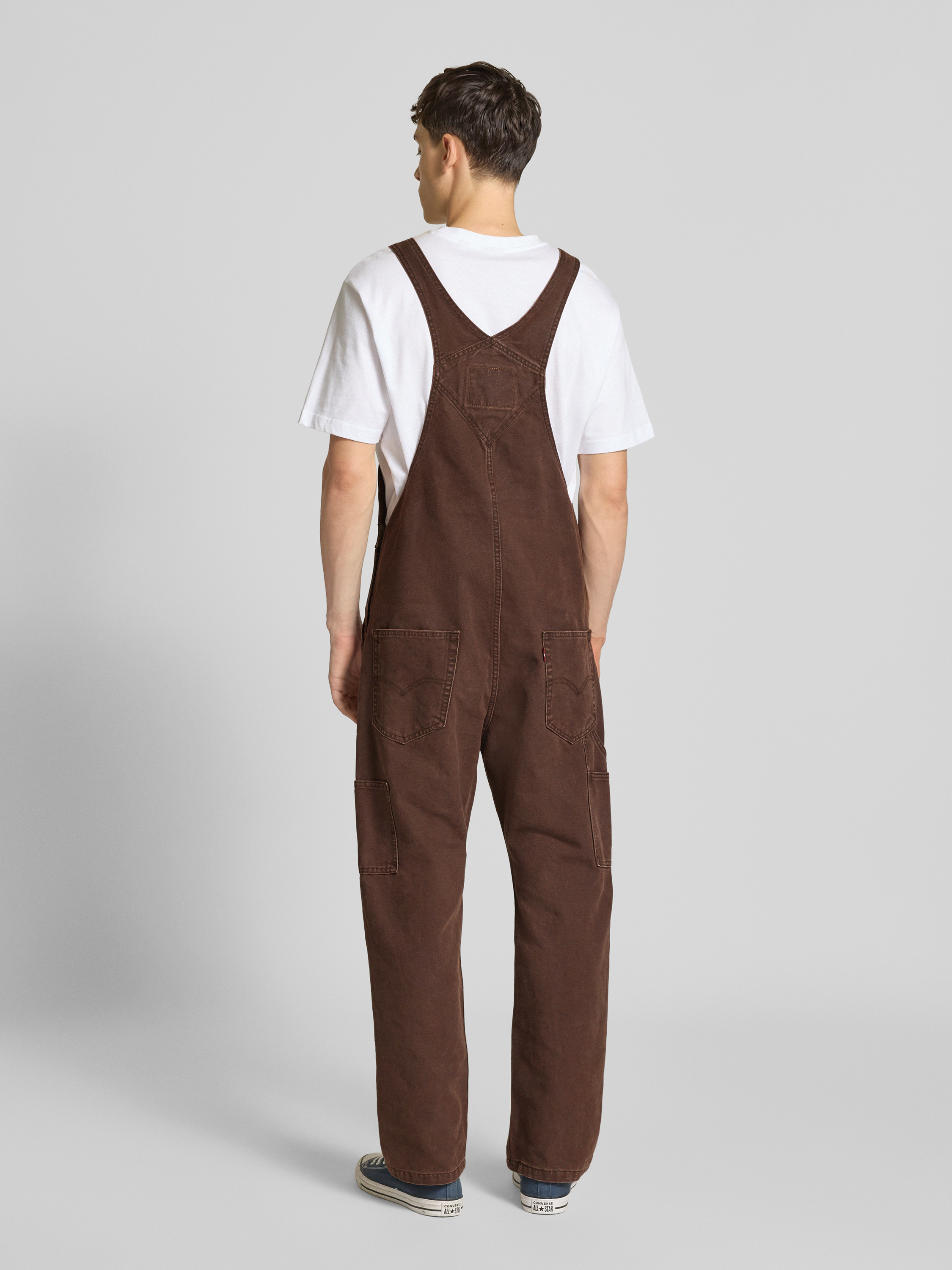 Ogrodniczki z wpuszczanymi kieszeniami i naszywką z logo - ciemnobrązowy