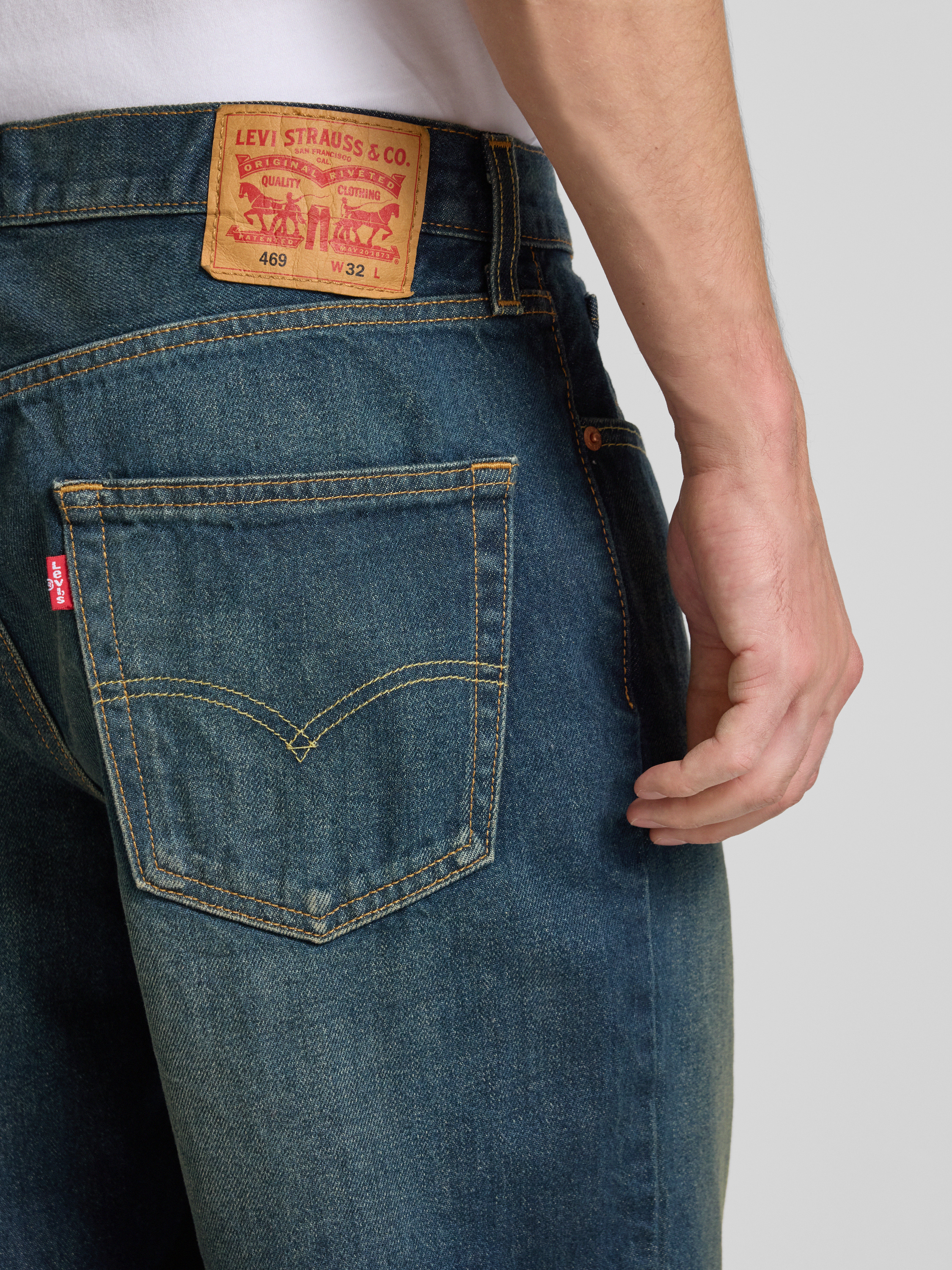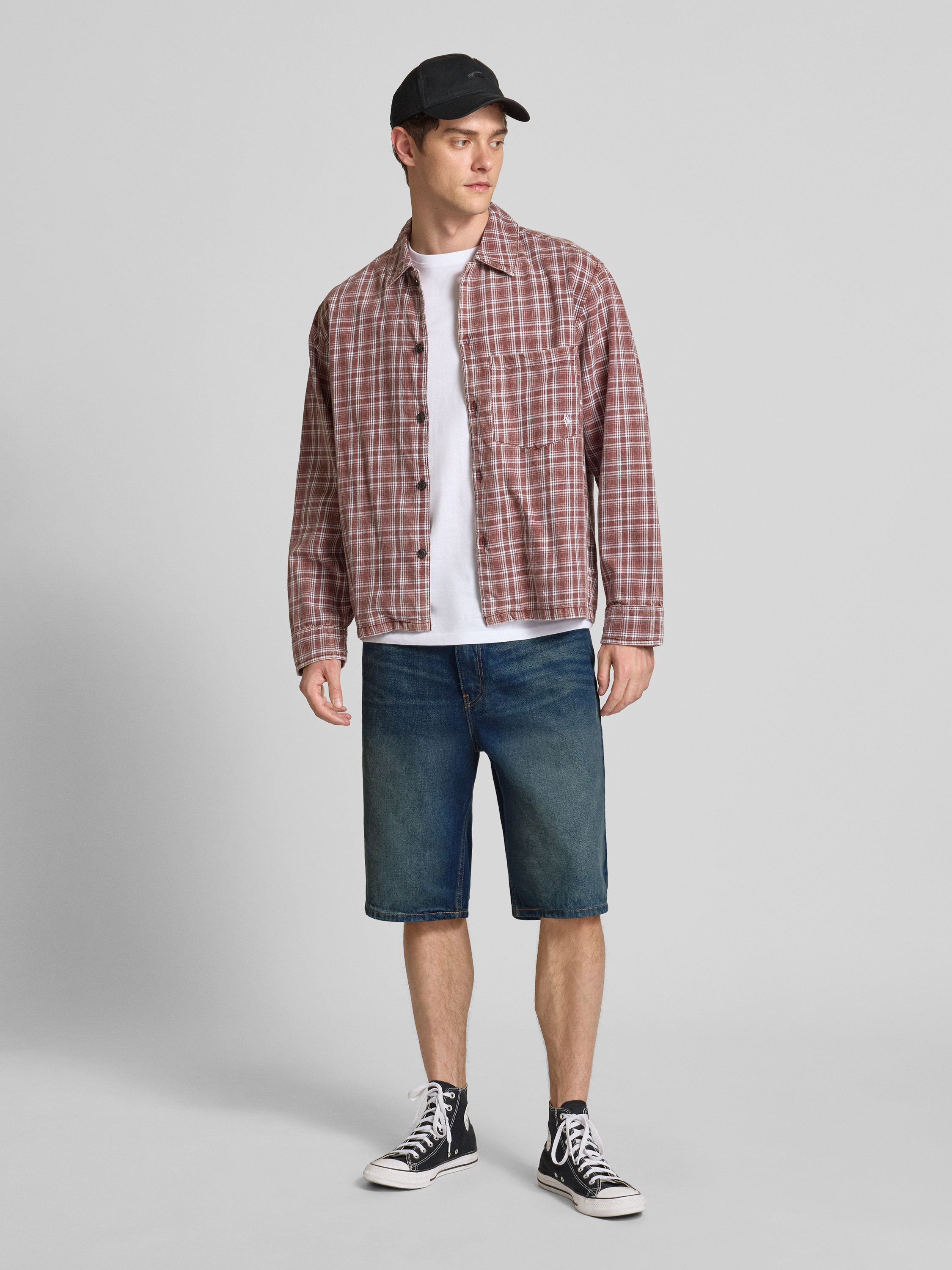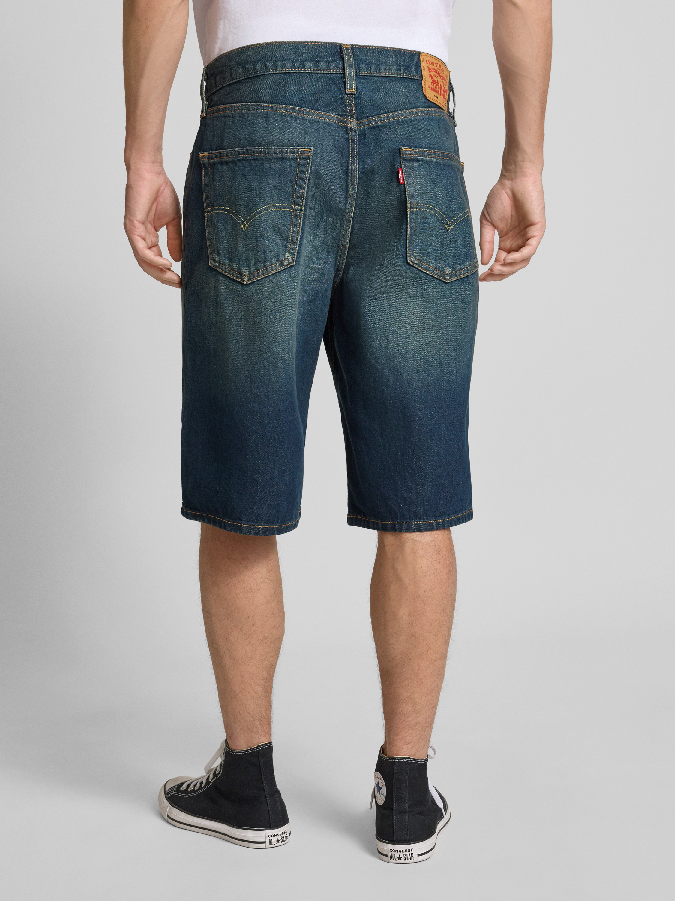 Szorty jeansowe o luźnym kroju z efektem znoszenia - ciemnoniebieski
