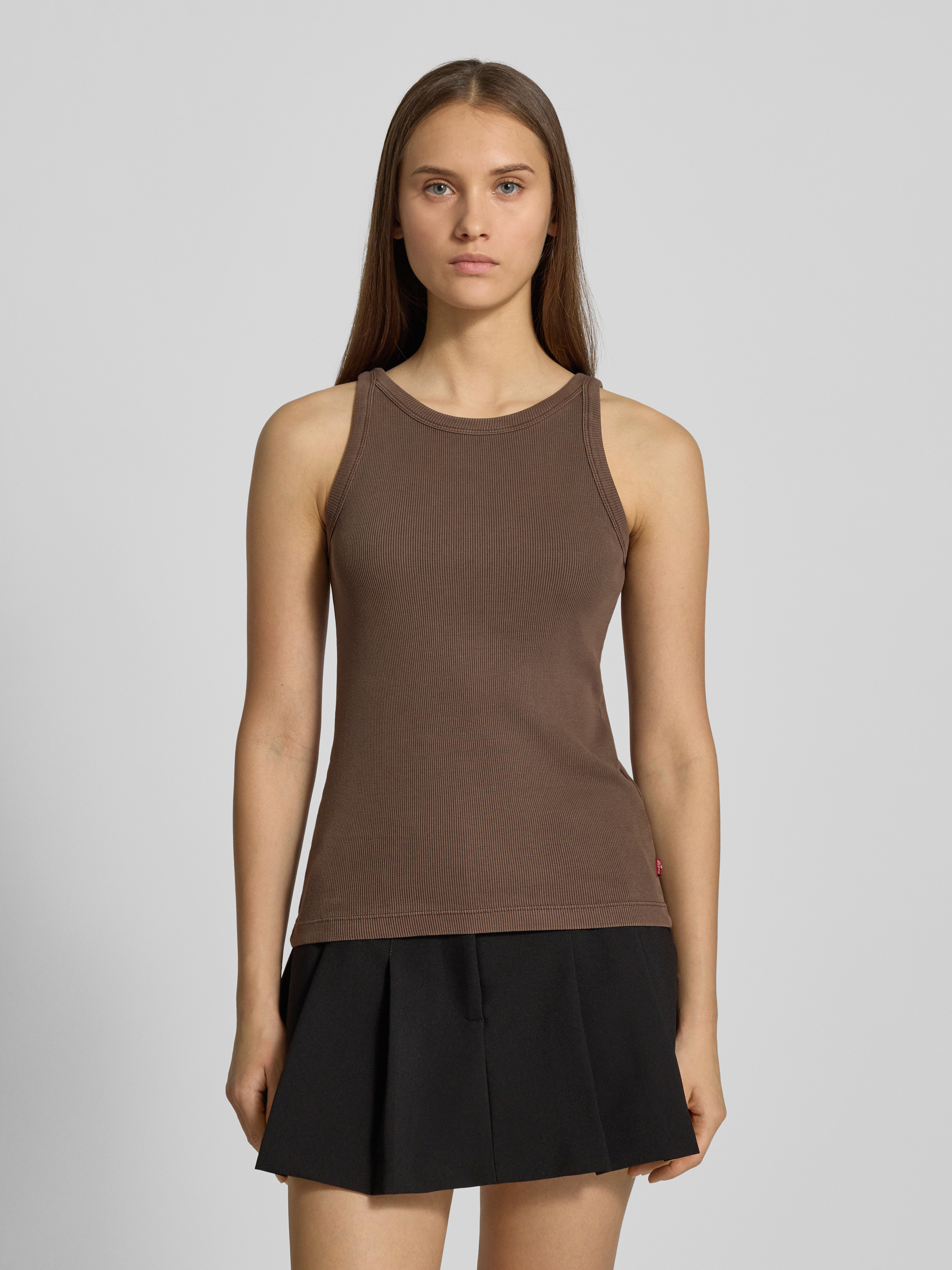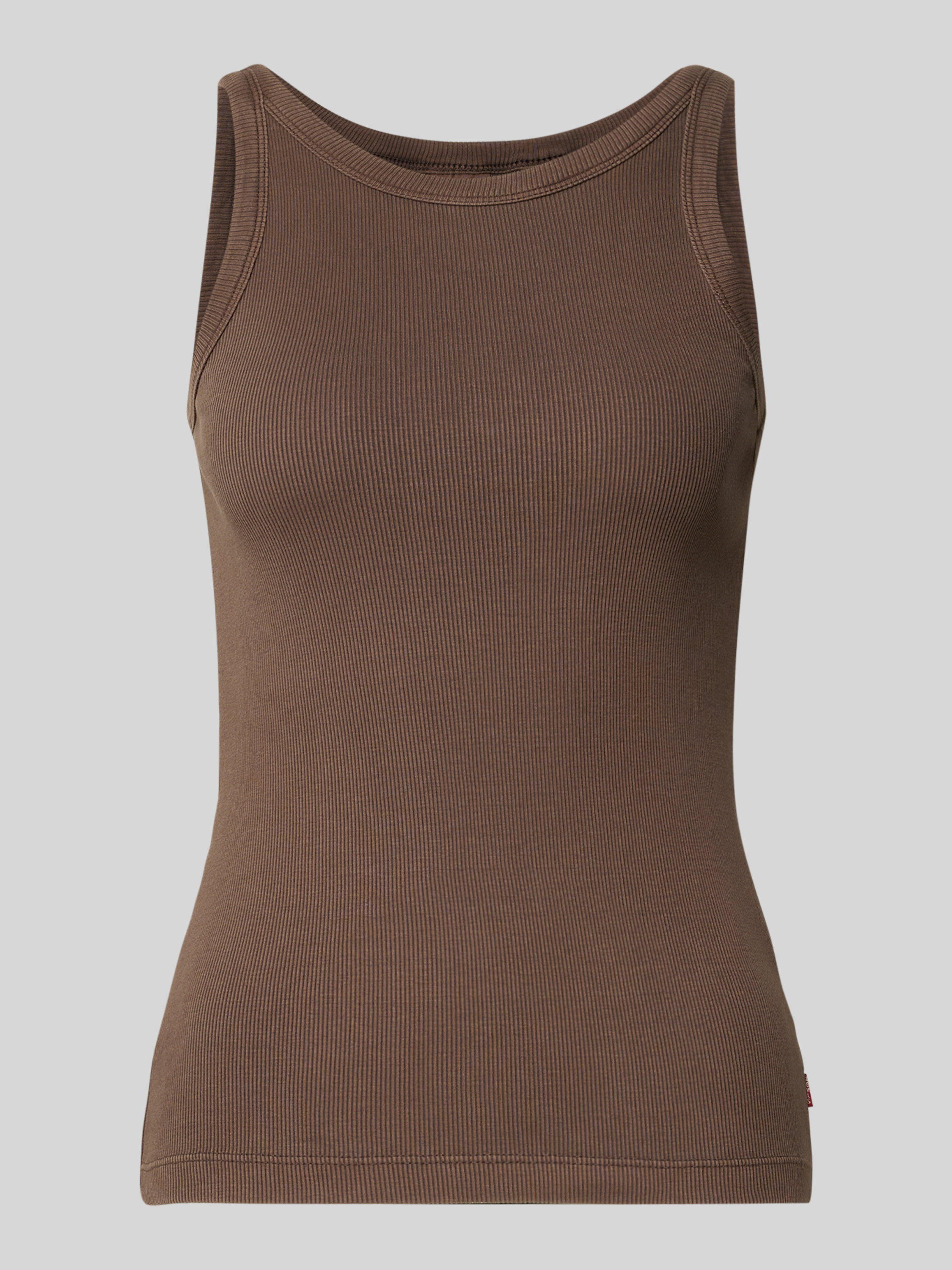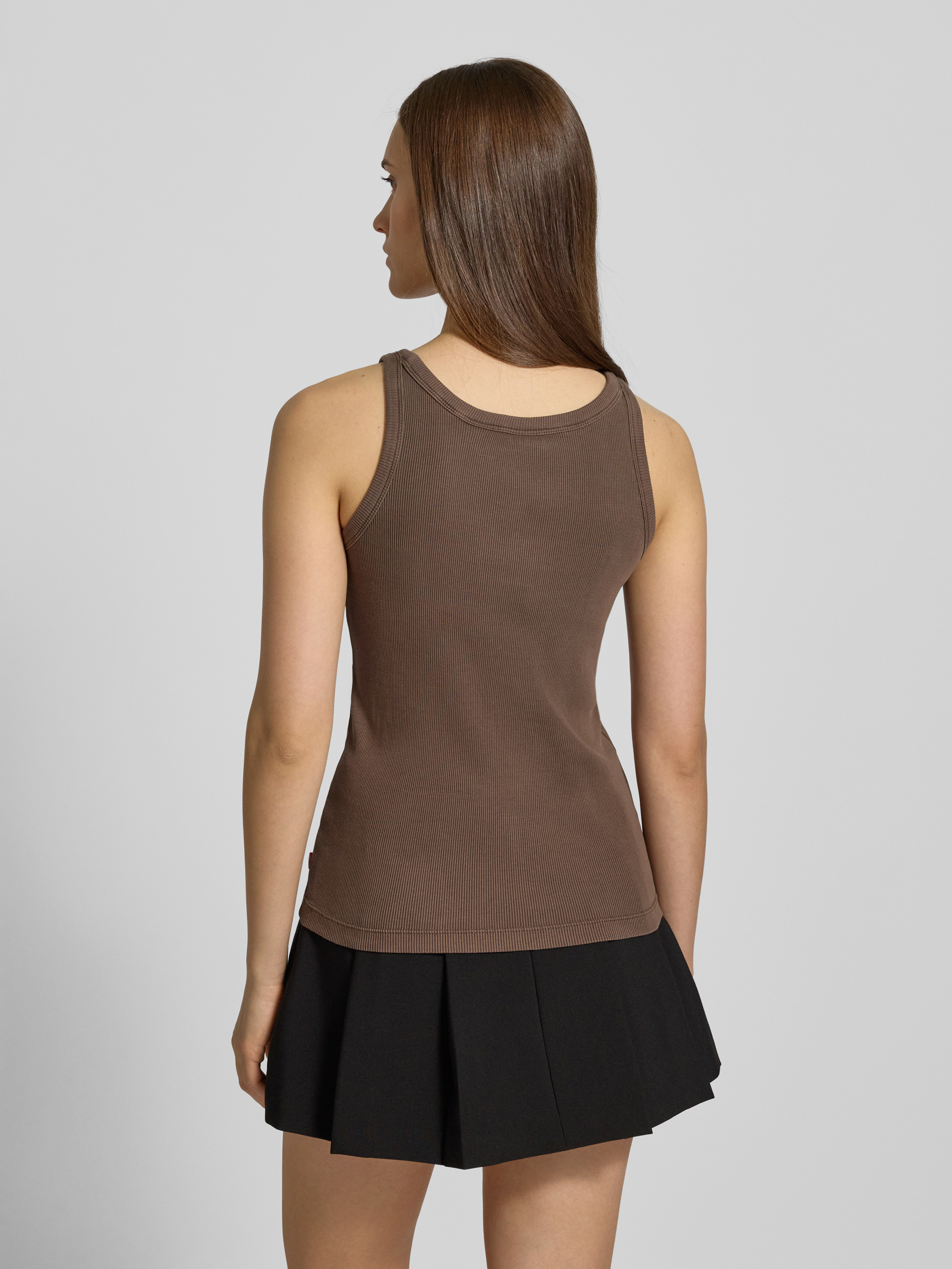 Top z drobnym prążkowaniem model ‘ESSENTIAL’ - średniobrązowy