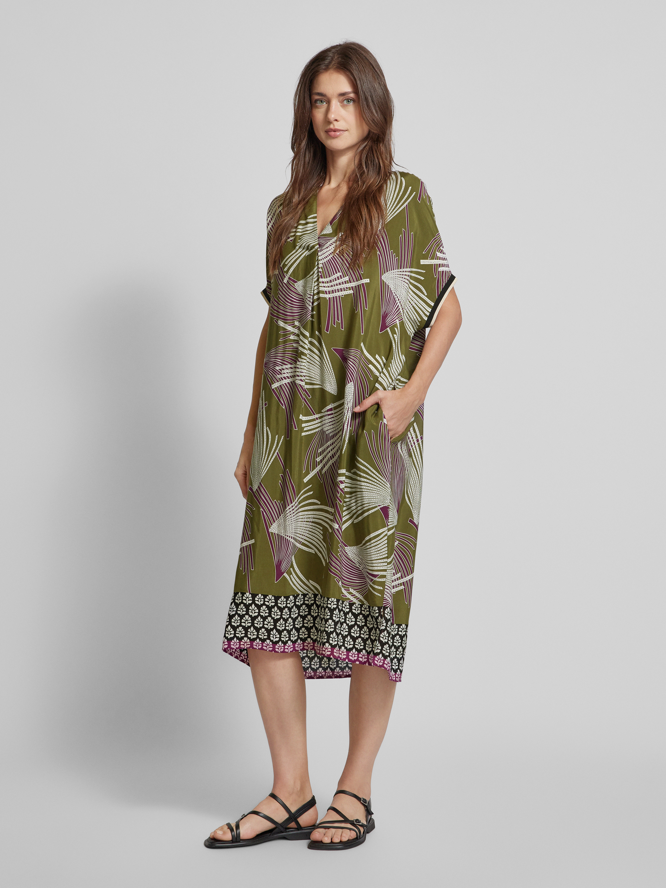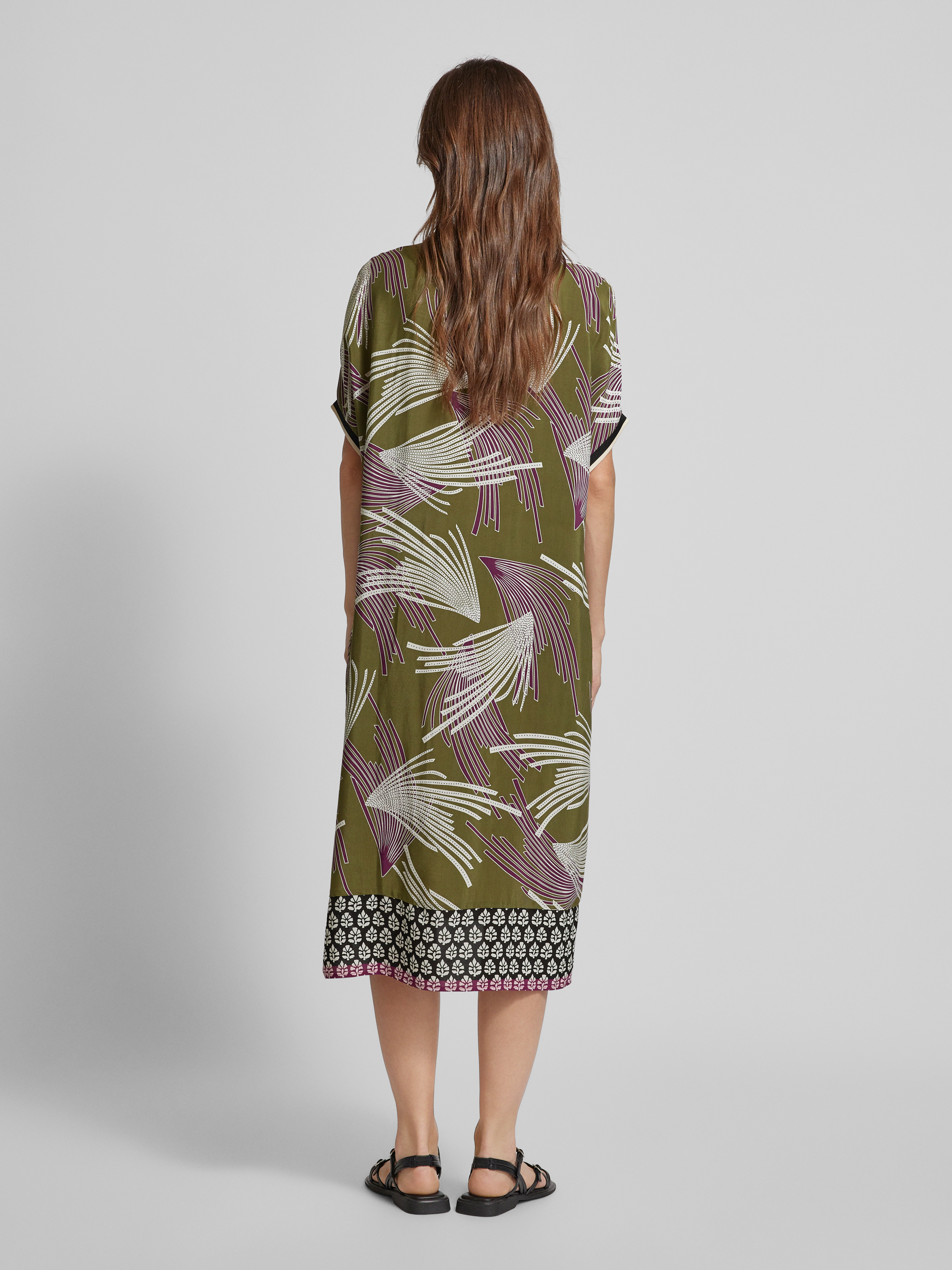 Sukienka midi z kołnierzem z lamówką model ‘Roana’ - khaki