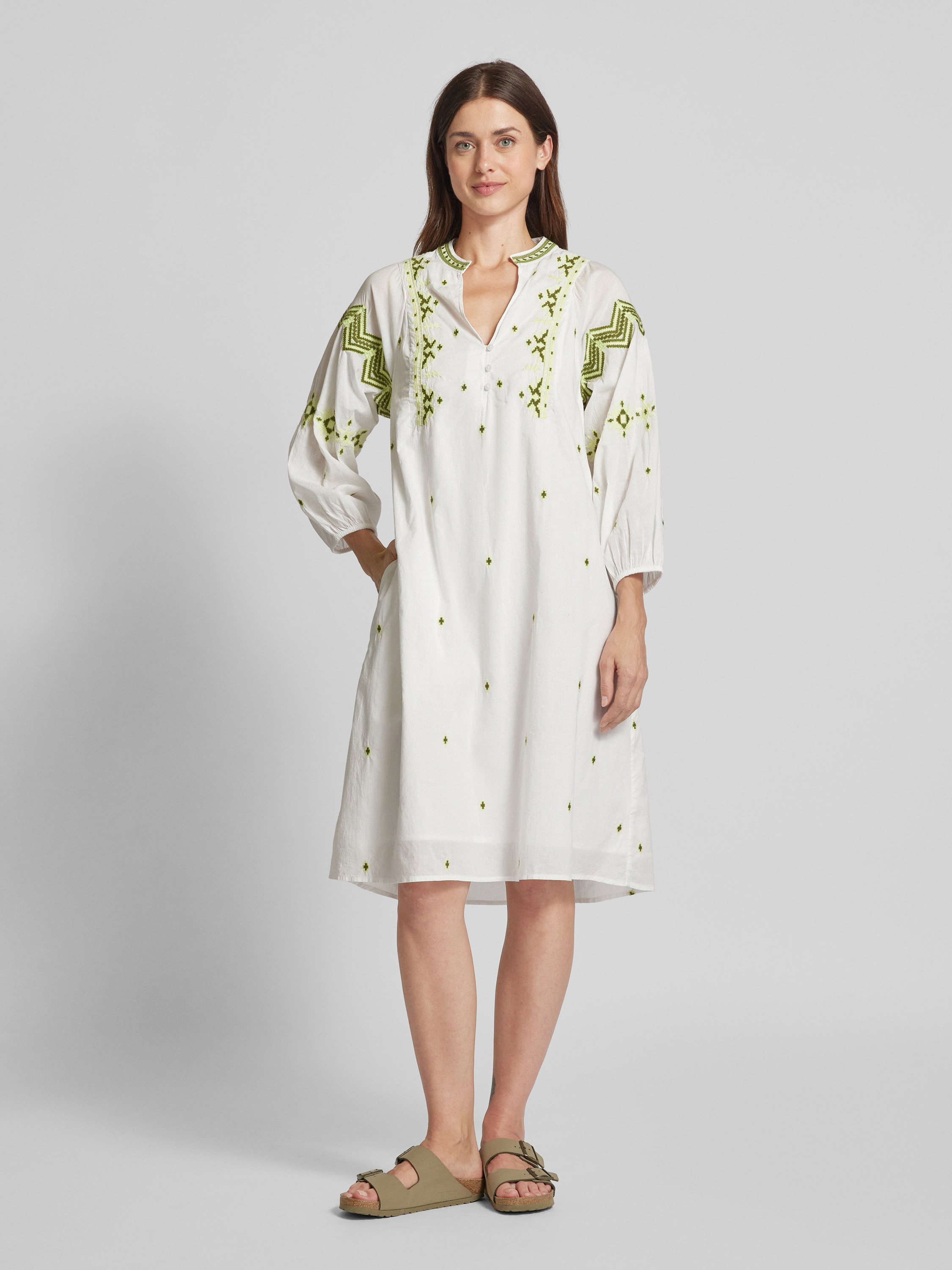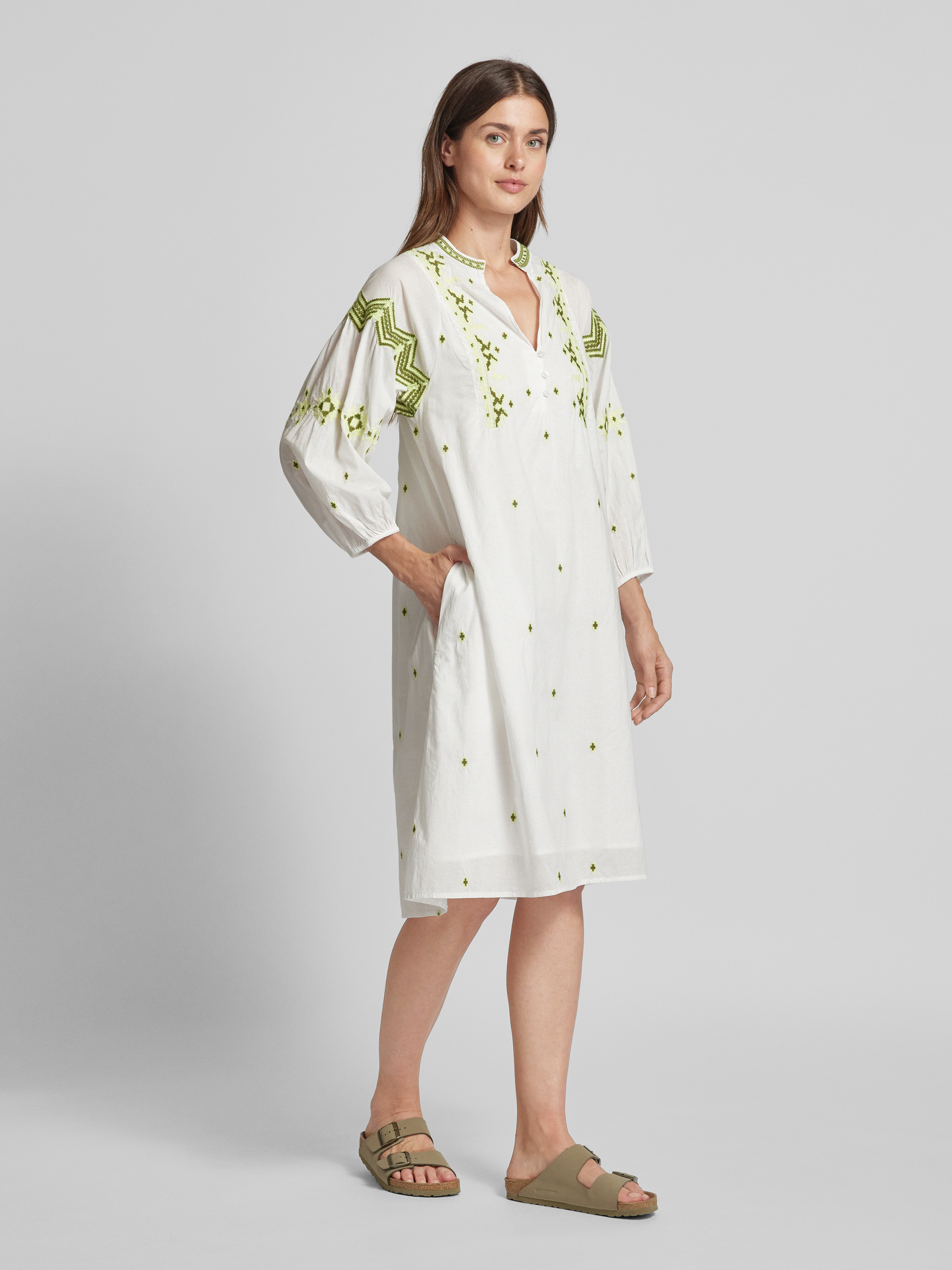 Sukienka o długości do kolan z rękawem o dł. 3/4 model ‘Evy’ - jasnożółty