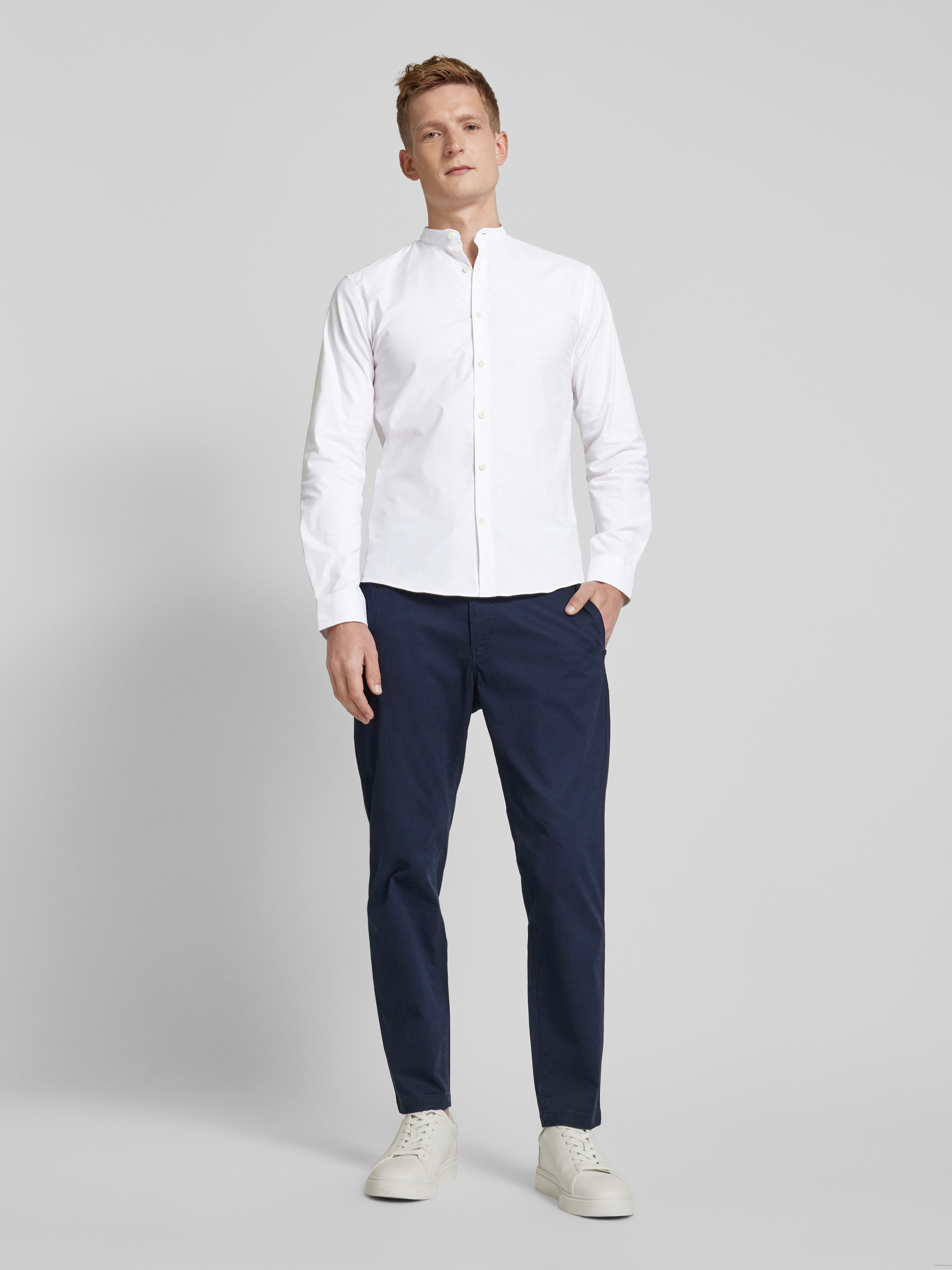 Koszula casualowa o kroju slim fit ze stójką model ‘Oxford’ - biały