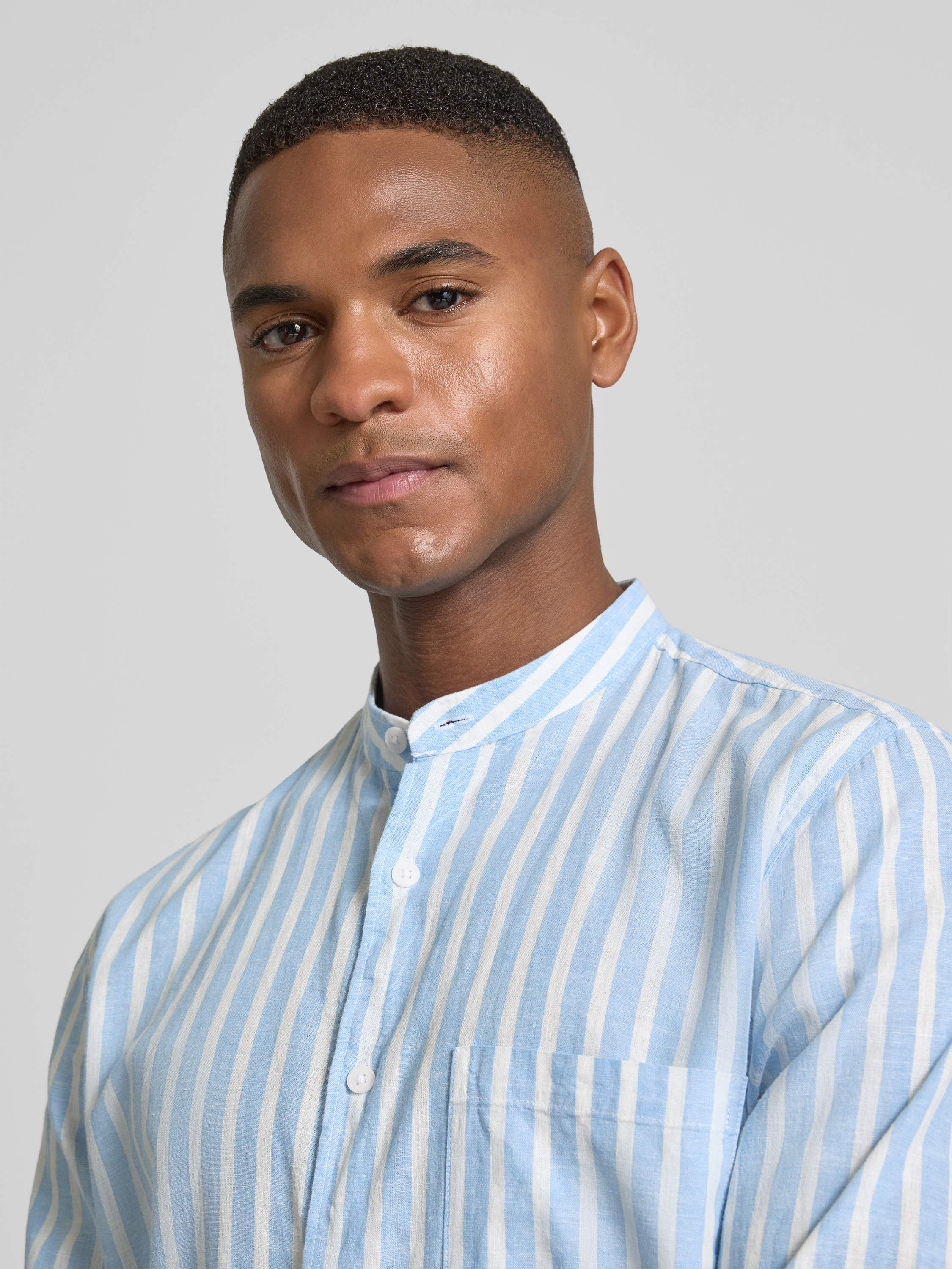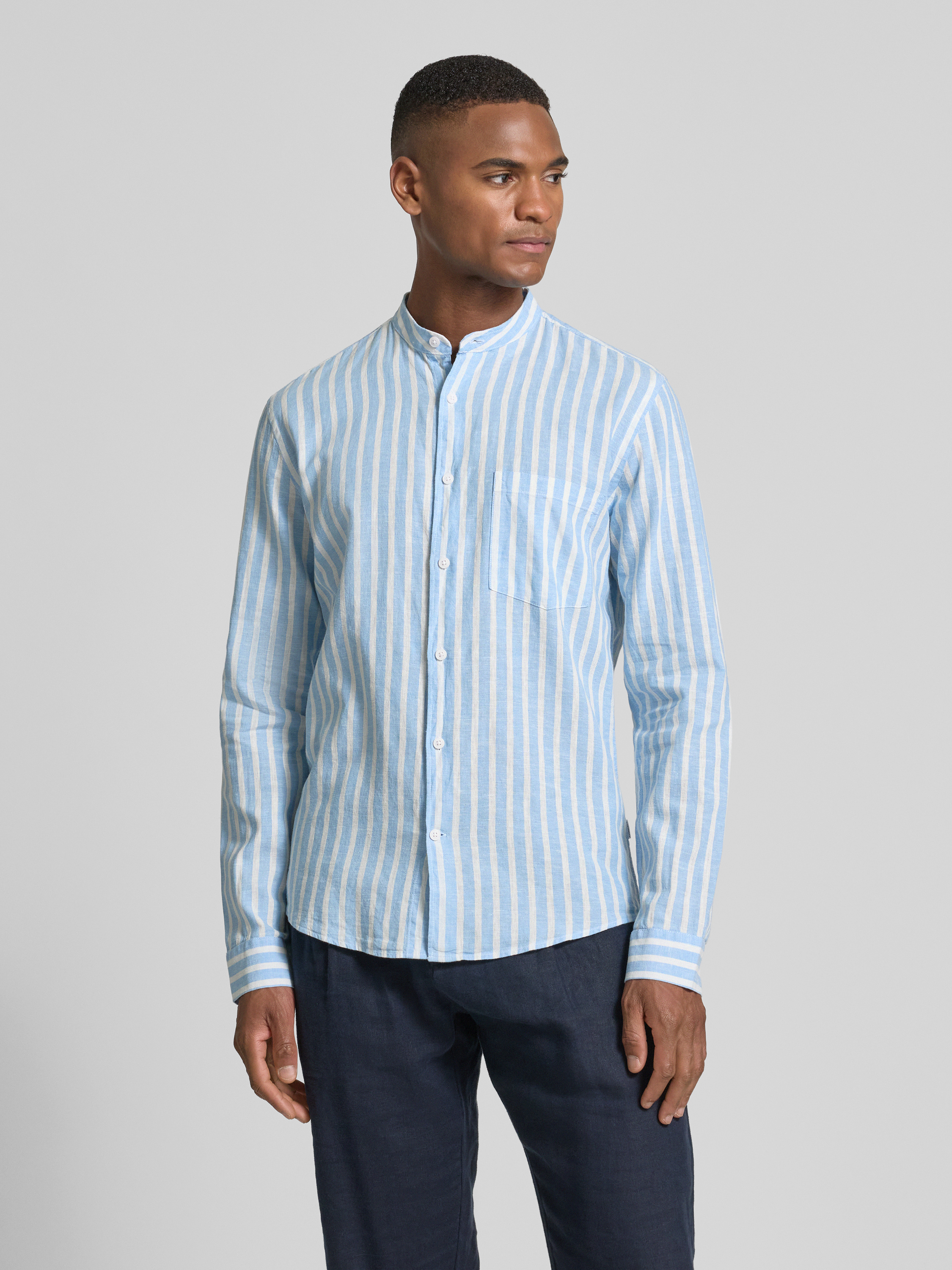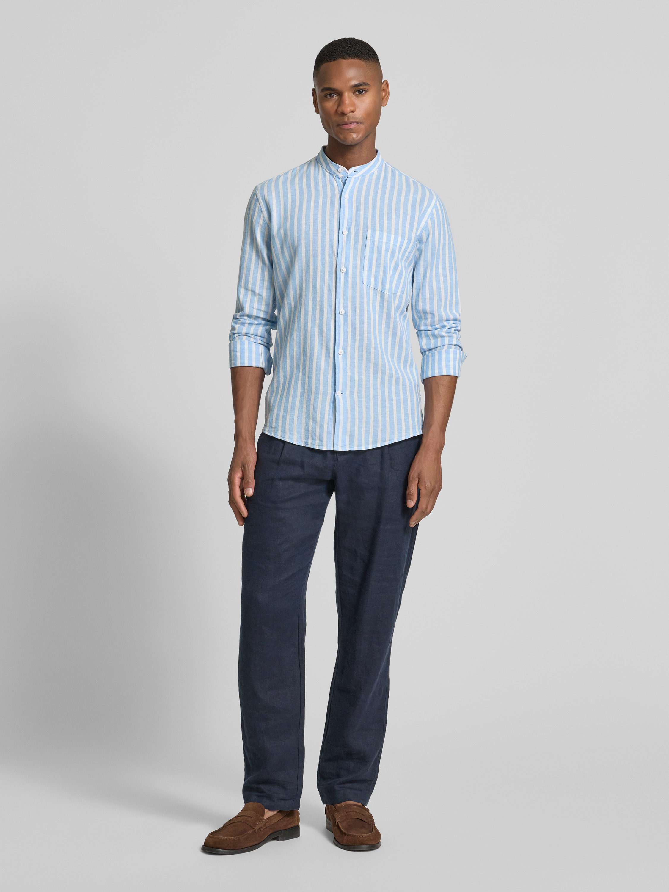 Koszula casulowa o kroju slim fit z mieszanki lnu i bawełny z kieszenią na piersi - niebieski