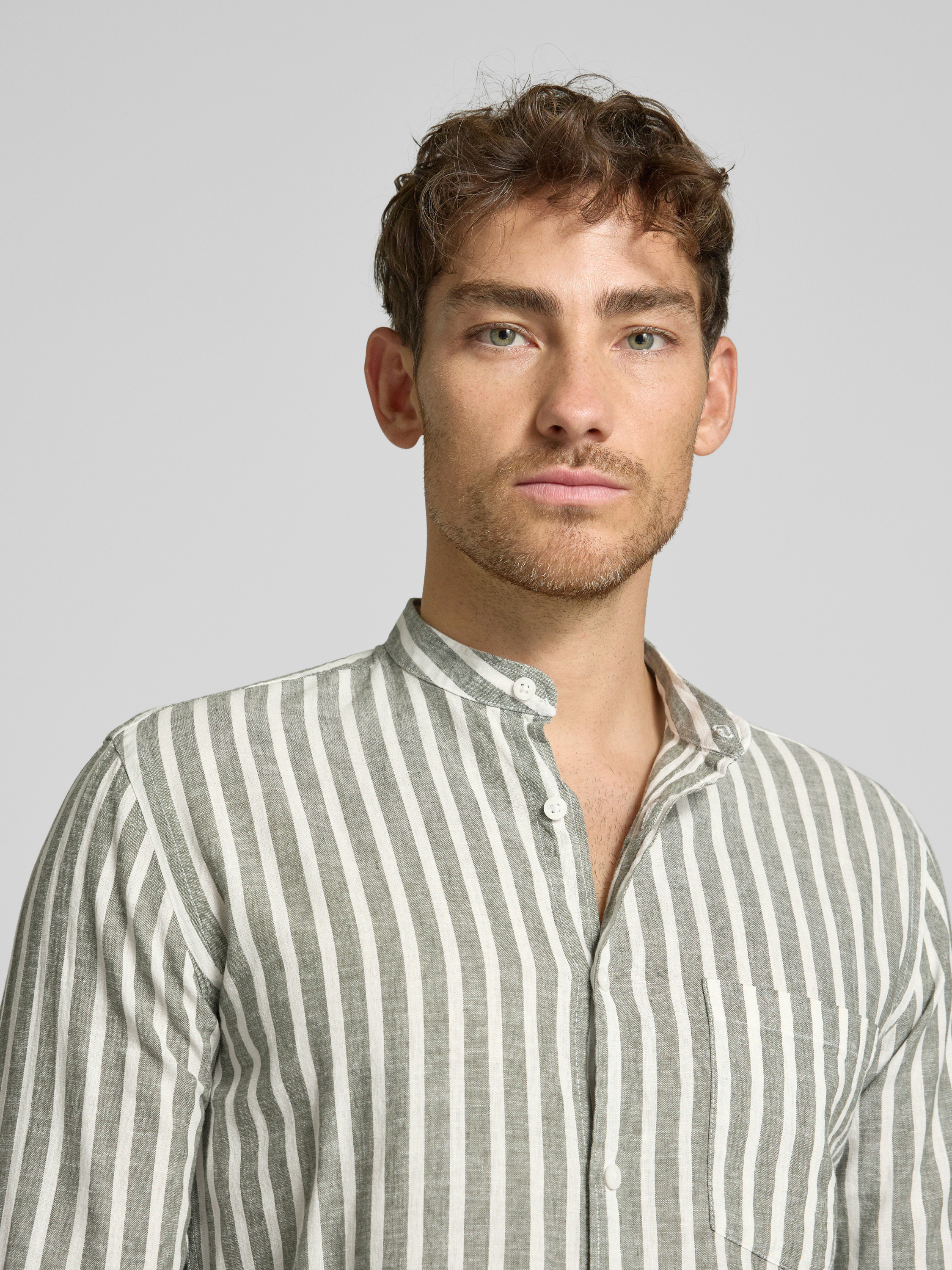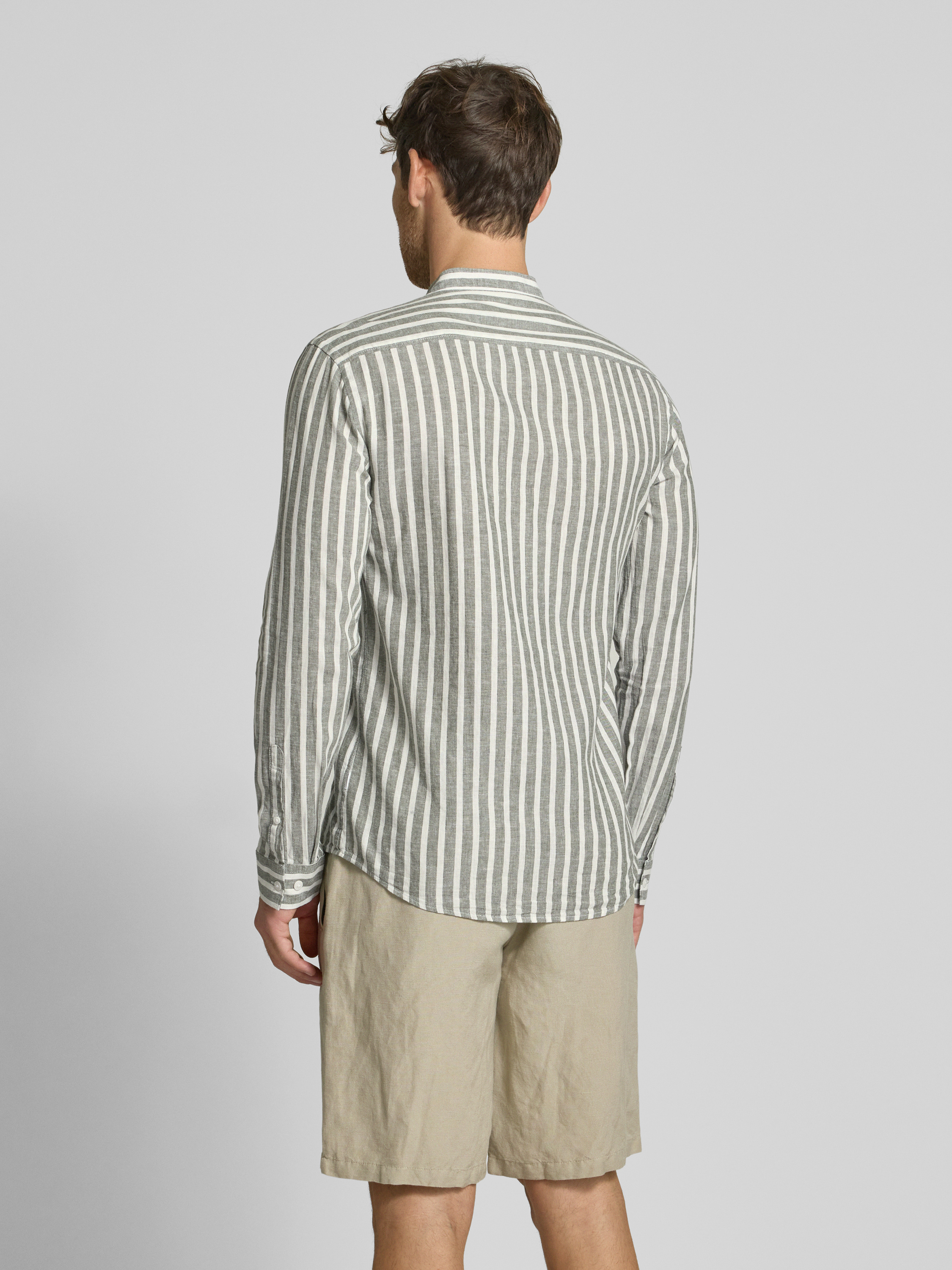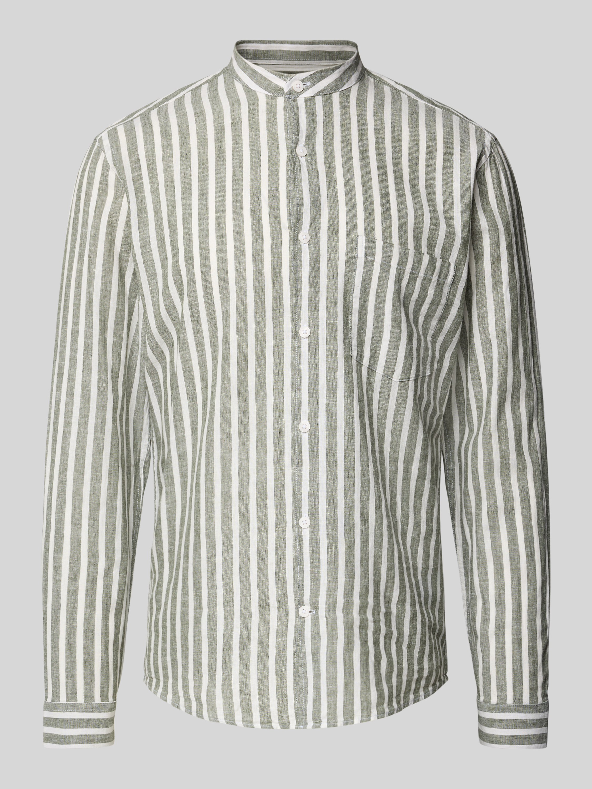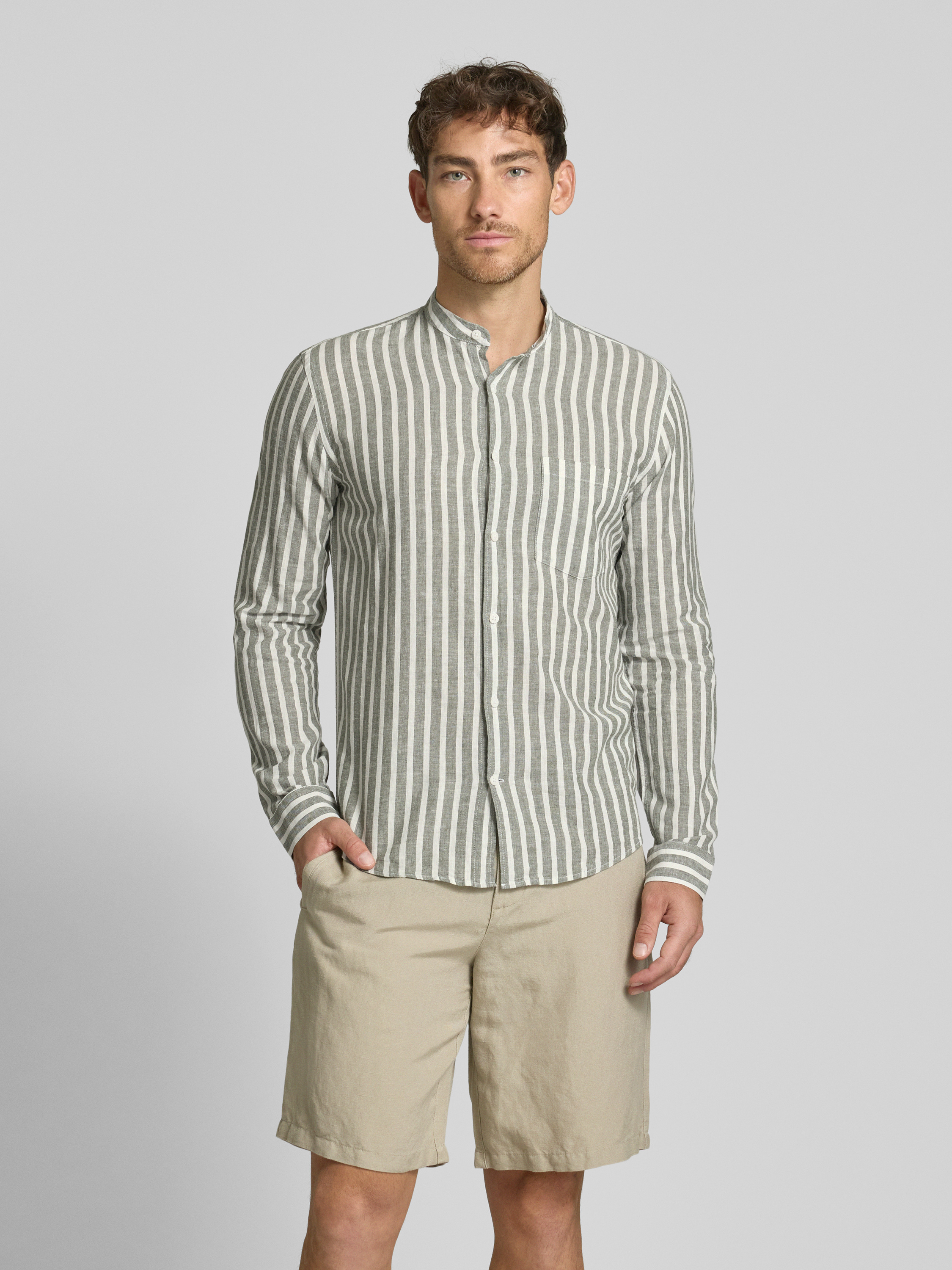 Koszula casulowa o kroju slim fit z mieszanki lnu i bawełny z kieszenią na piersi - oliwkowy