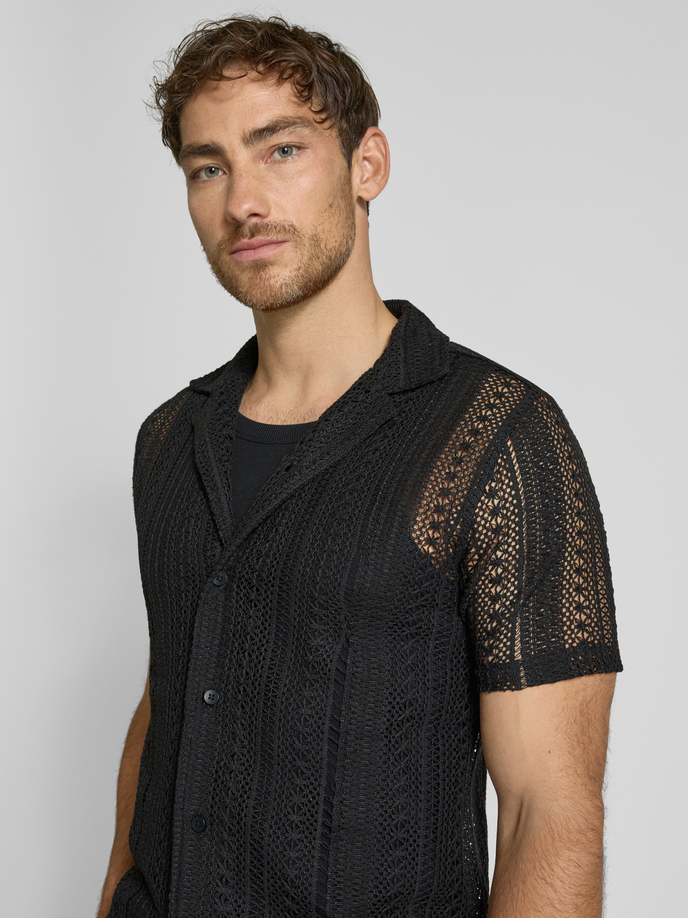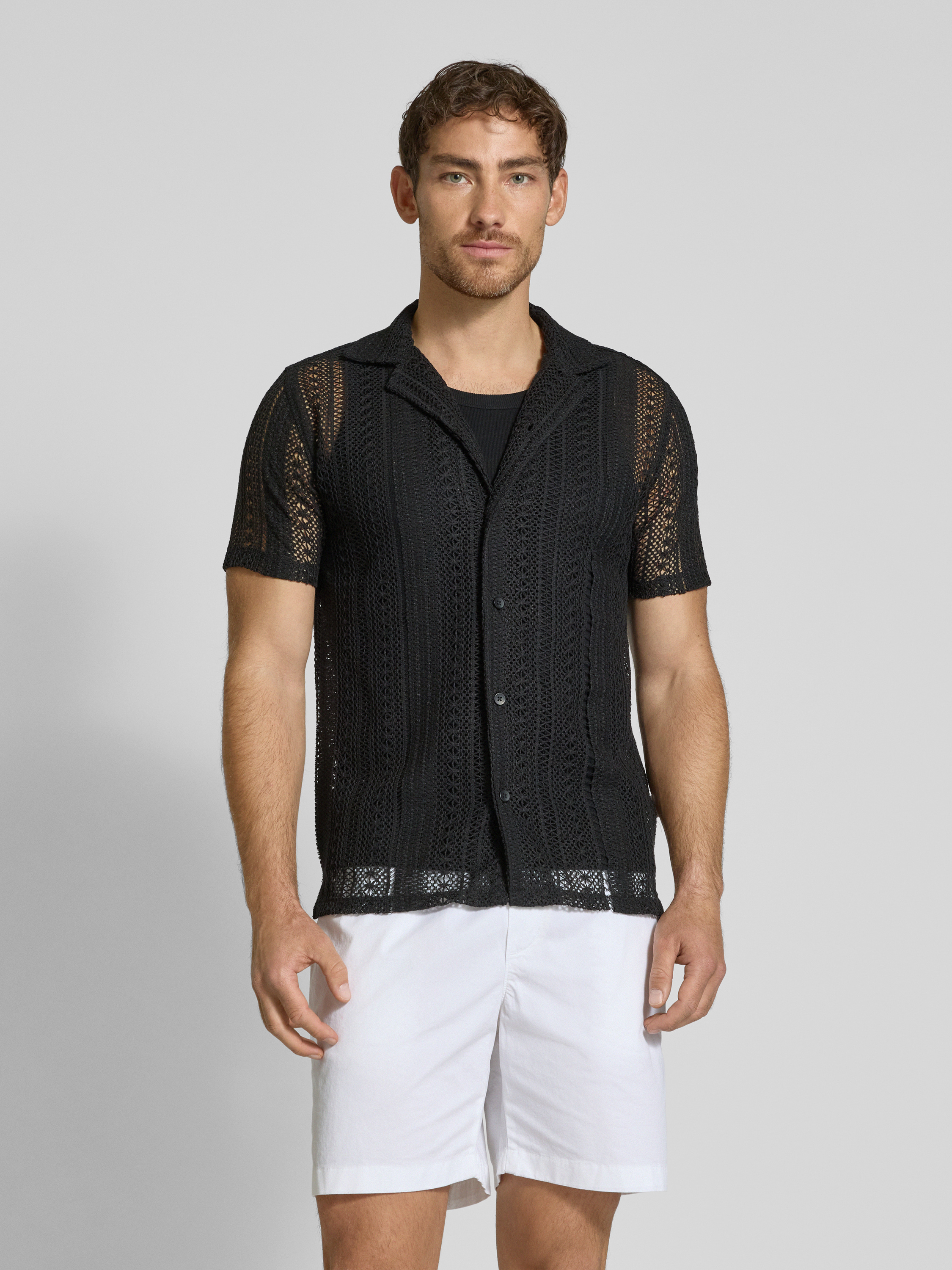 Koszula z dzianiny o kroju relaxed fit z kołnierzykiem typu resort - czarny
