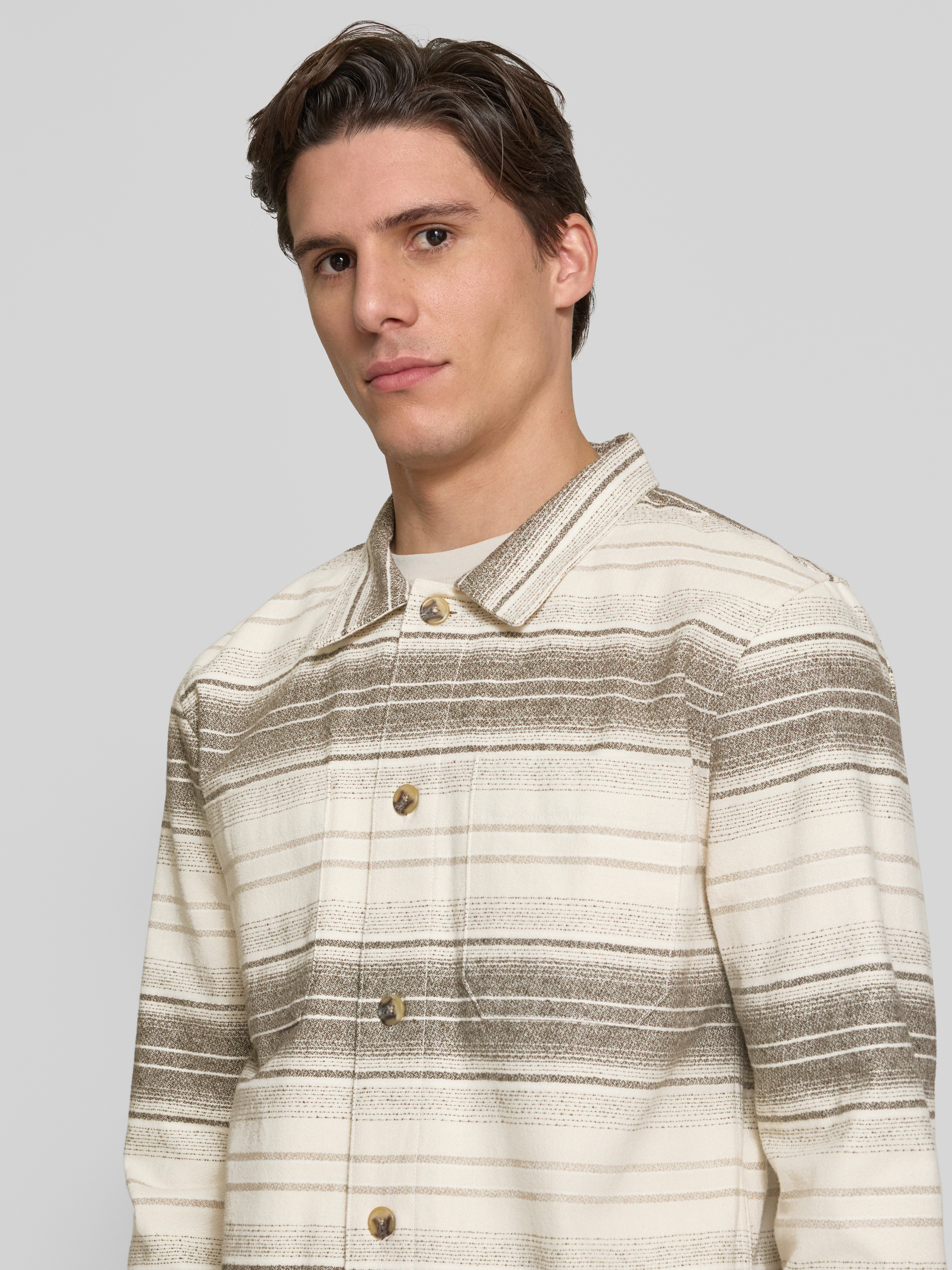 Kurtka koszulowa o kroju relaxed fit z nakładanymi kieszeniami na piersi - złamany biały