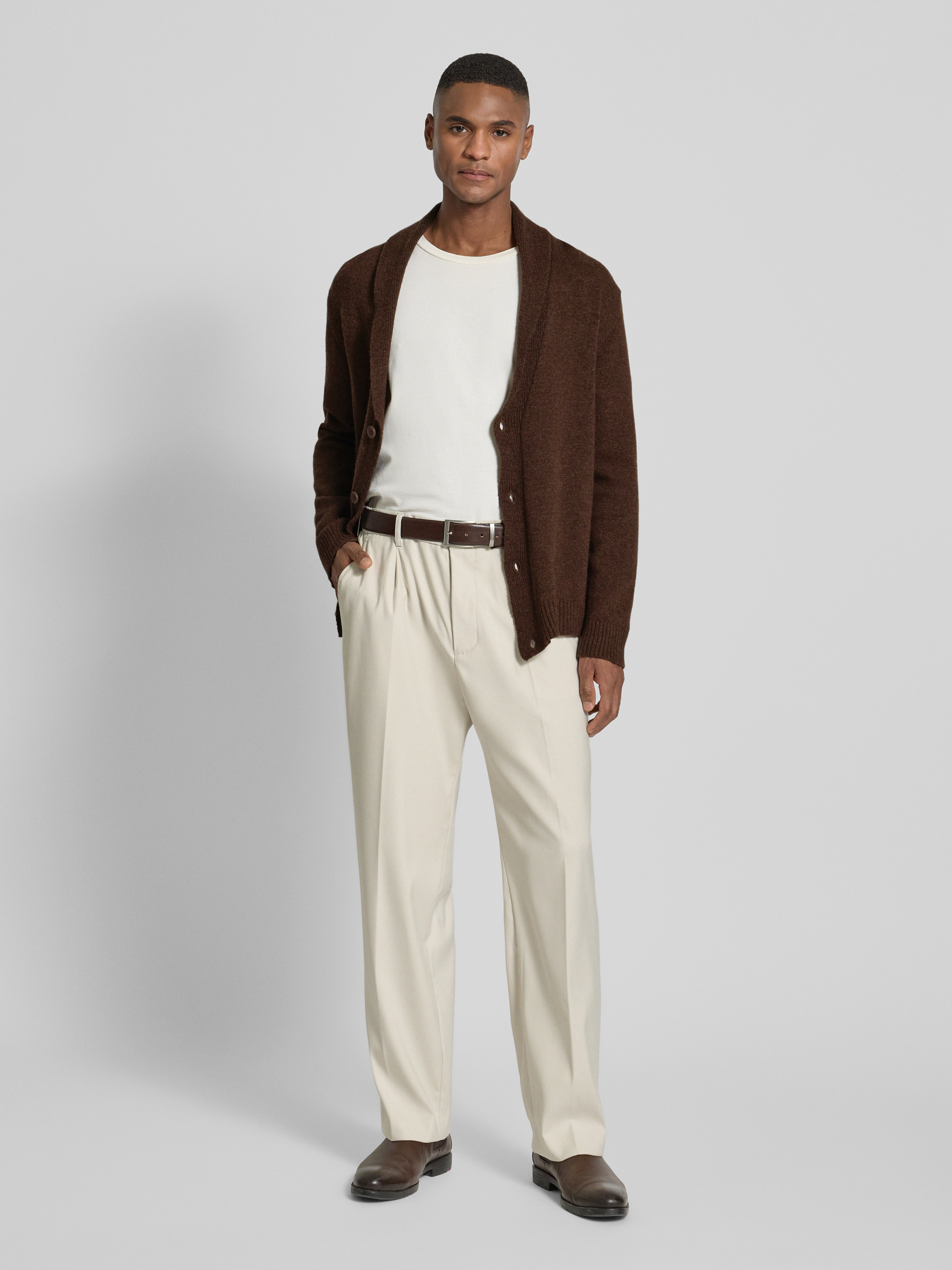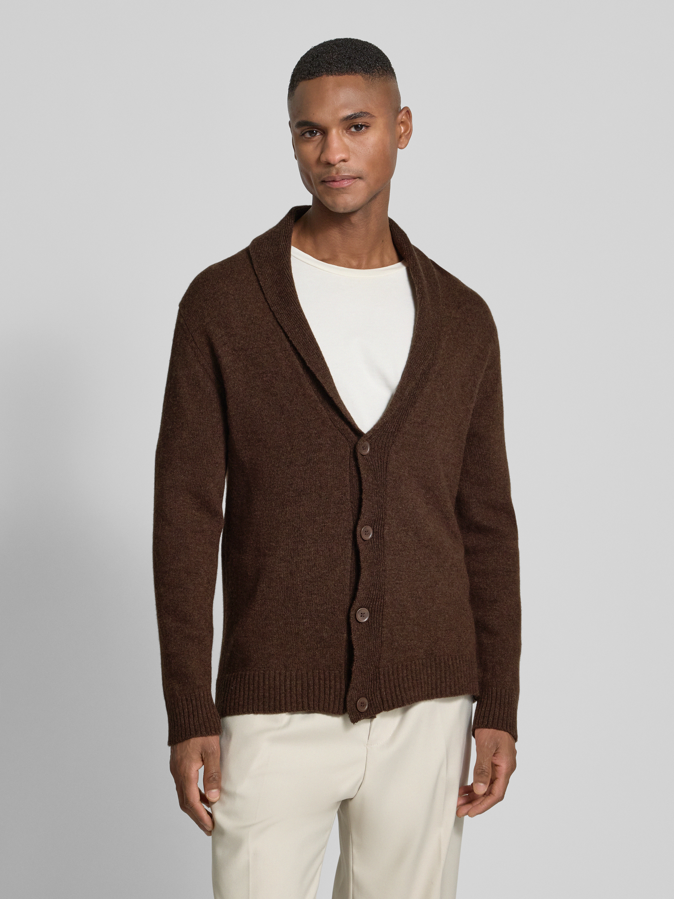 Kurtka z dzianiny z listwą guzikową - ciemnobrązowy