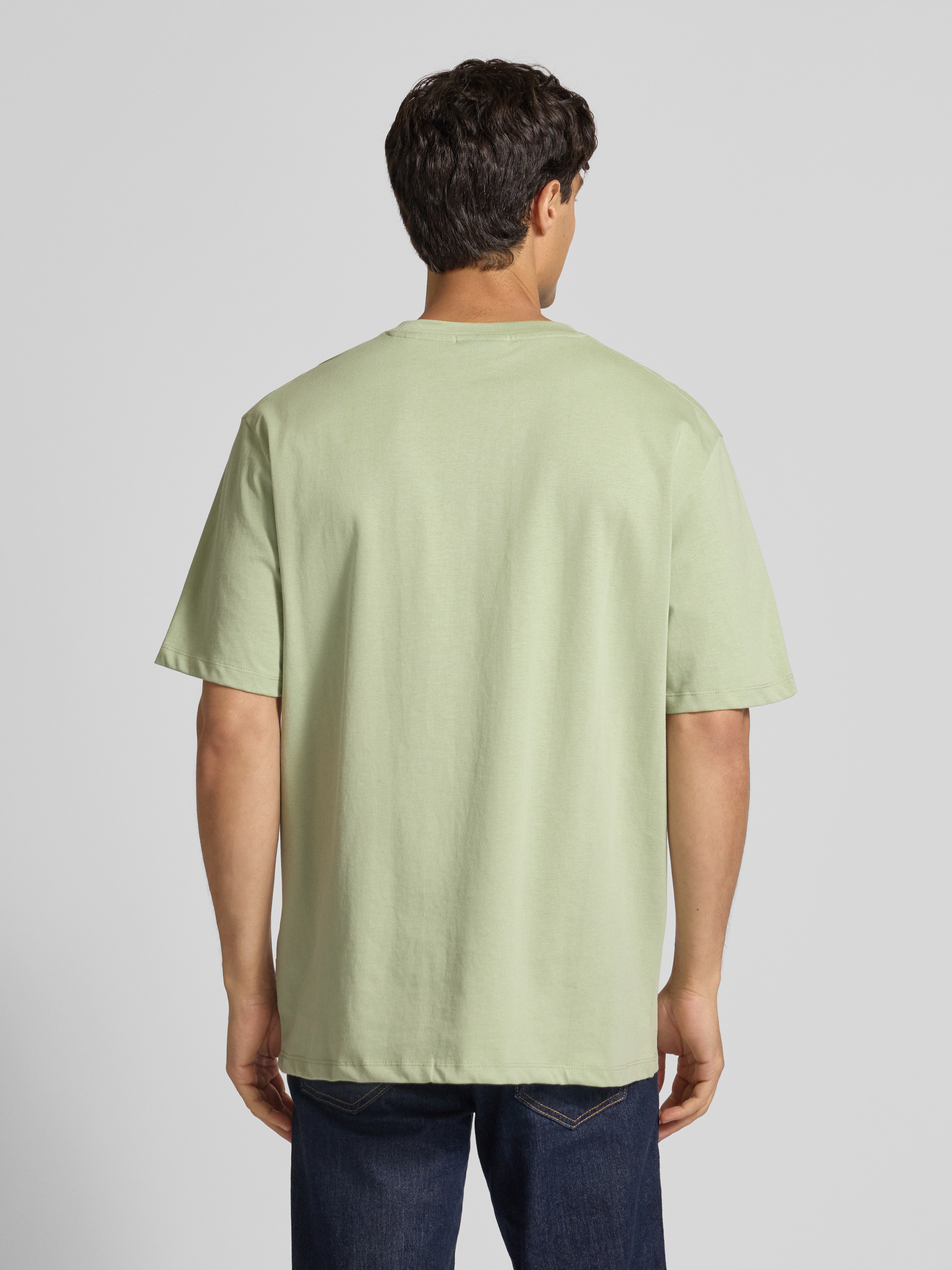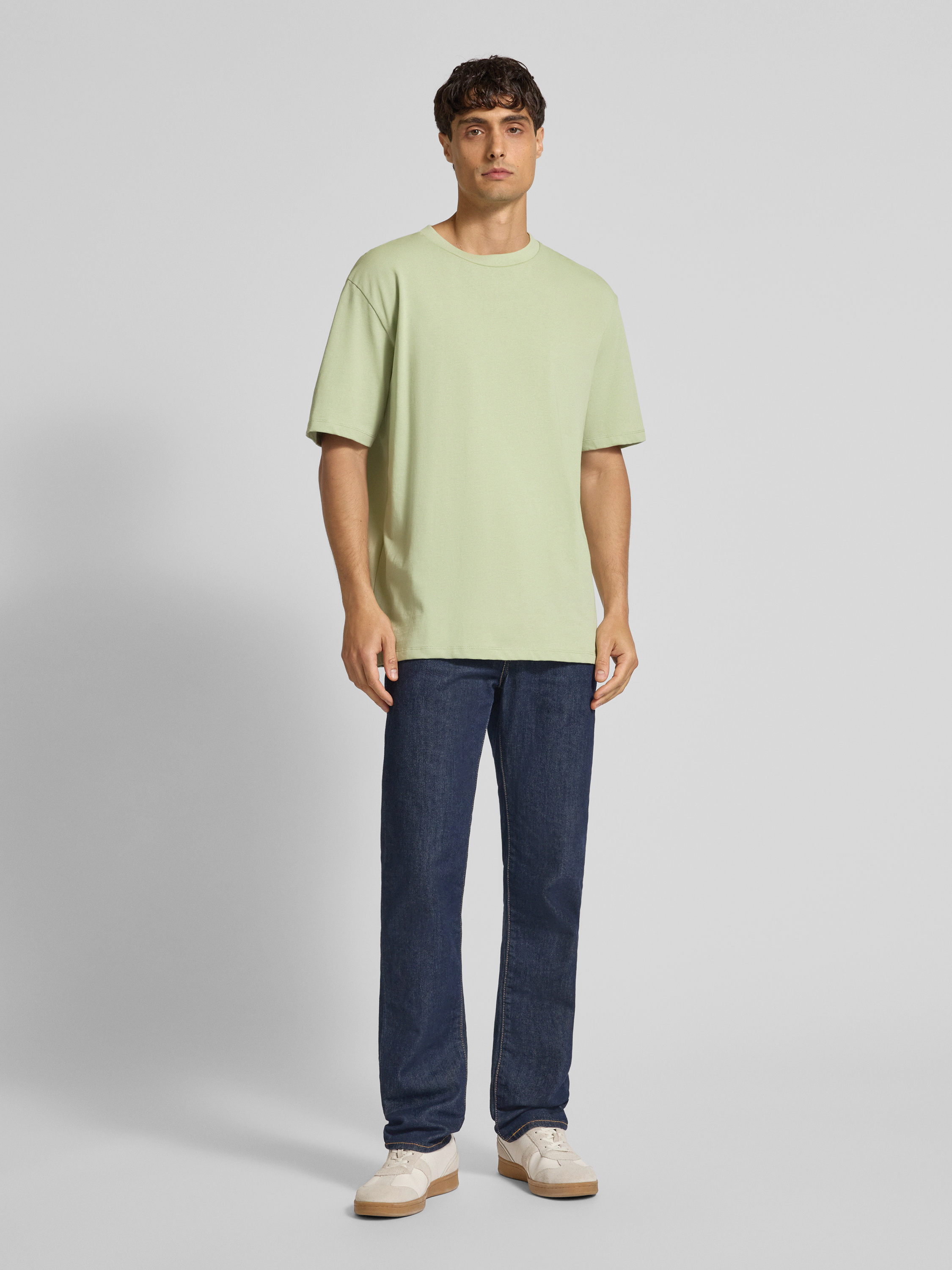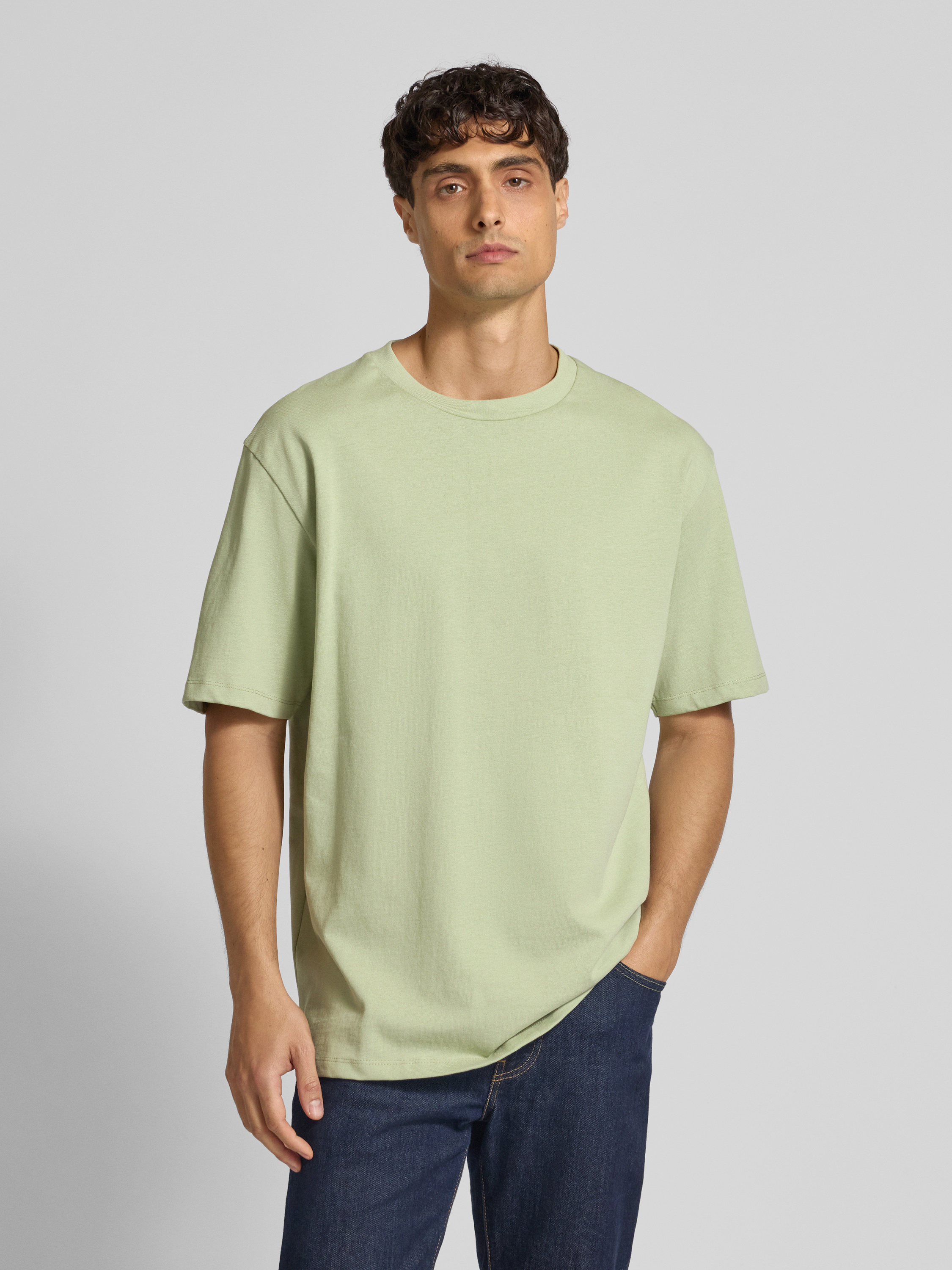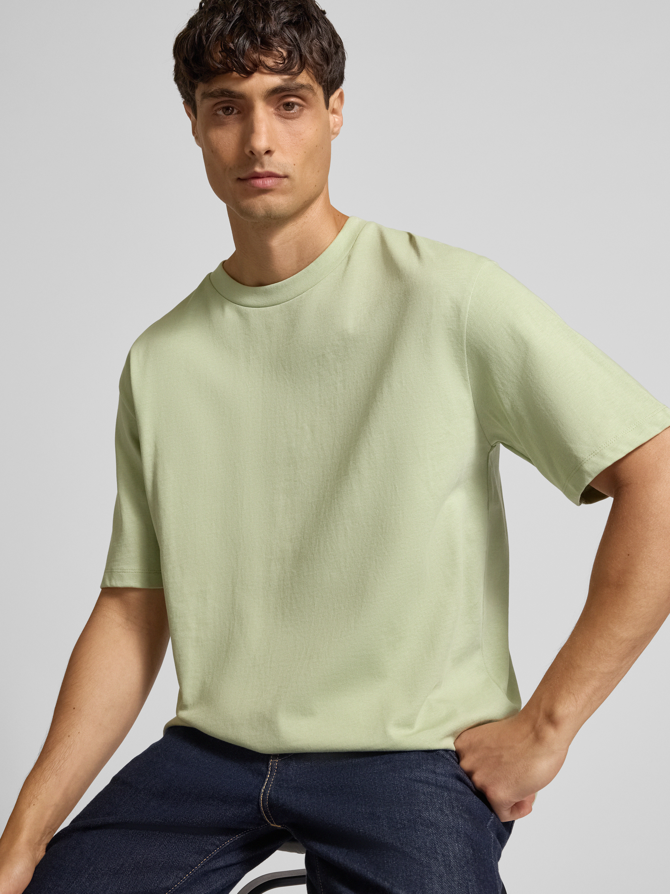 T-shirt o kroju oversized z okrągłym, prążkowanym dekoltem - jasnozielony