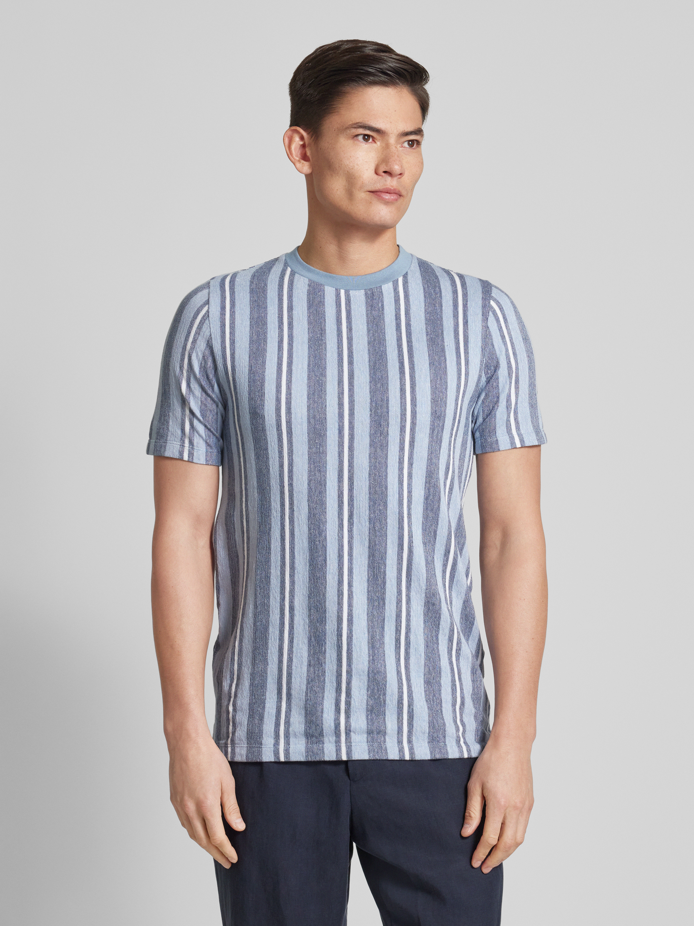 T-shirt o kroju relaxed fit ze wzorem w paski model ‘Towel striped’ - granatowy