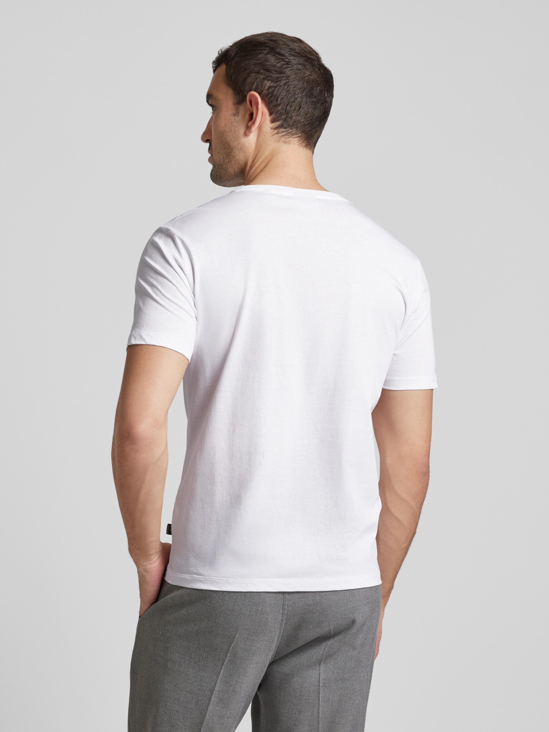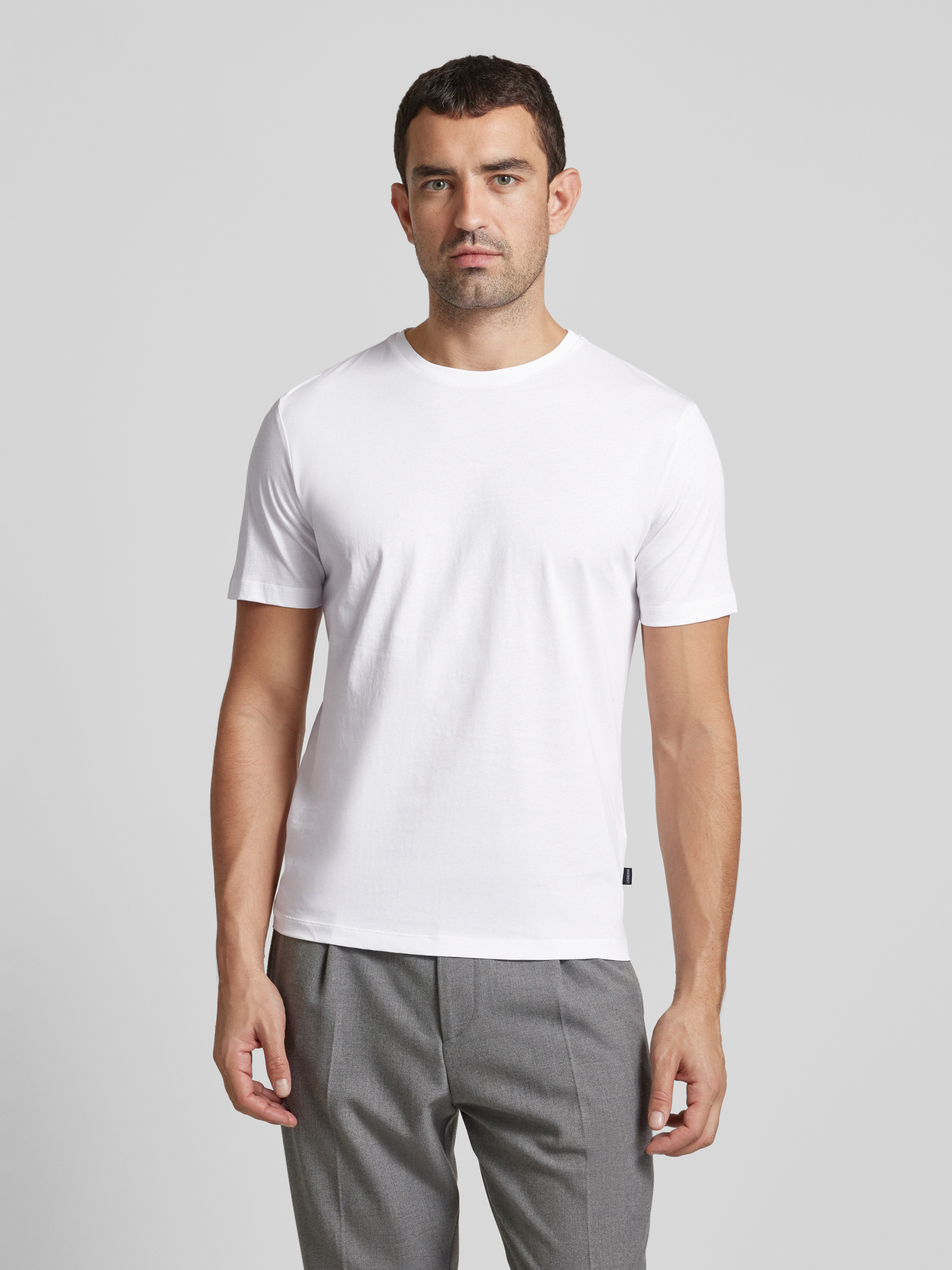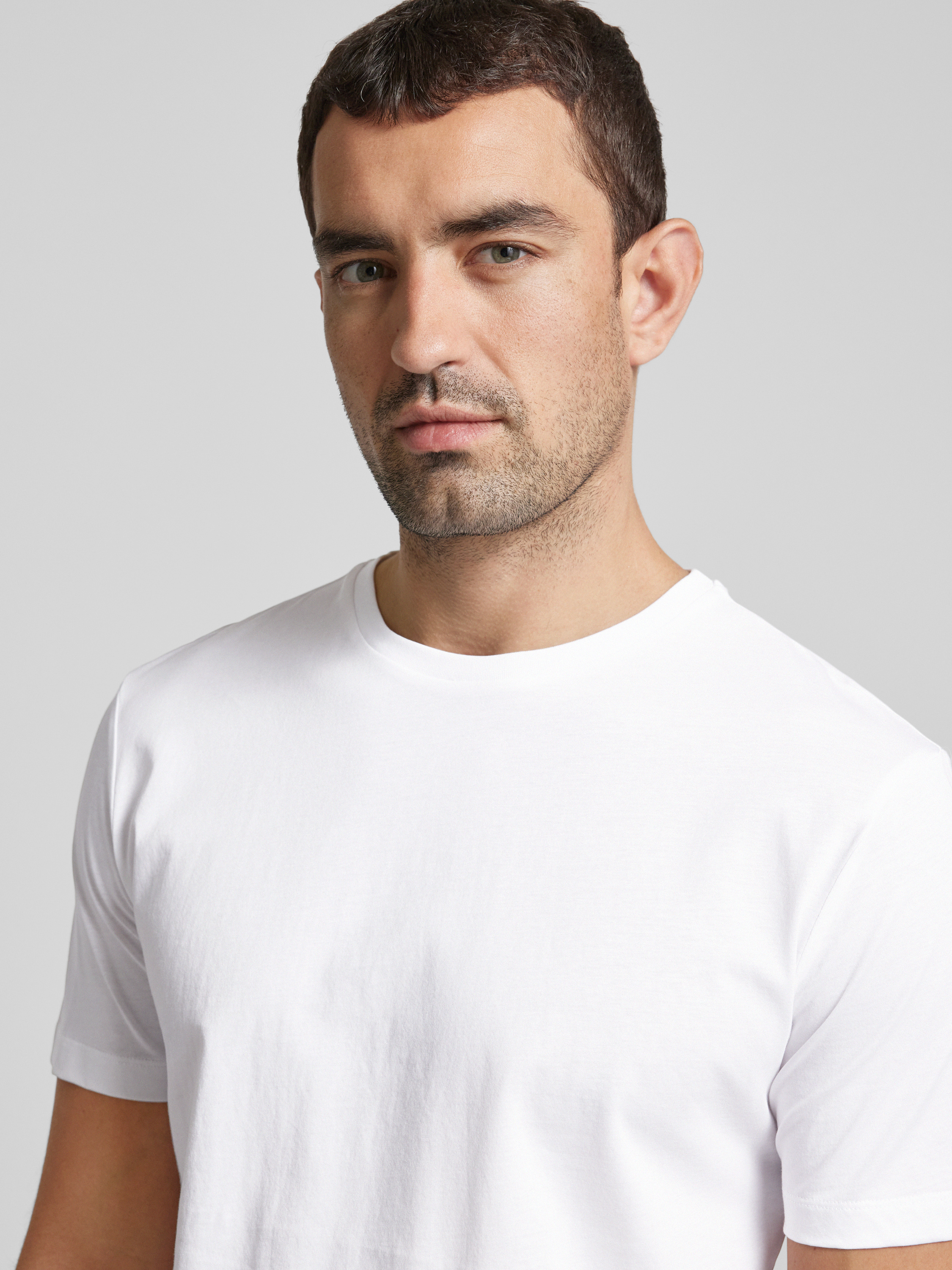 T-shirt z prążkowanym okrągłym dekoltem - złamany biały