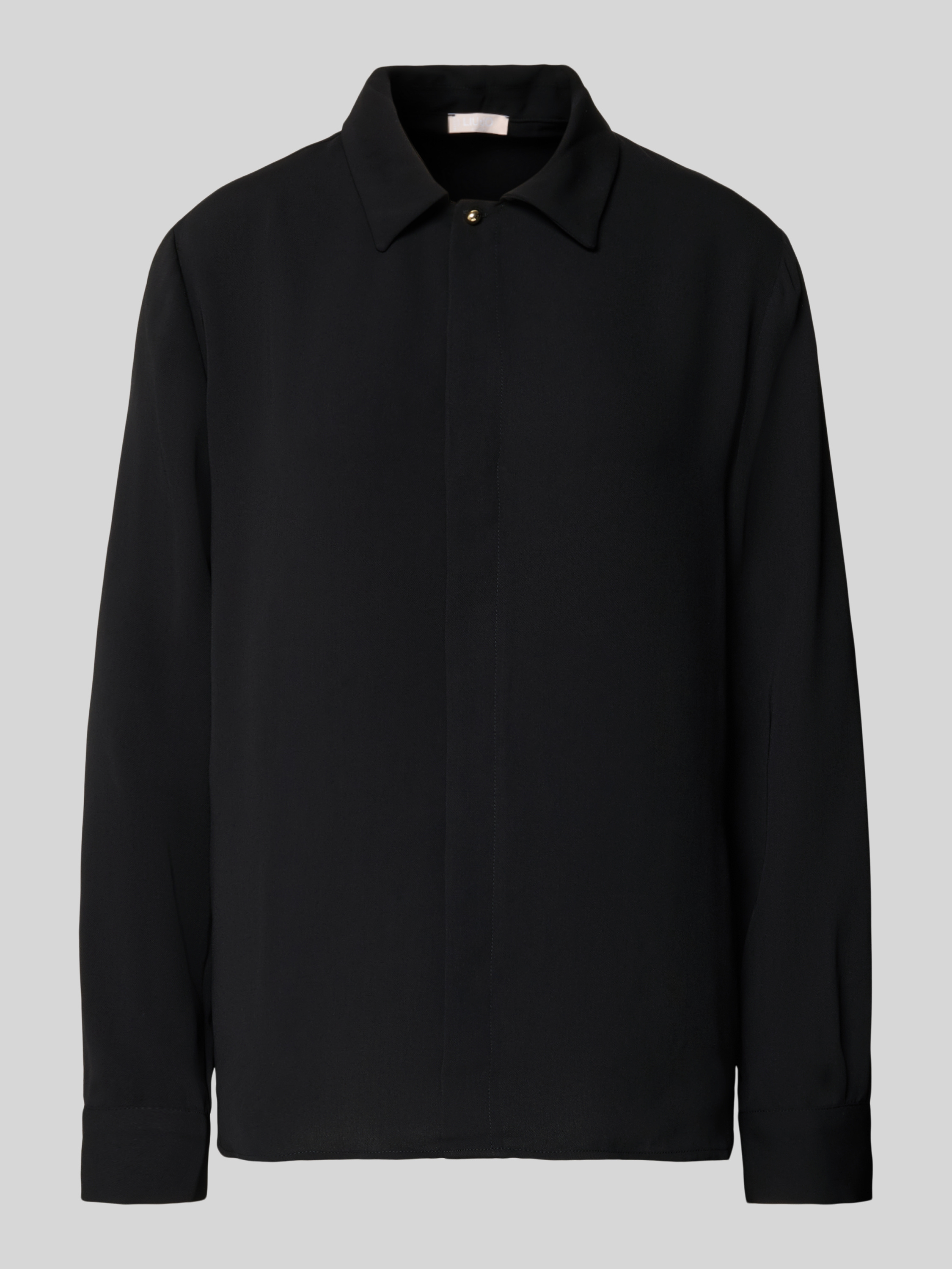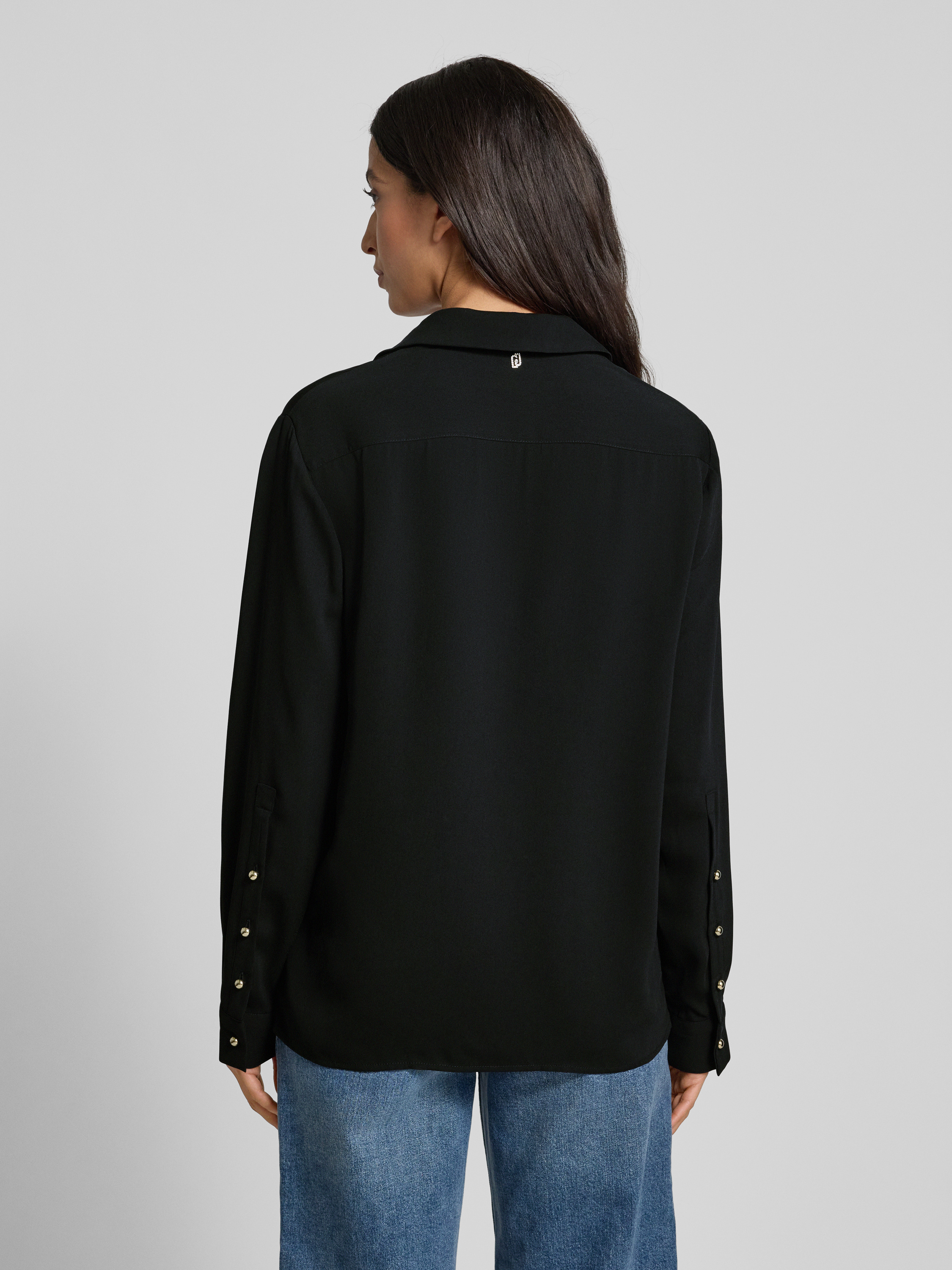 Bluzka o kroju regular fit z wykładanym kołnierzem - czarny