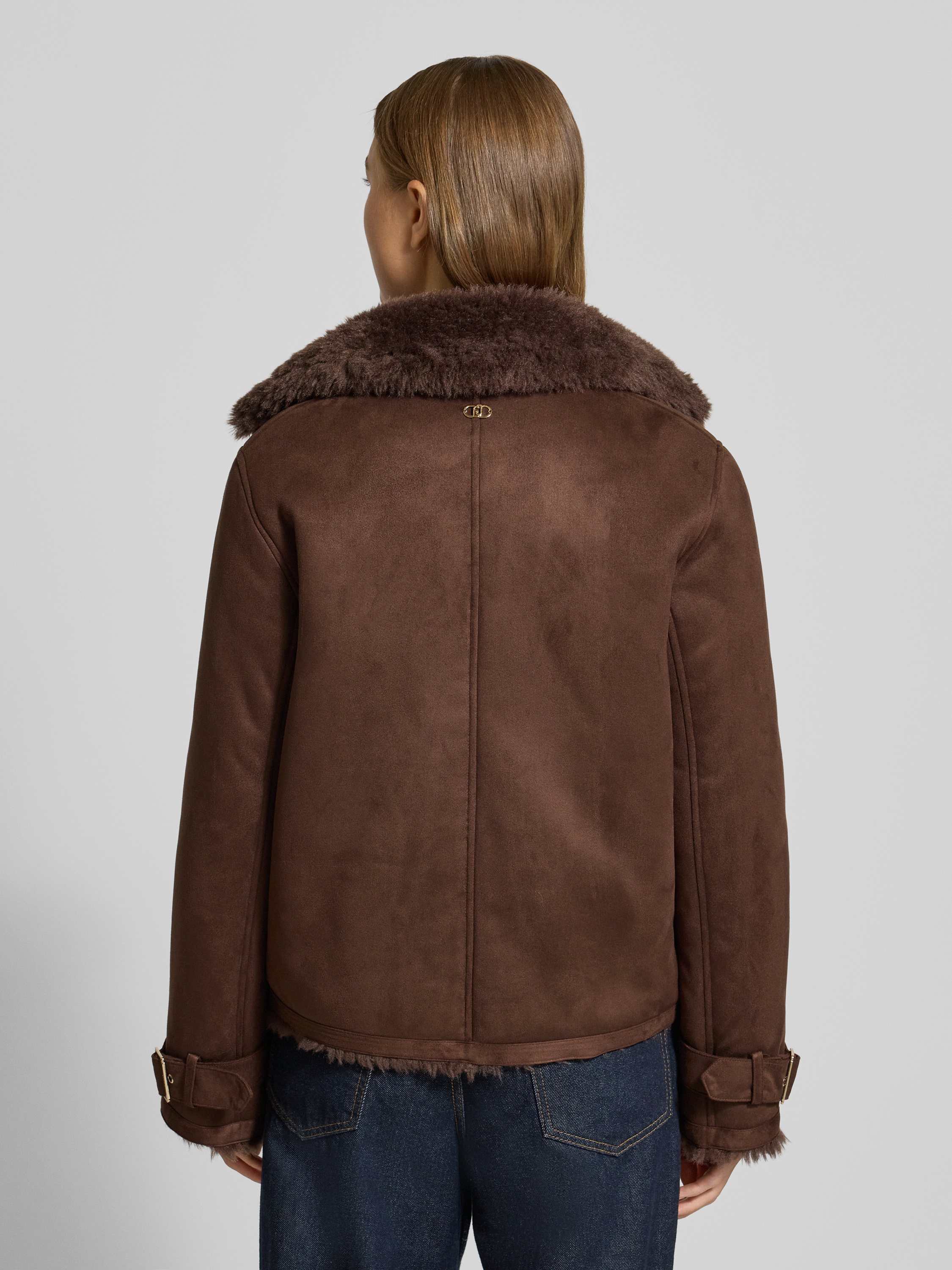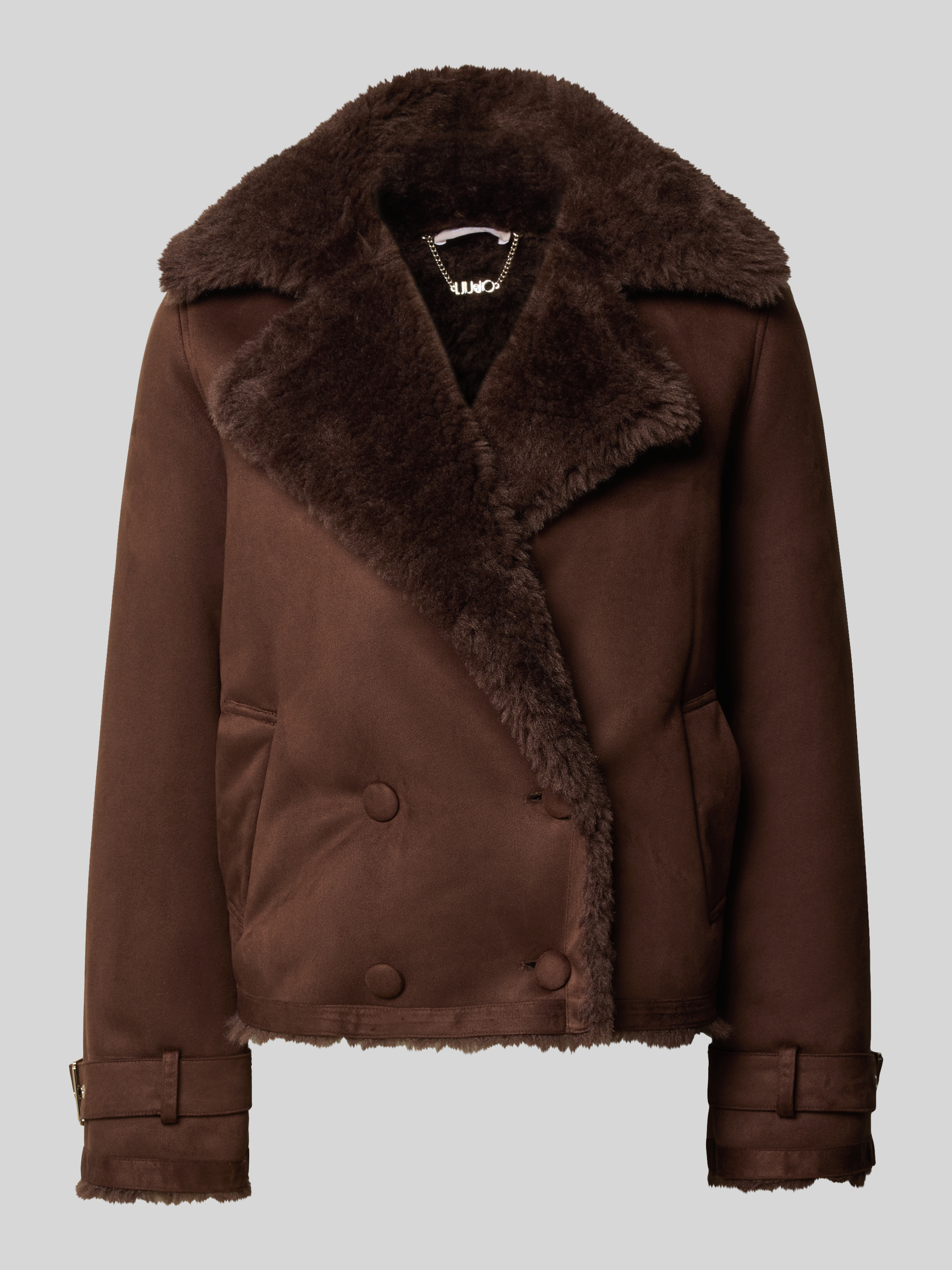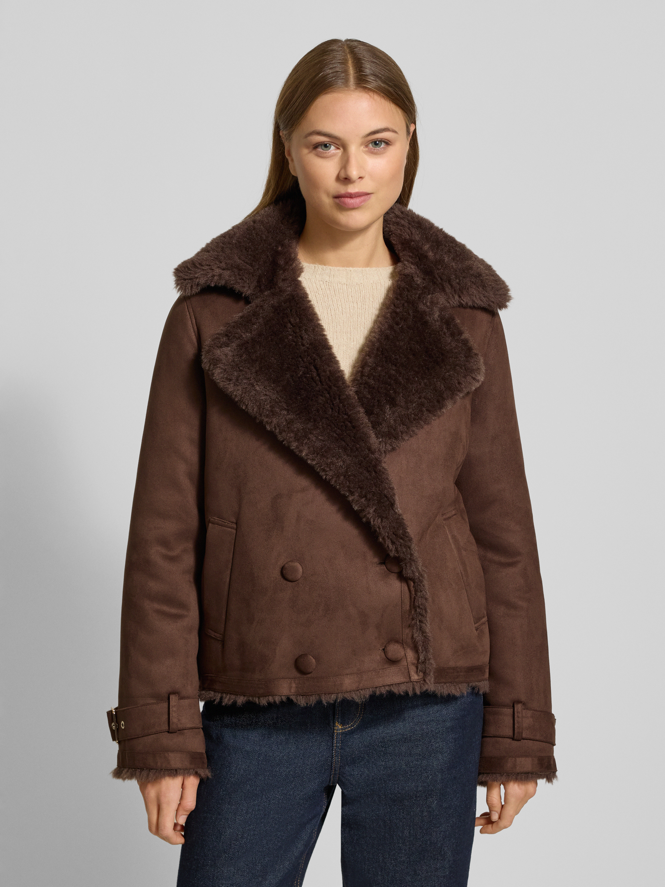 Kurtka z kołnierzem z połami i patkami na rękawach - czekoladowy