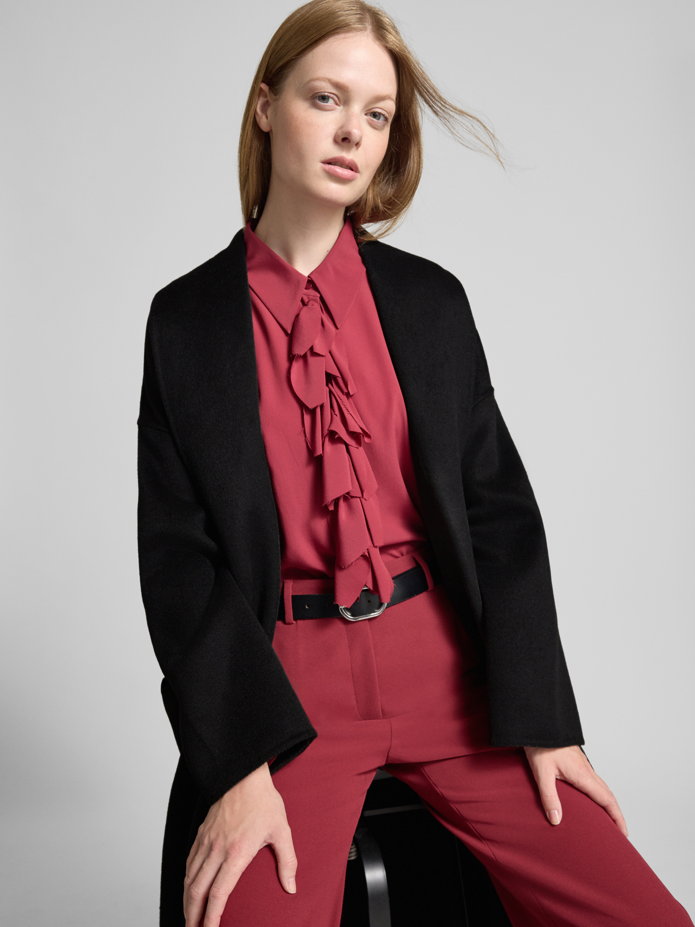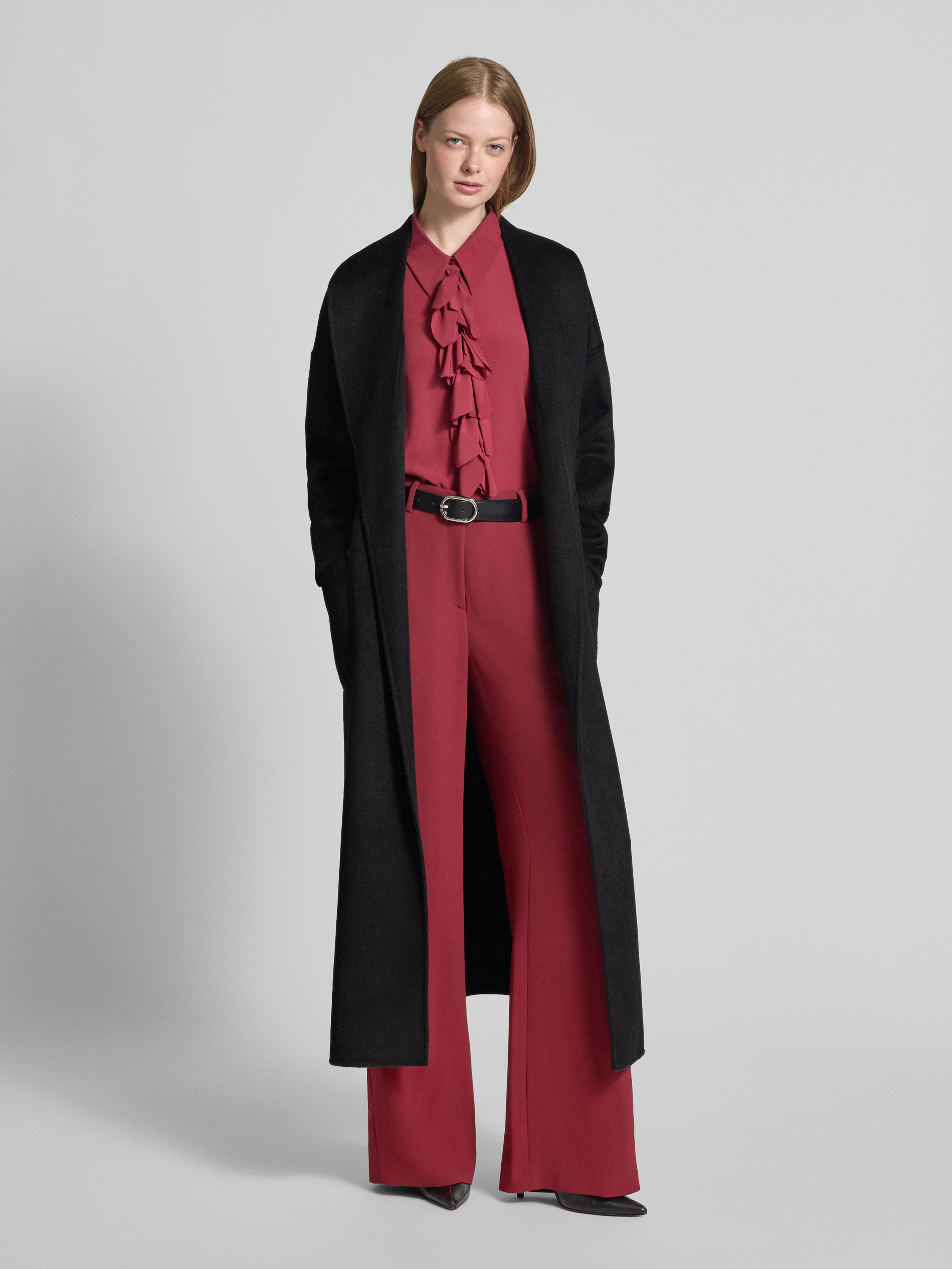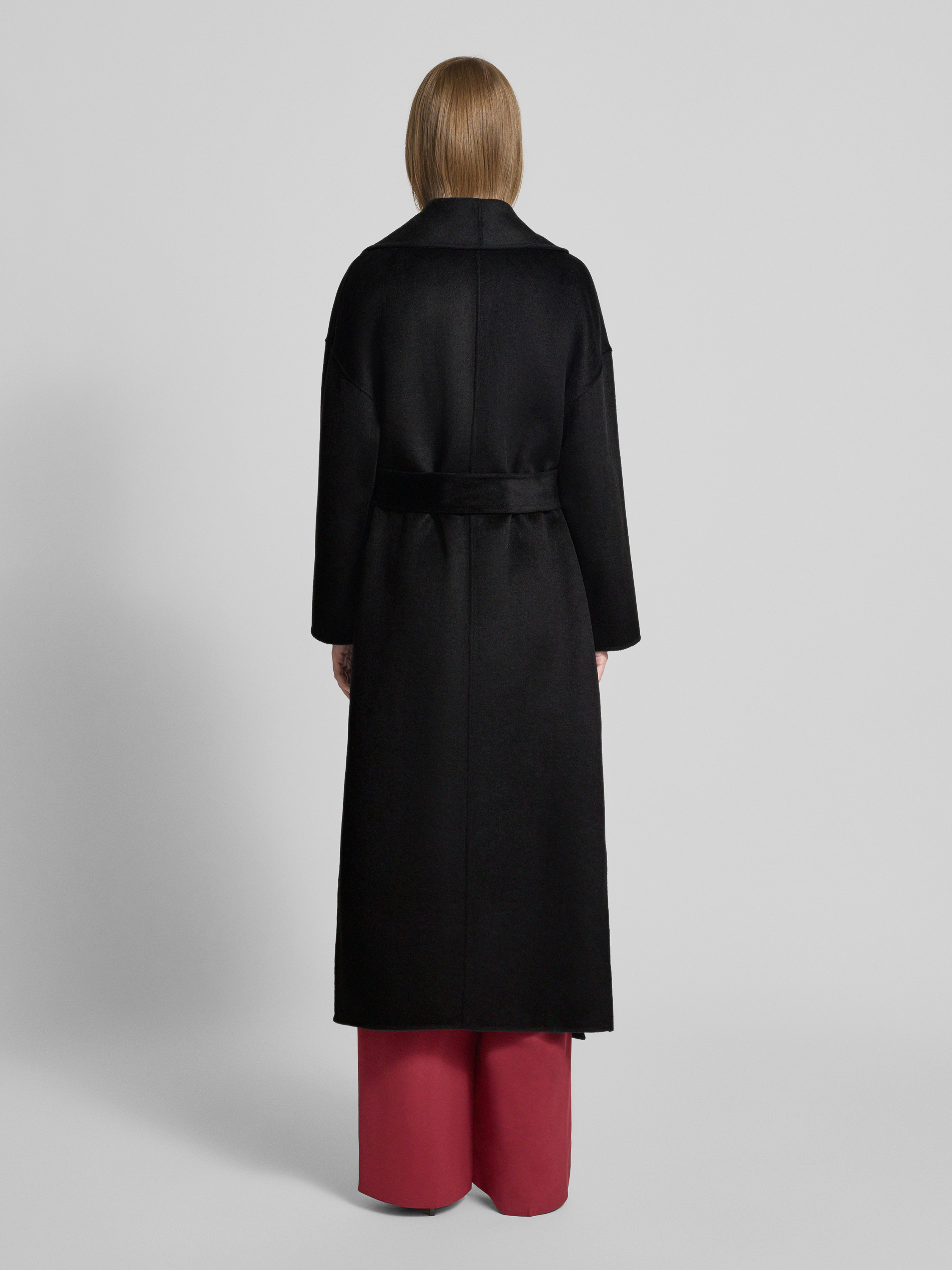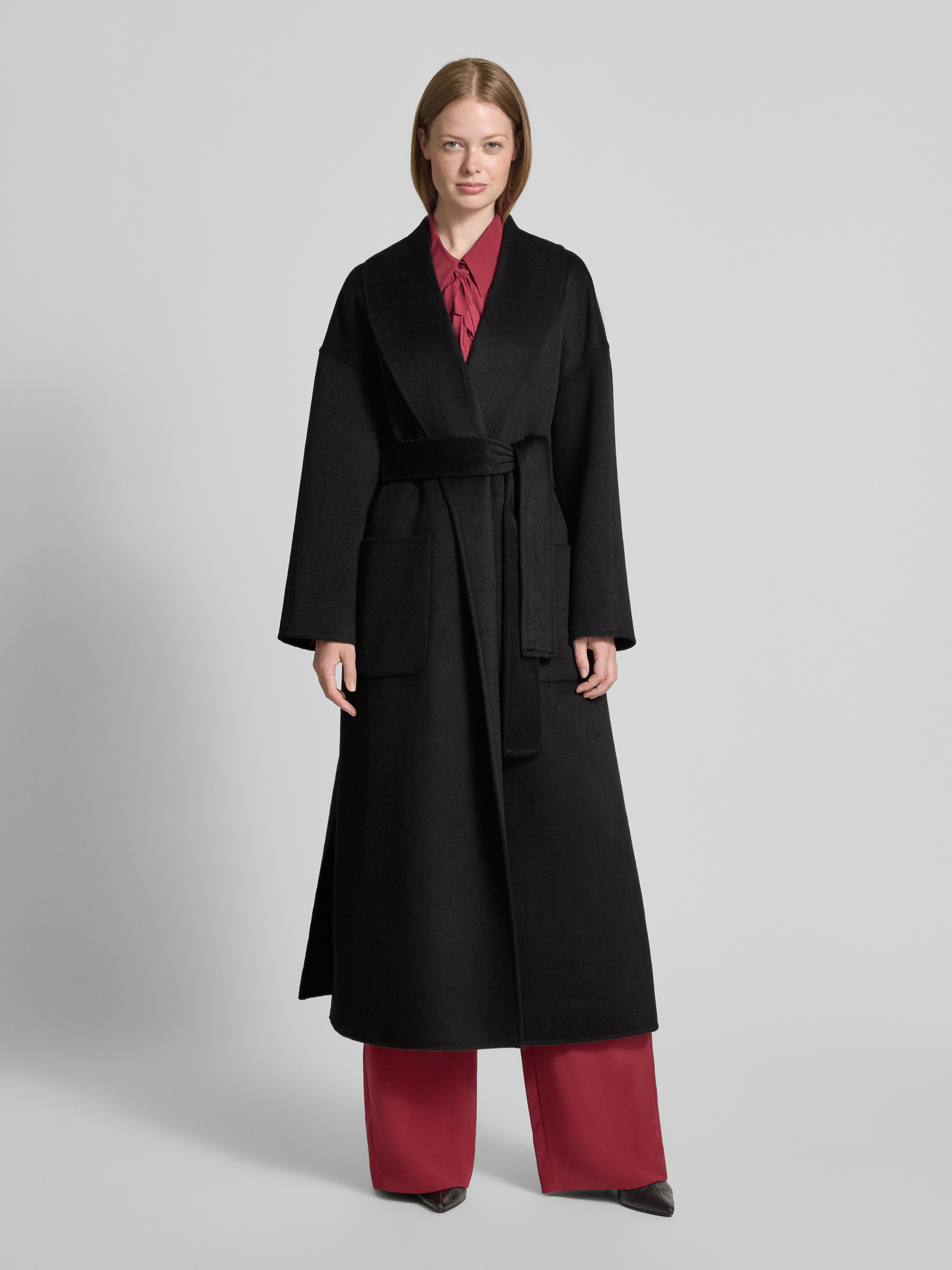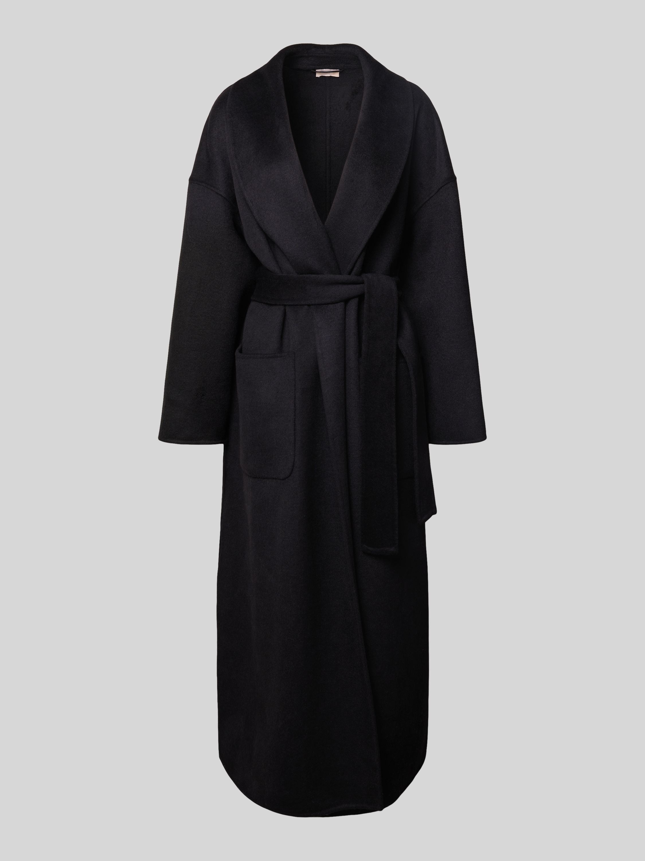 Płaszcz wełniany z wiązanym paskiem - czarny