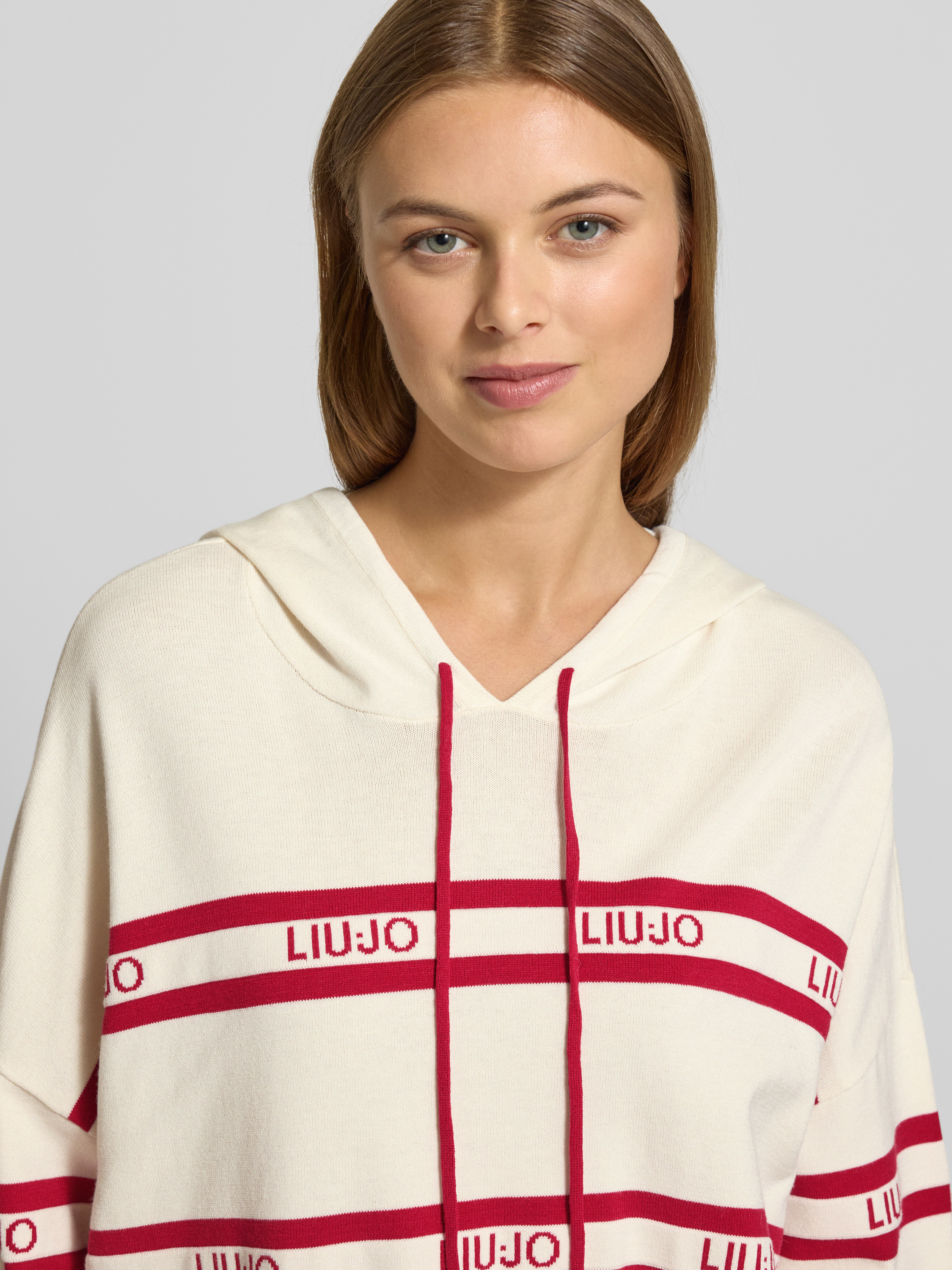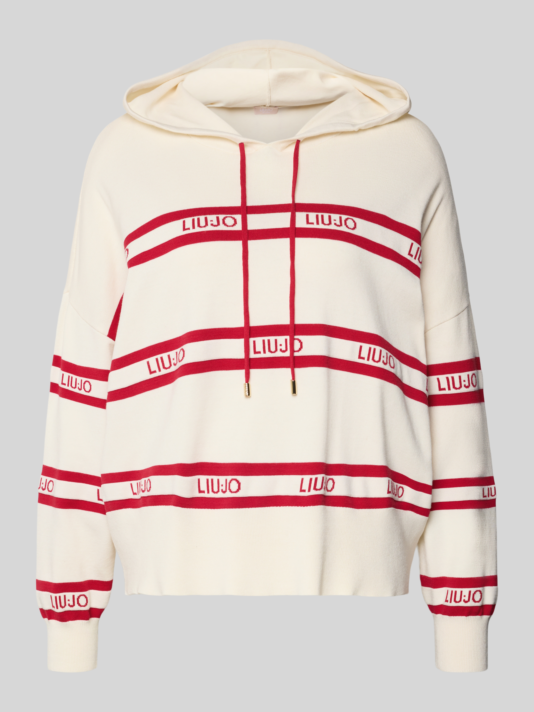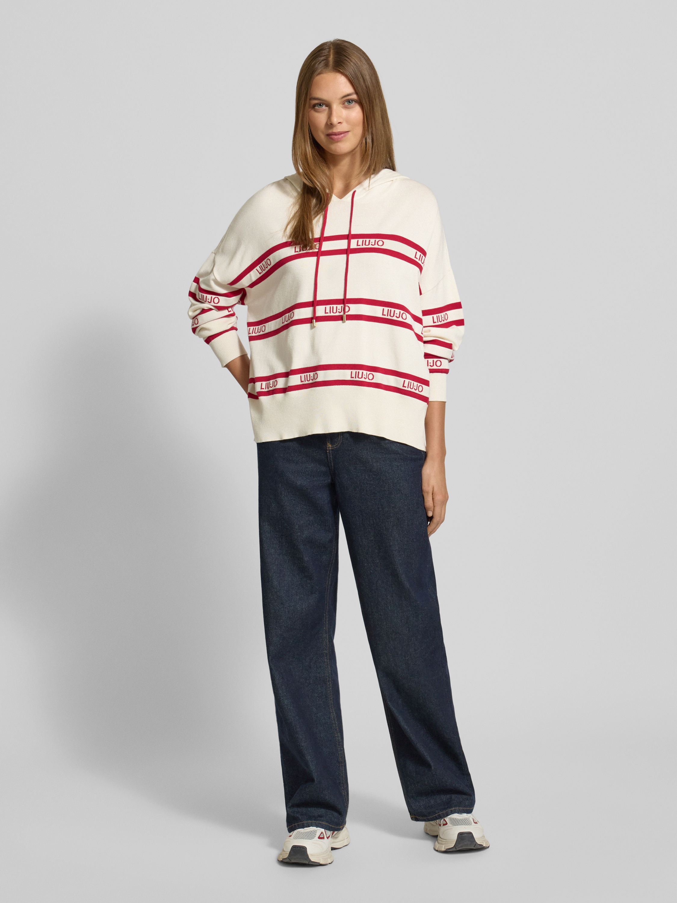 Sweter o kroju relaxed fit z mieszanki wiskozy z wyhaftowanym logo - złamany biały
