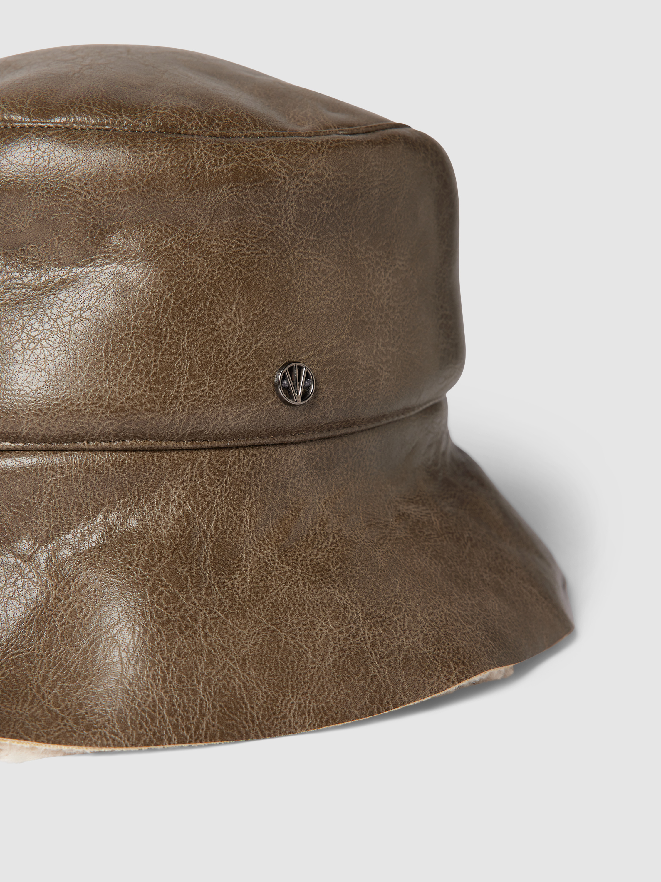 Czapka typu bucket hat z imitacji skóry - szarobrązowy