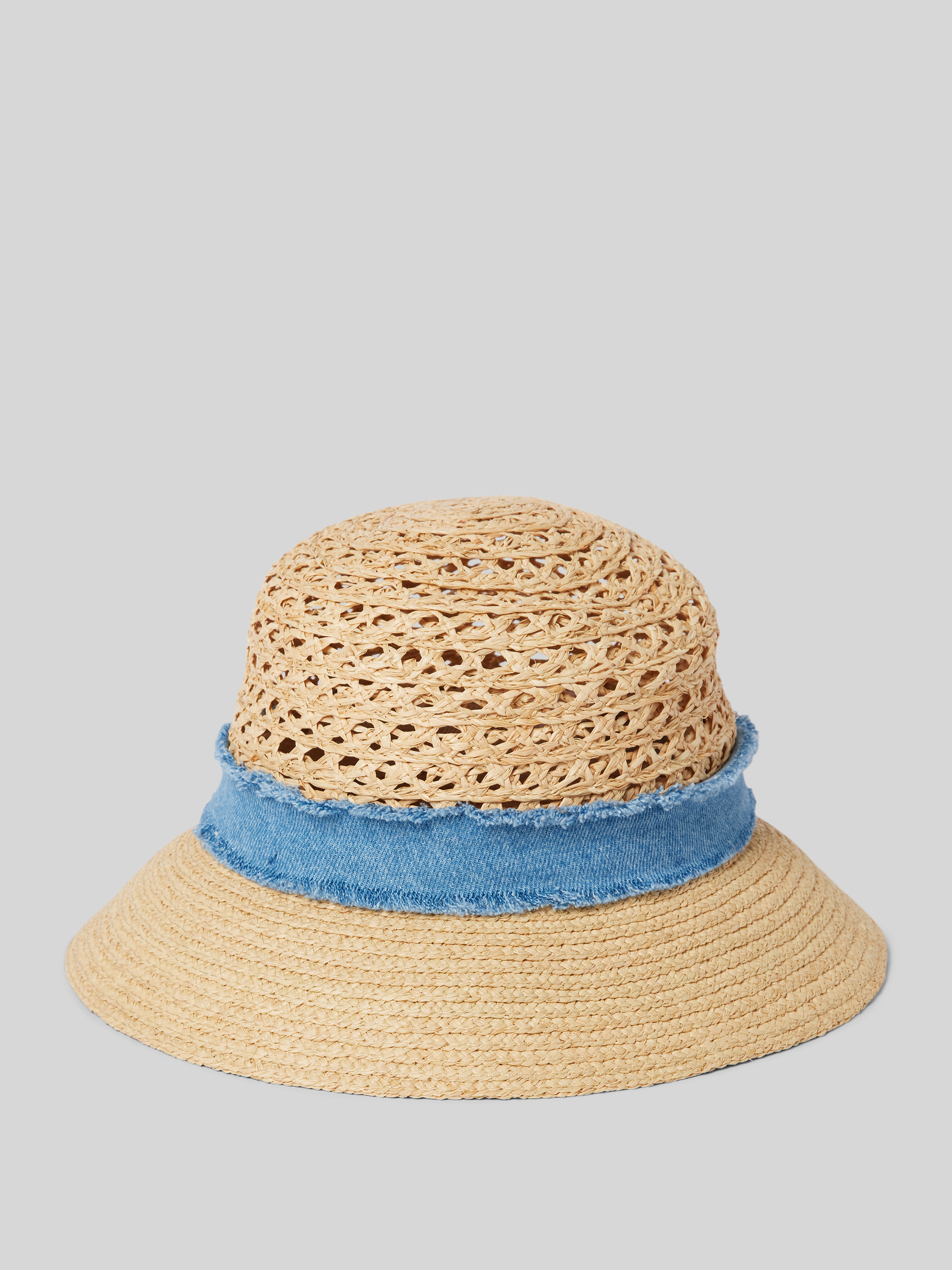 Kapelusz słomiany z opaską model ‘Raffia Glocke’ - beżowy