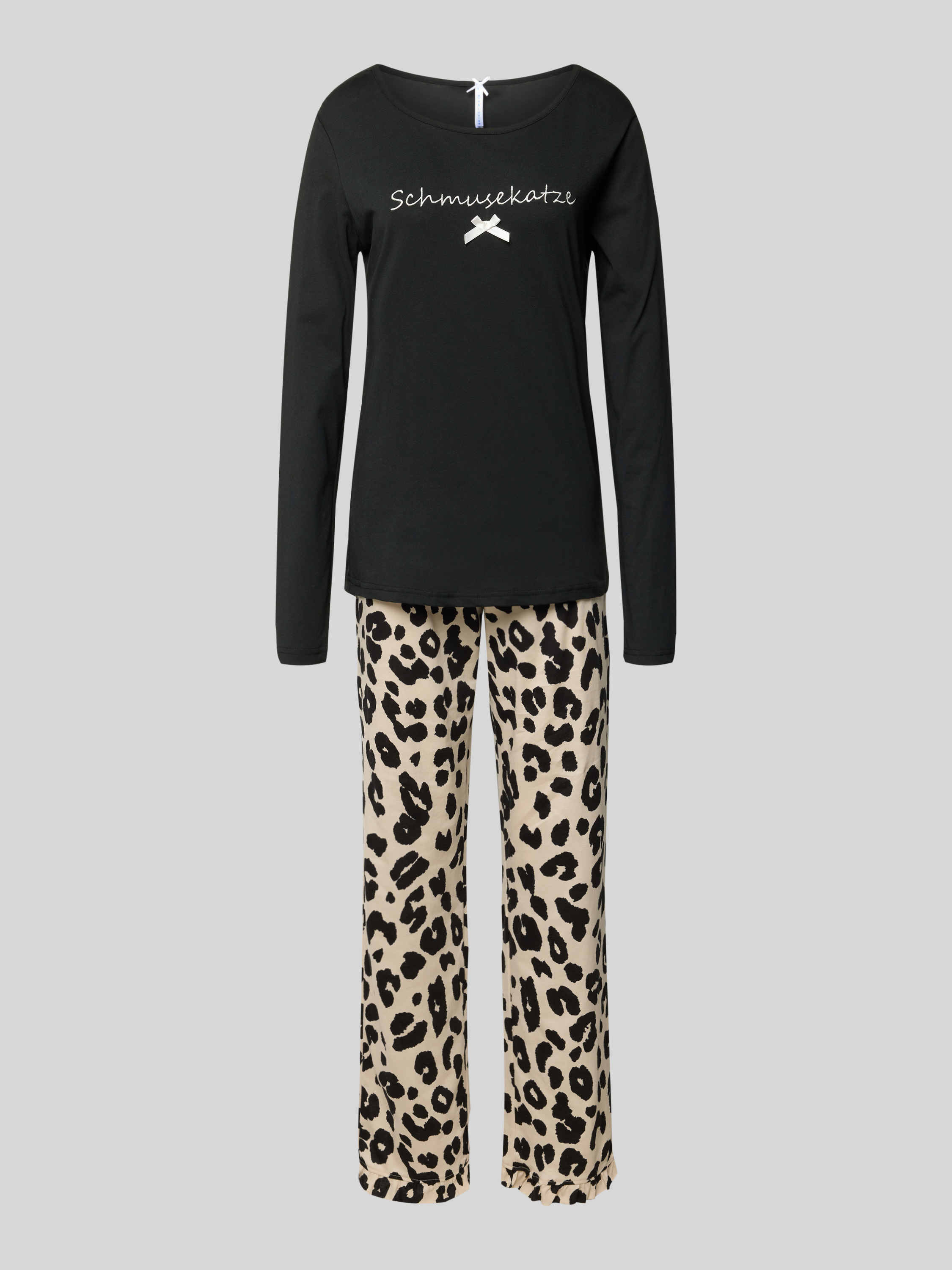 Piżama z wyhaftowanym napisem model ‘Schmusekatze’ - czarny