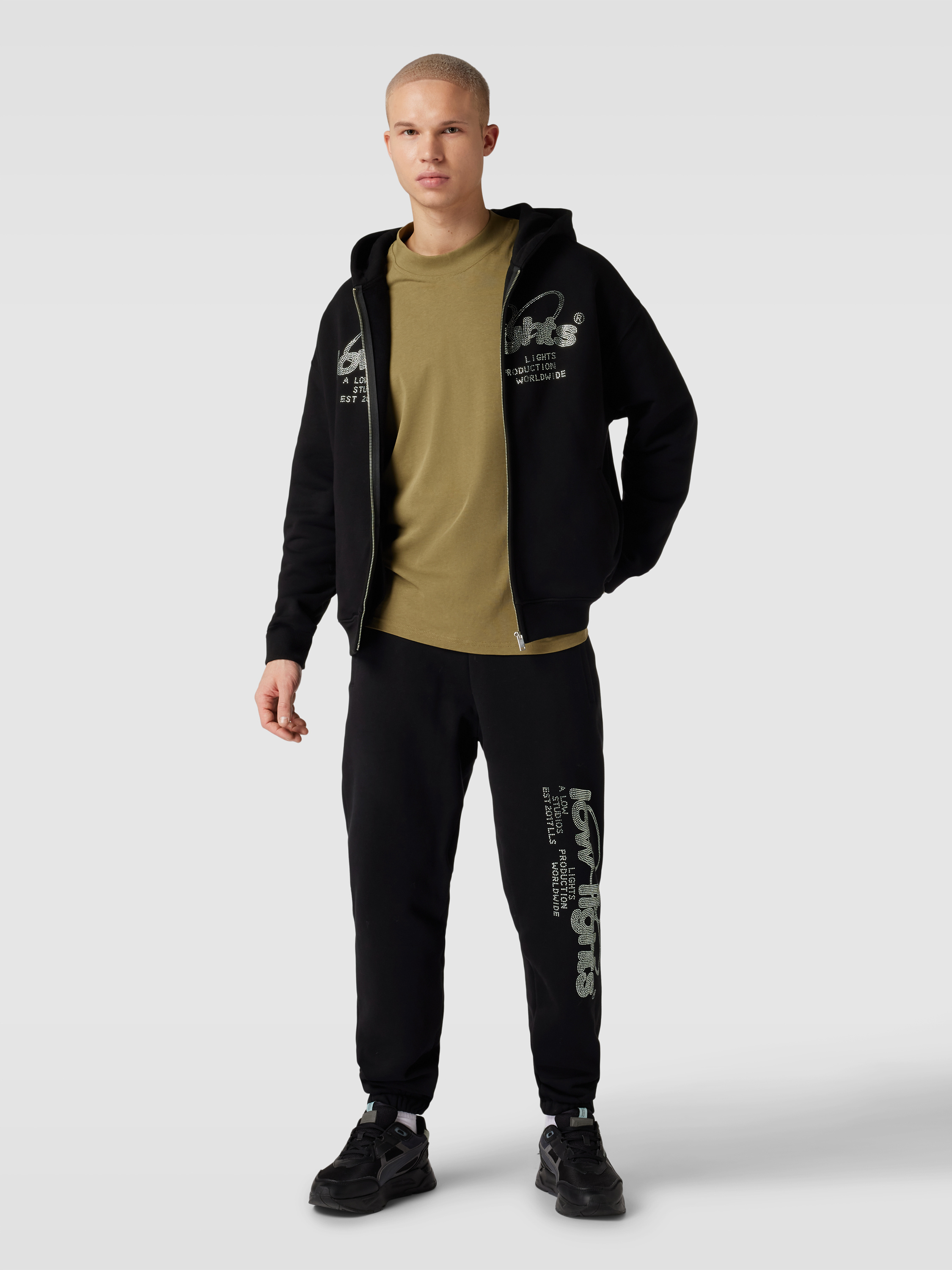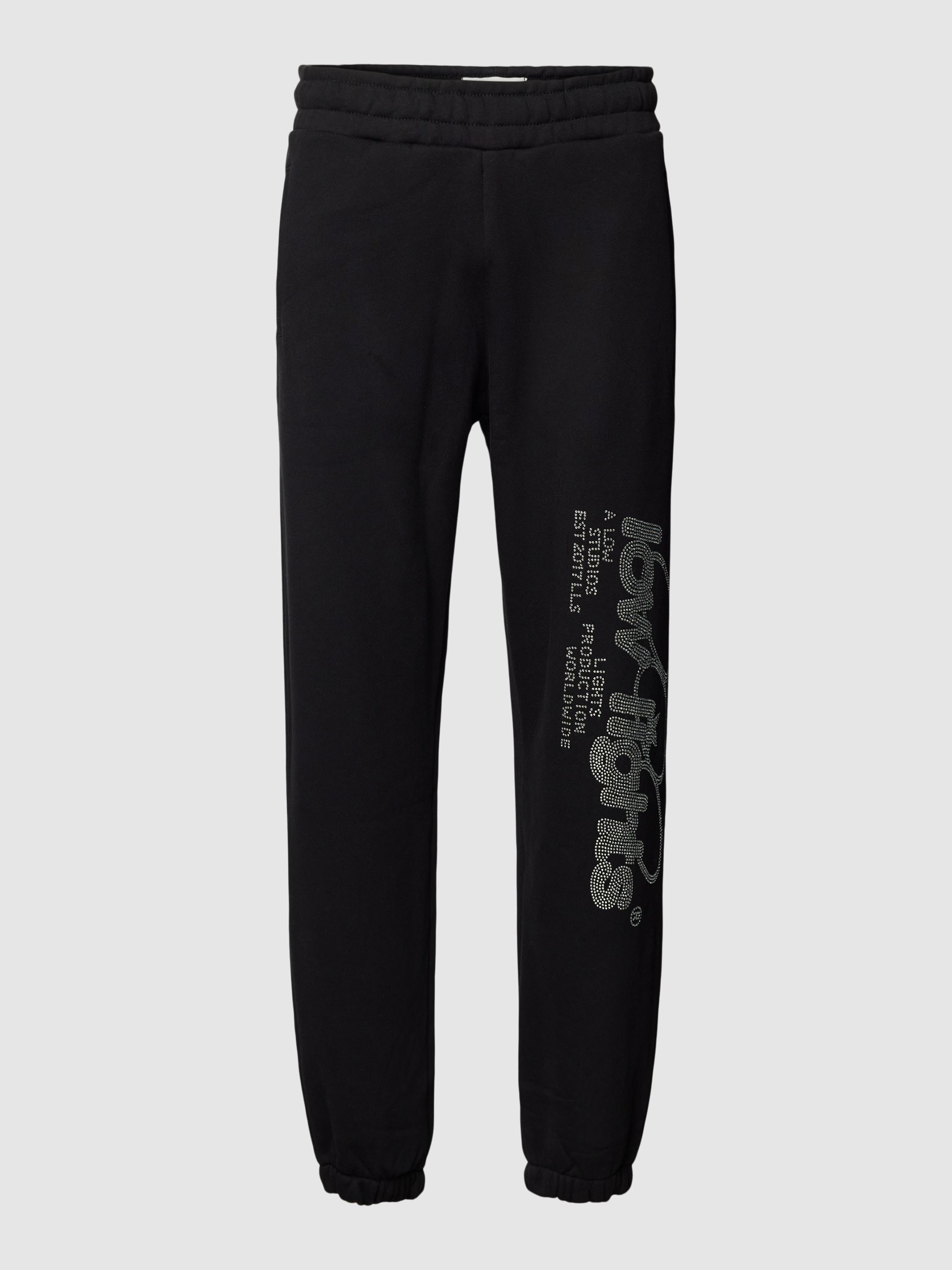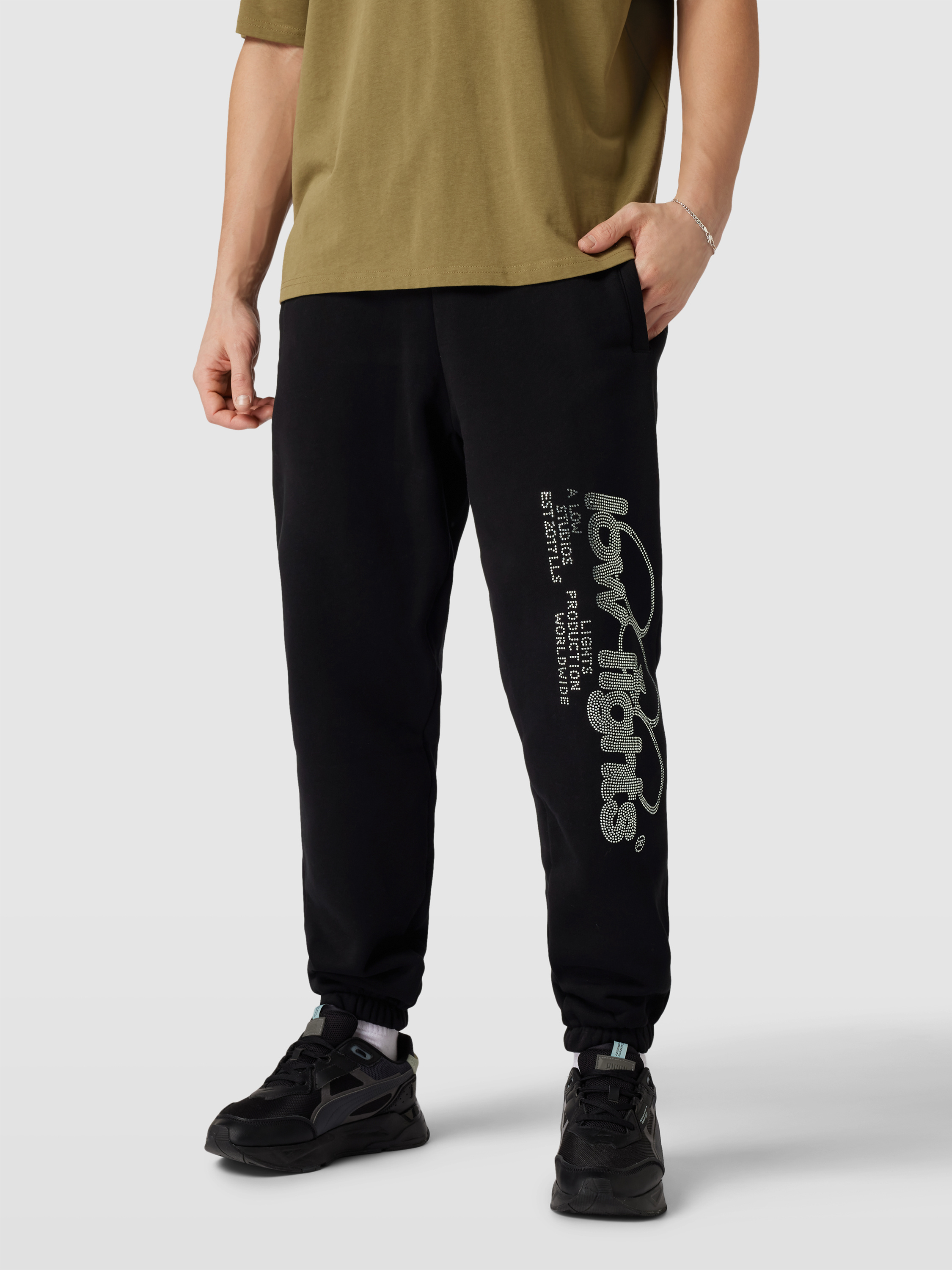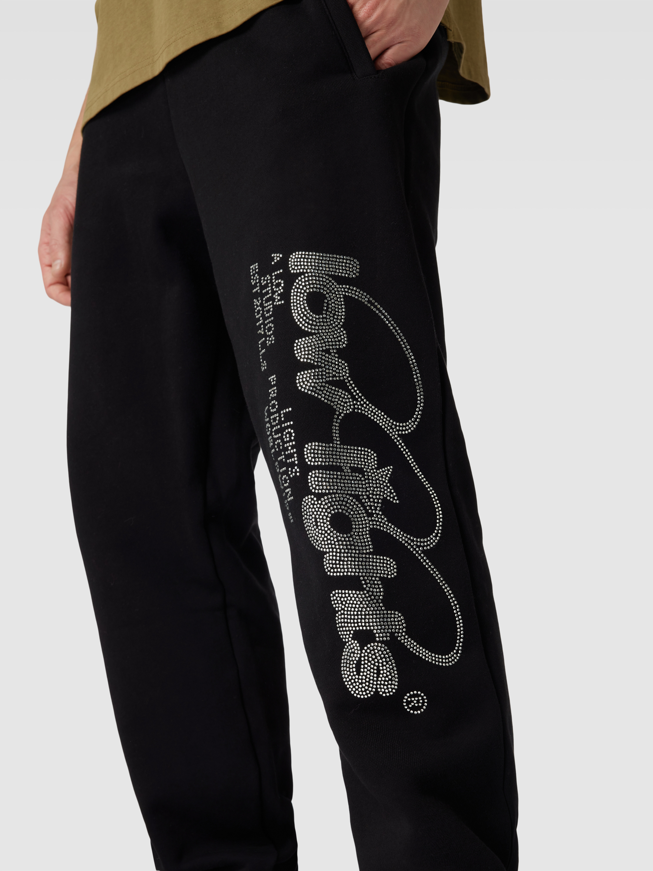 Spodnie dresowe z obszyciem kamieniami stras z logo - czarny