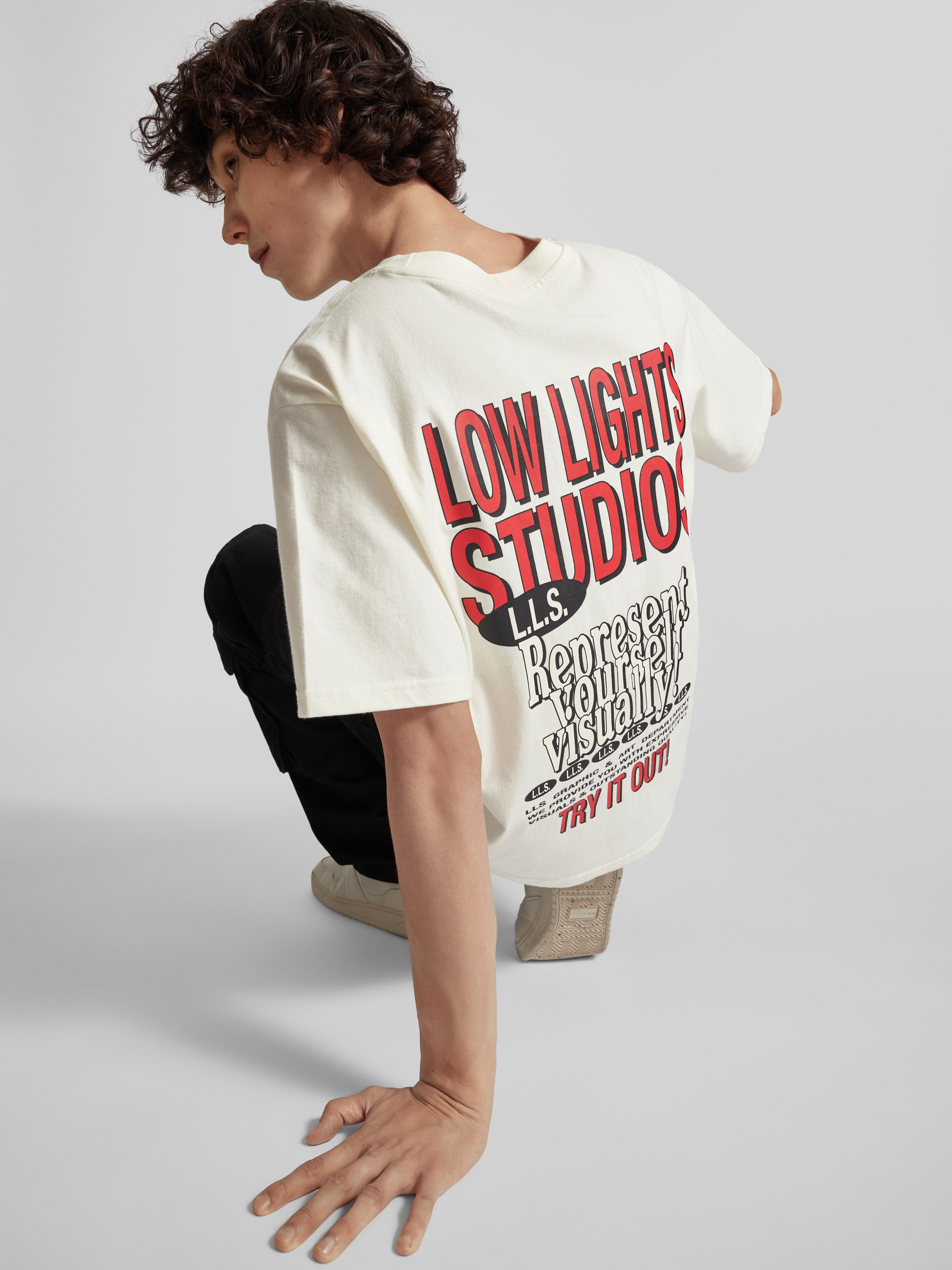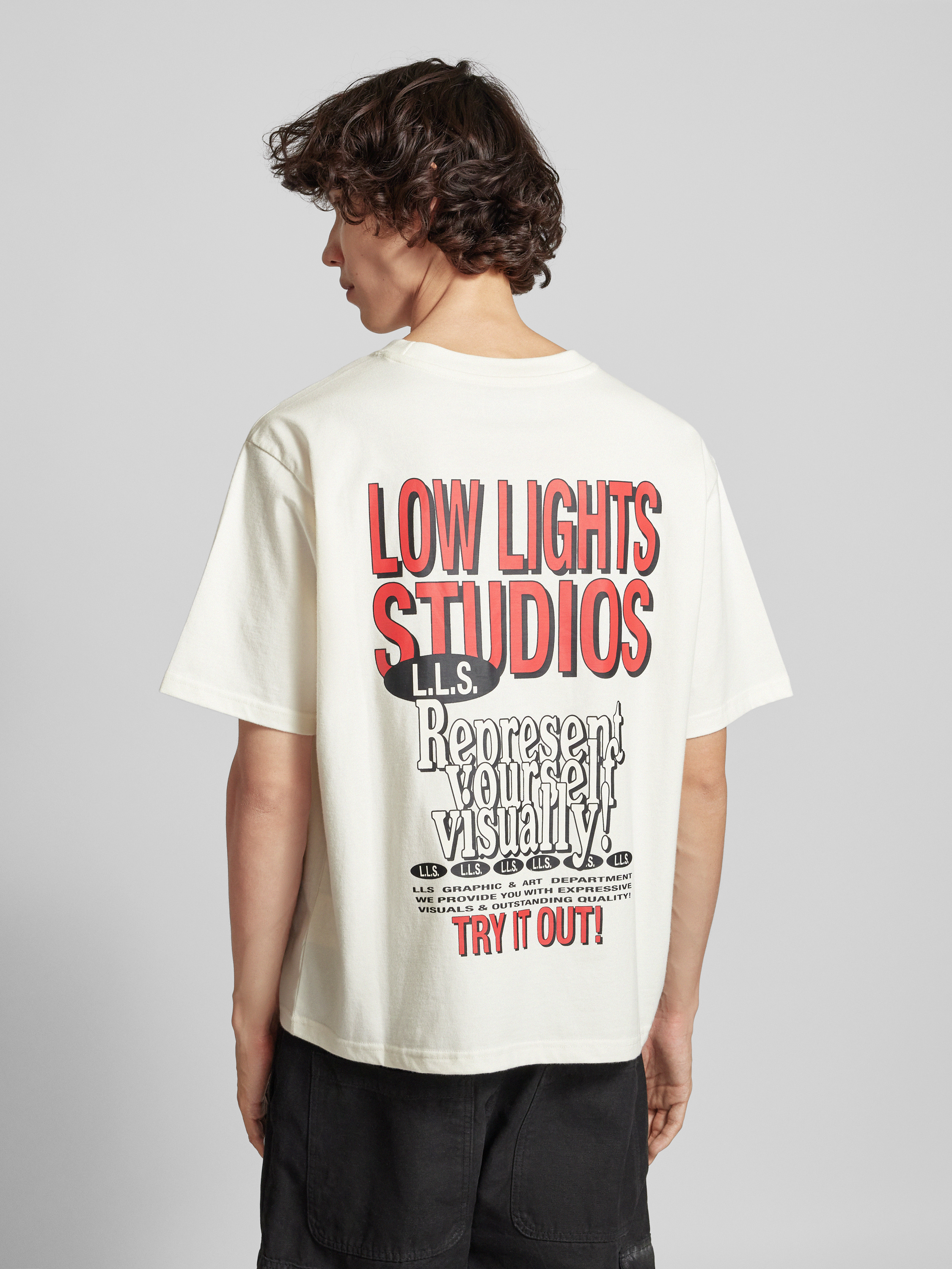 T-shirt z nadrukiem z logo model ‘REPRESENTATION’ - złamany biały