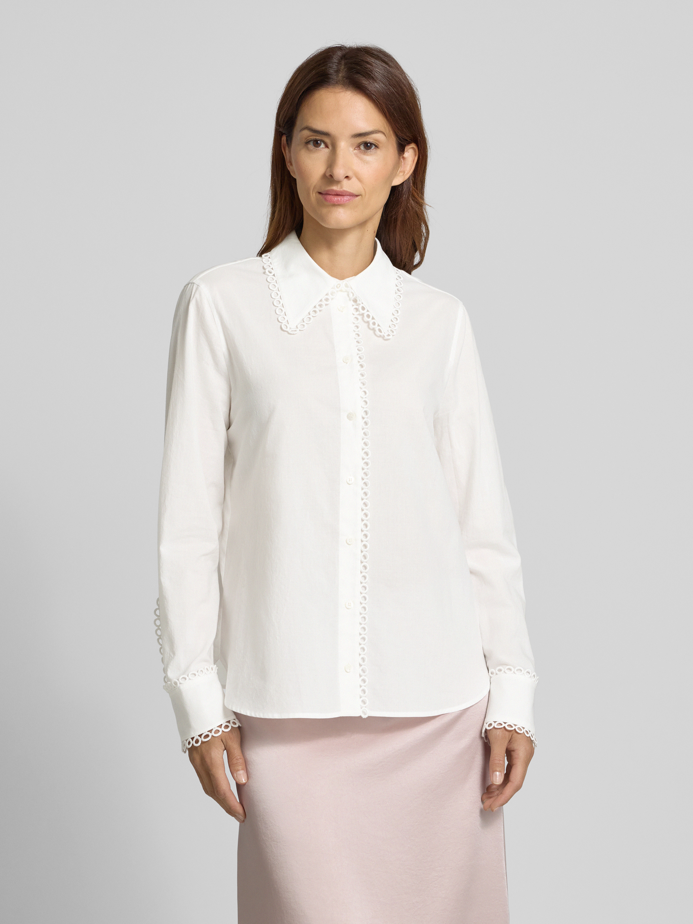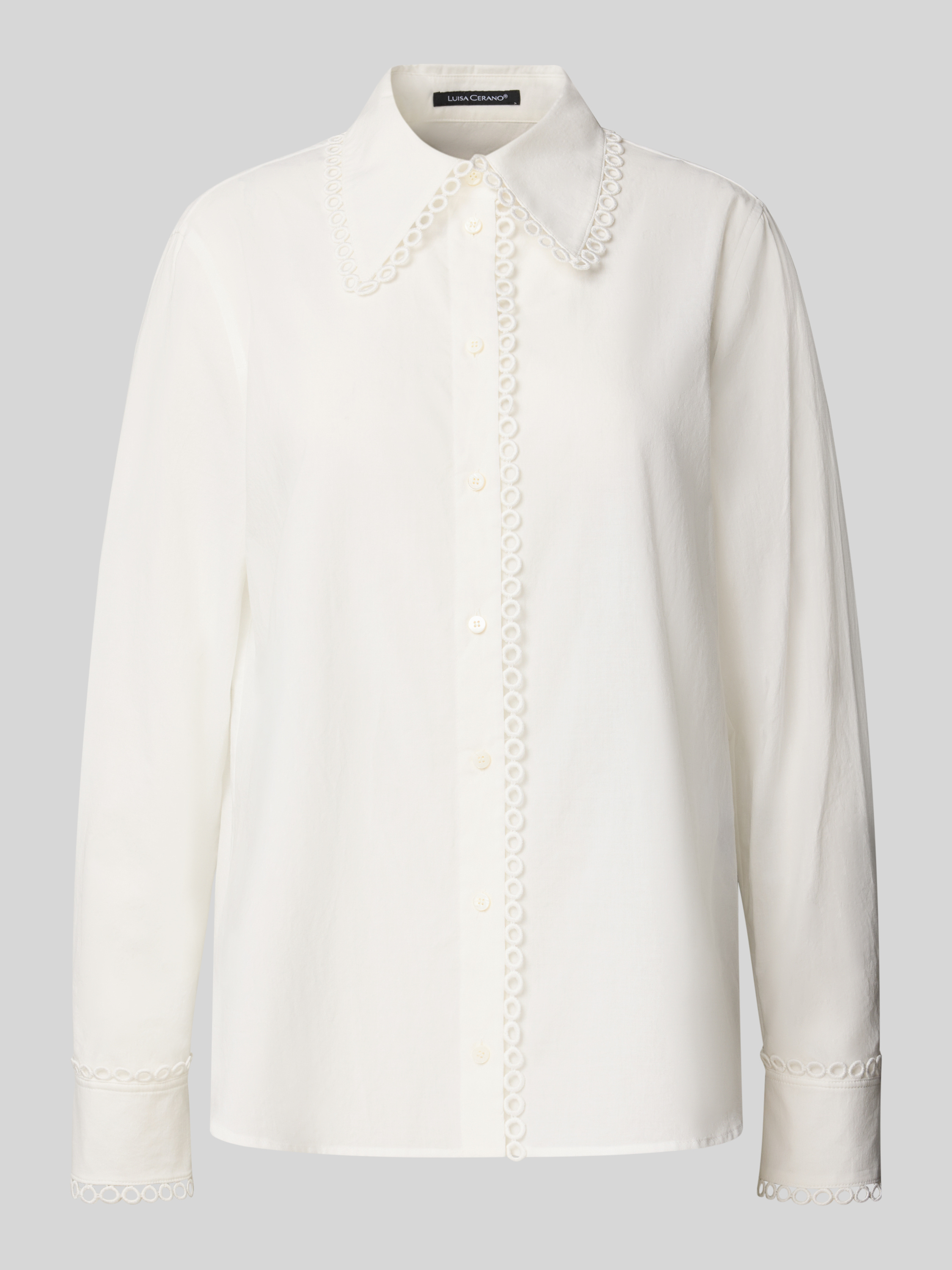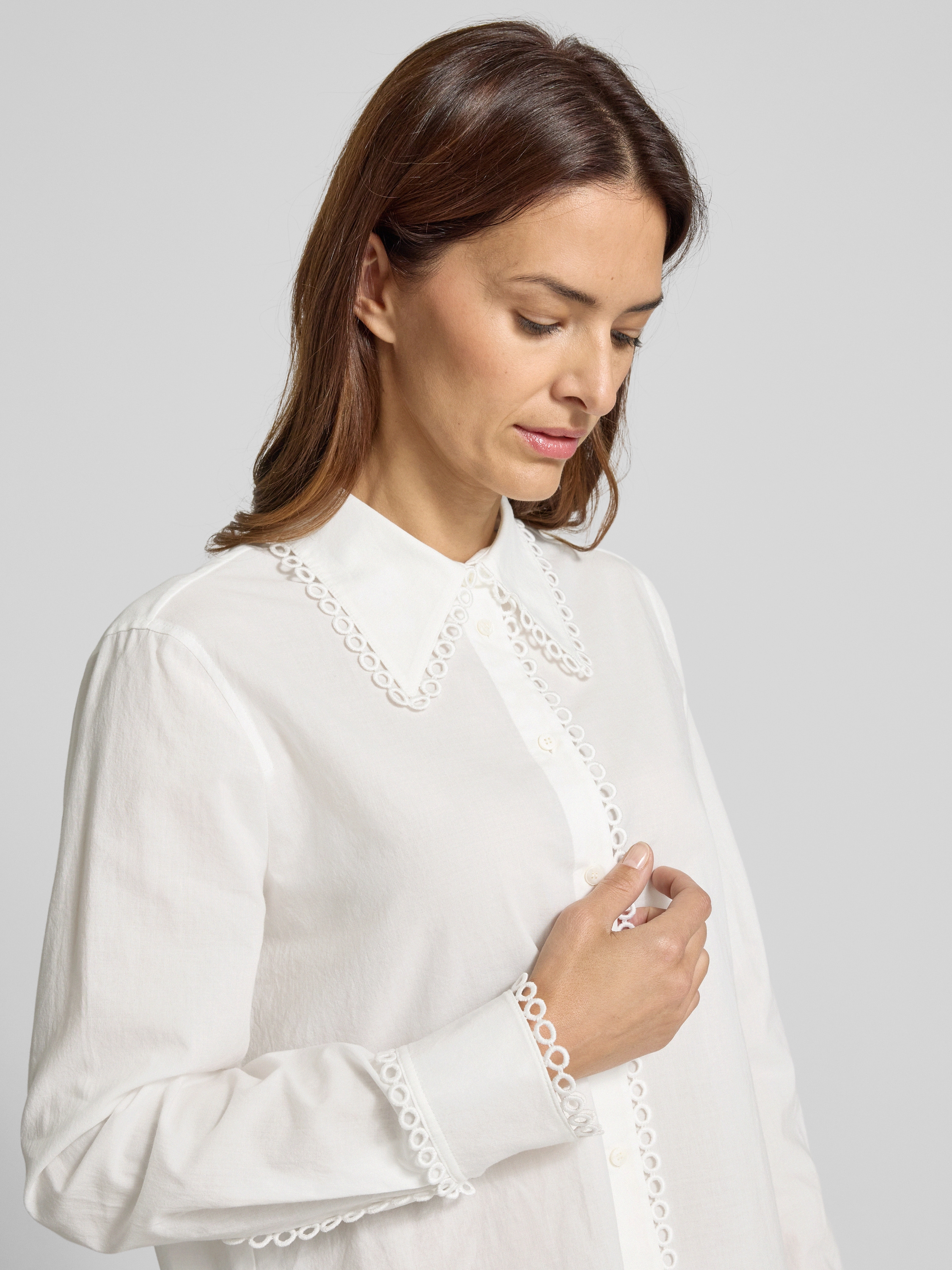 Bluzka o kroju regular fit z koronką szydełkową - złamany biały