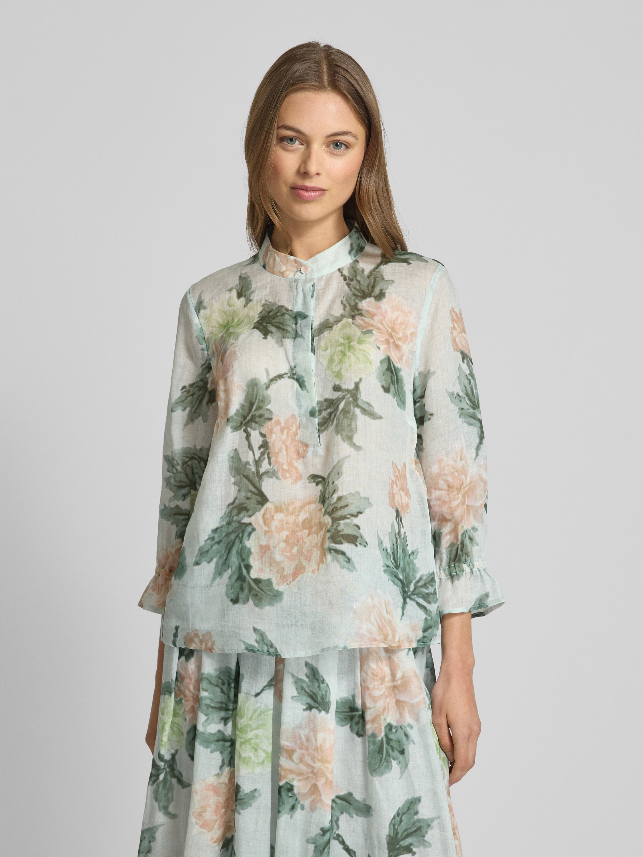 Bluzka o kroju regular fit ze stójką - miętowy
