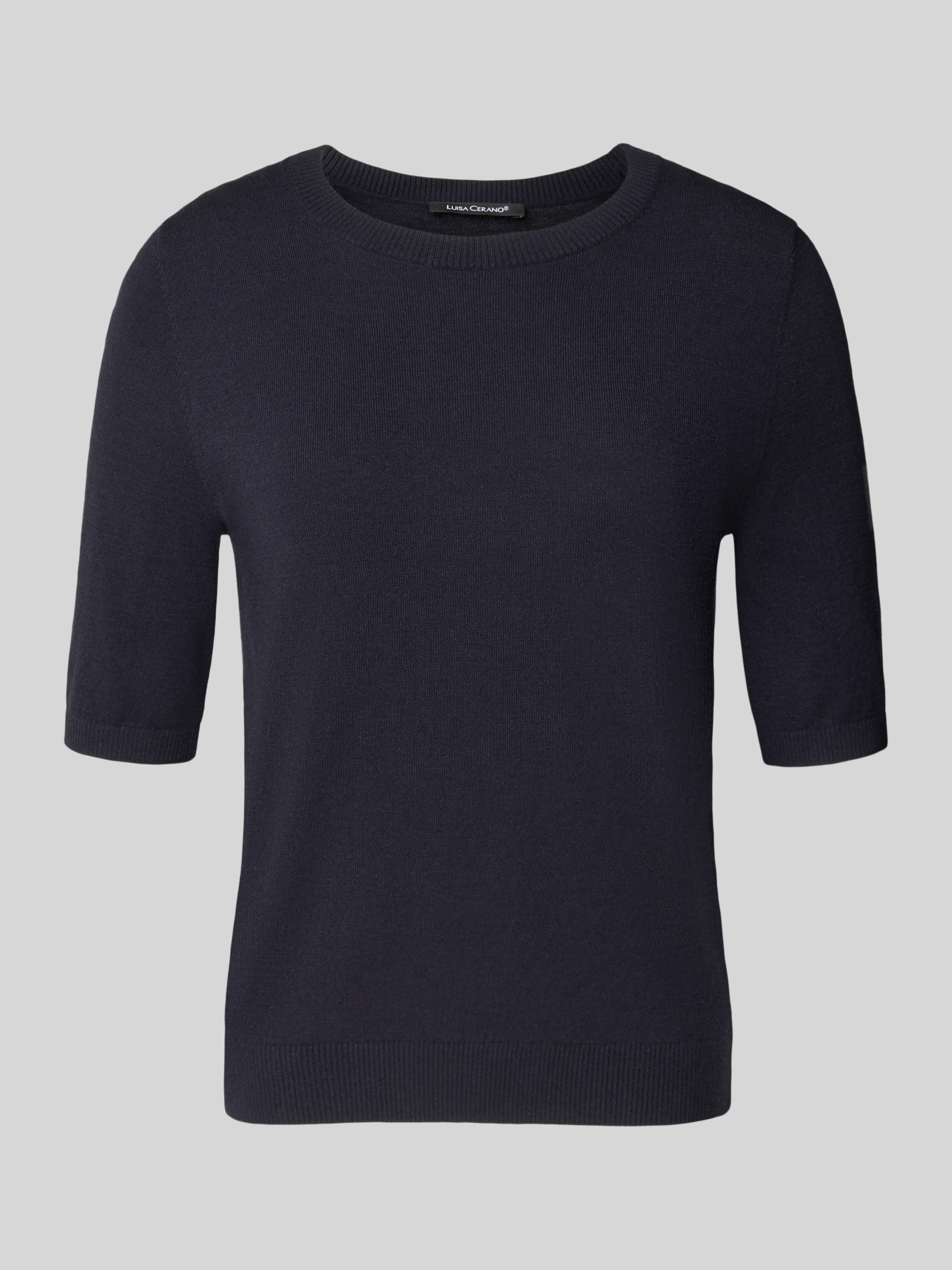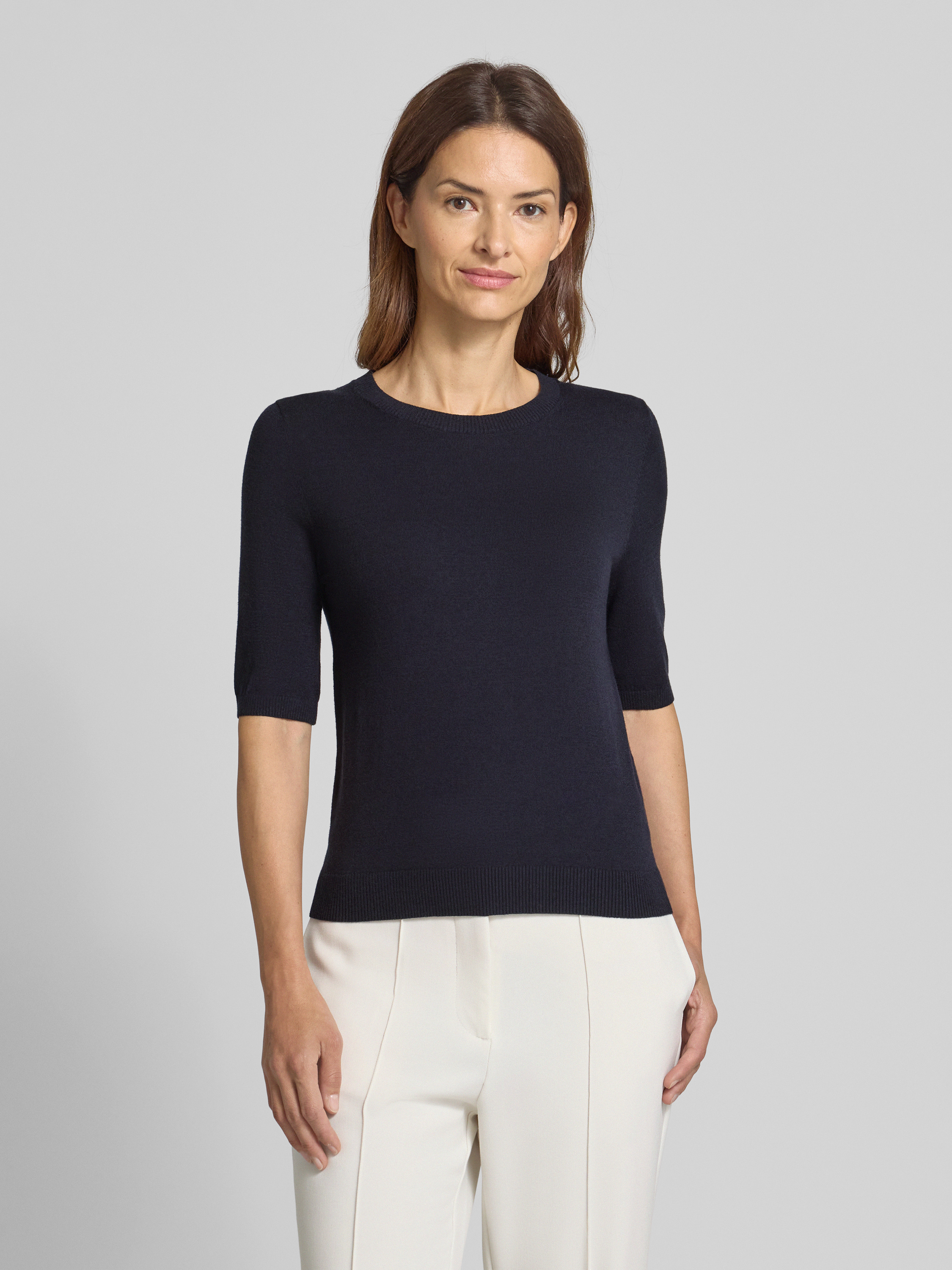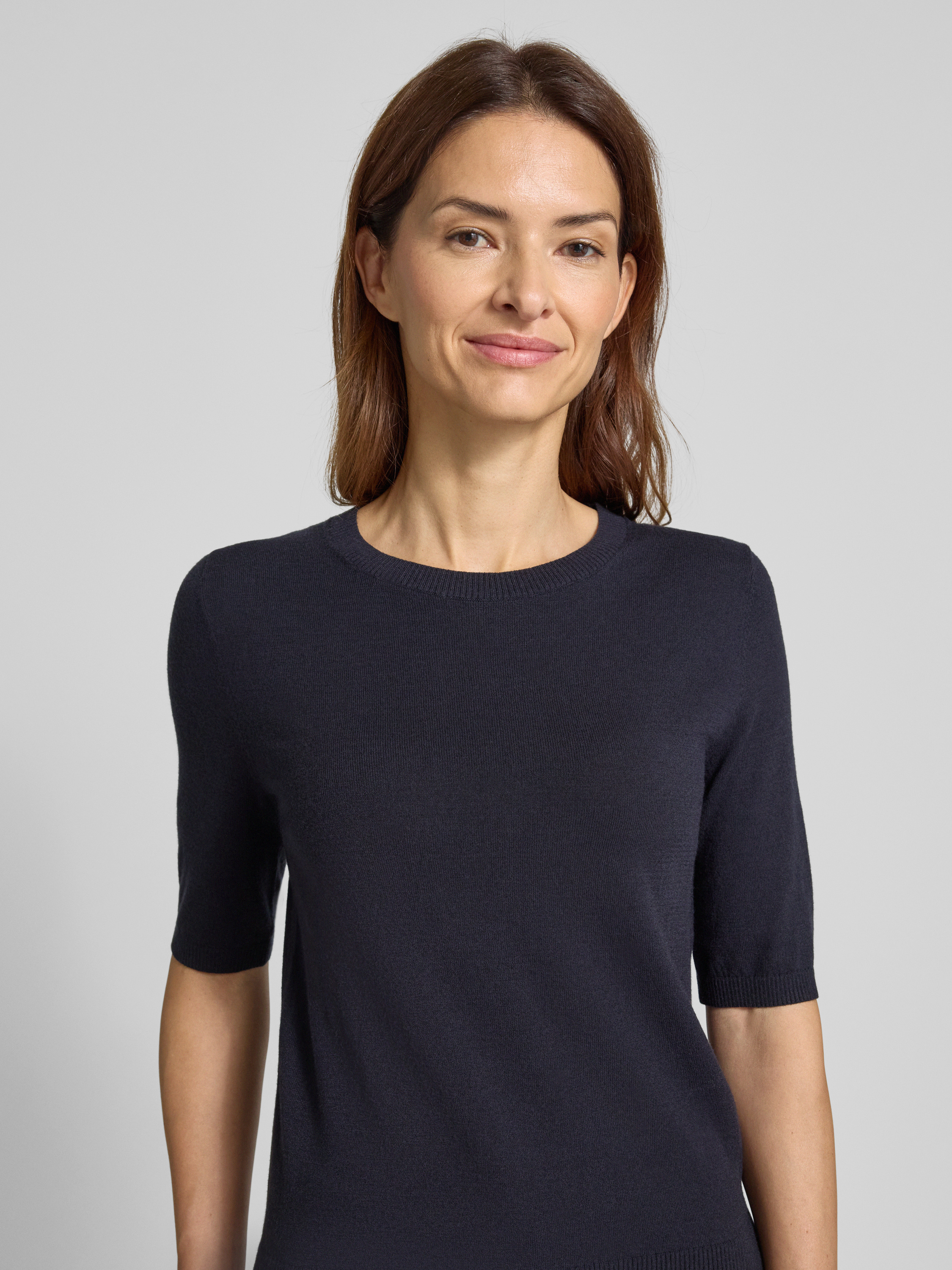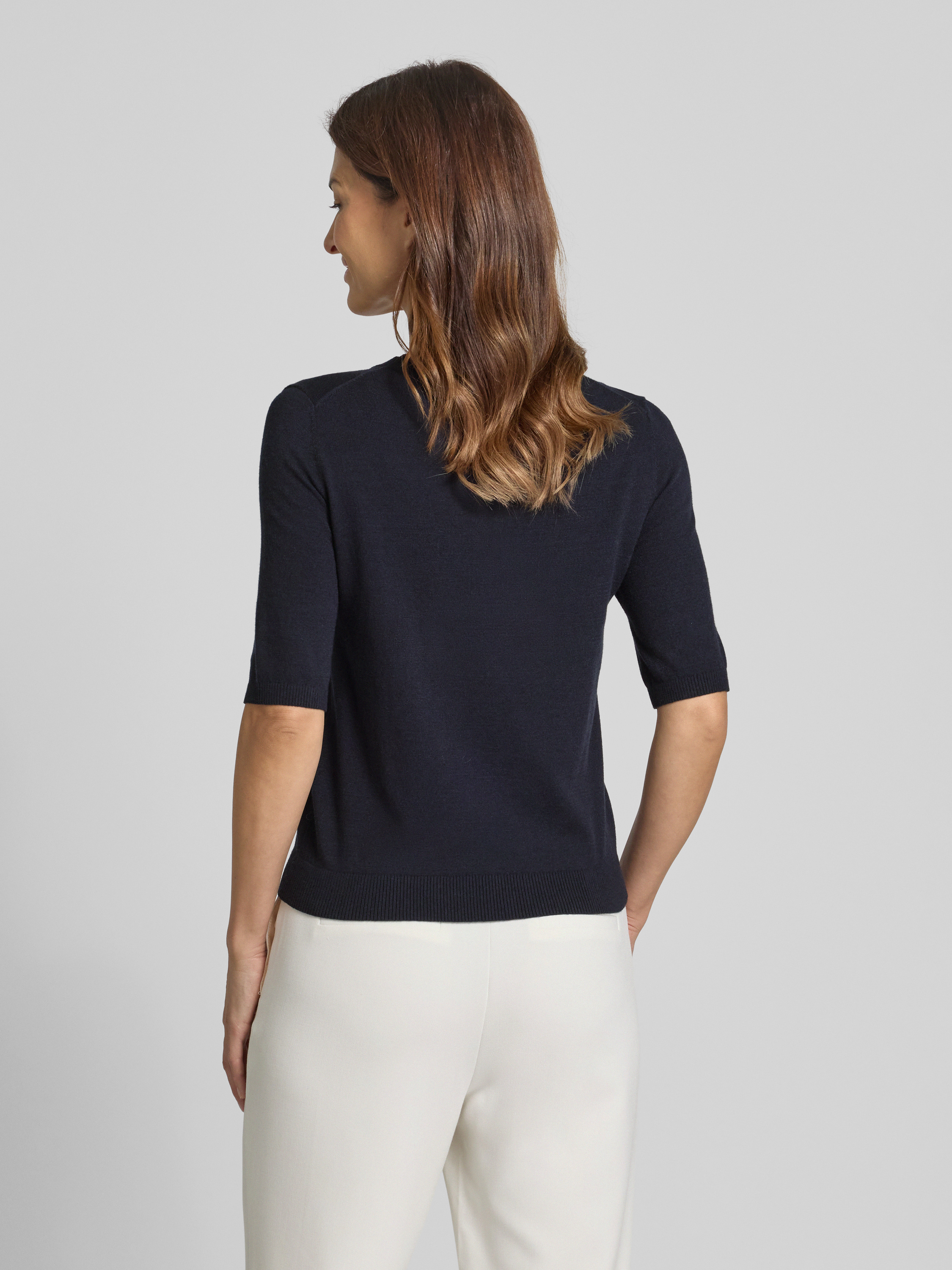 Bluzka z dzianiny z mieszanki wiskozy z okrągłym dekoltem - granatowy