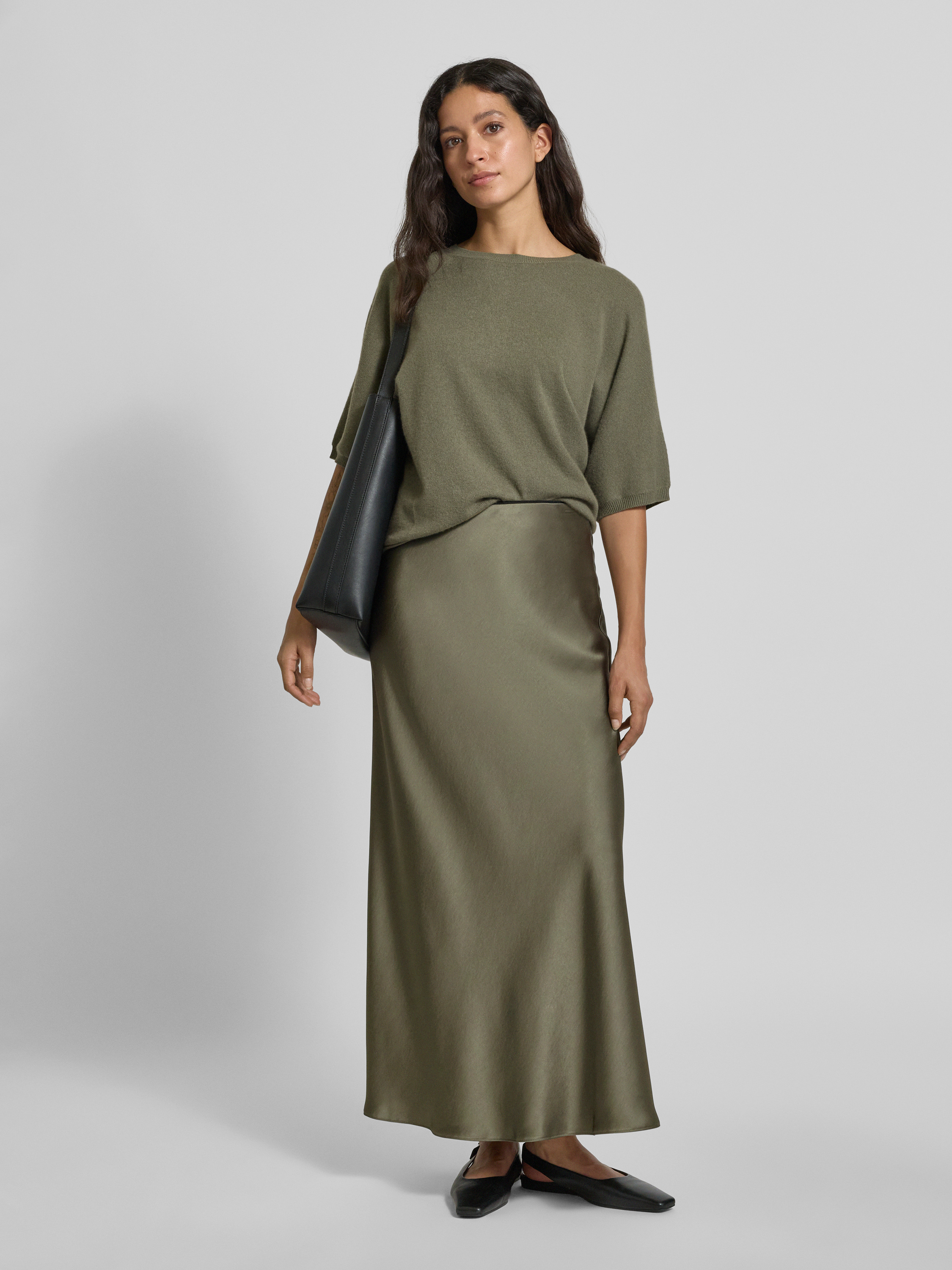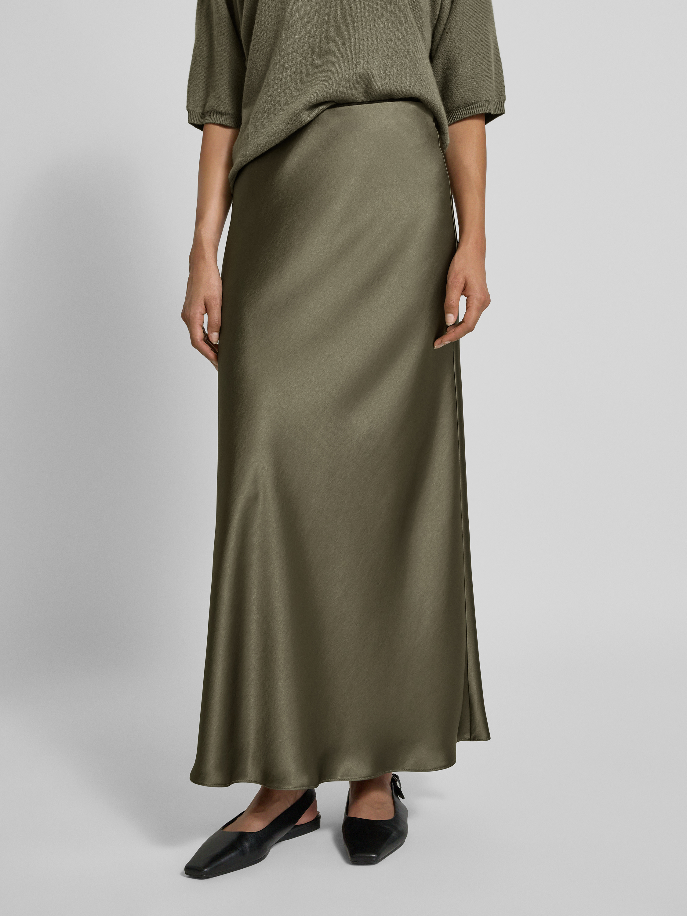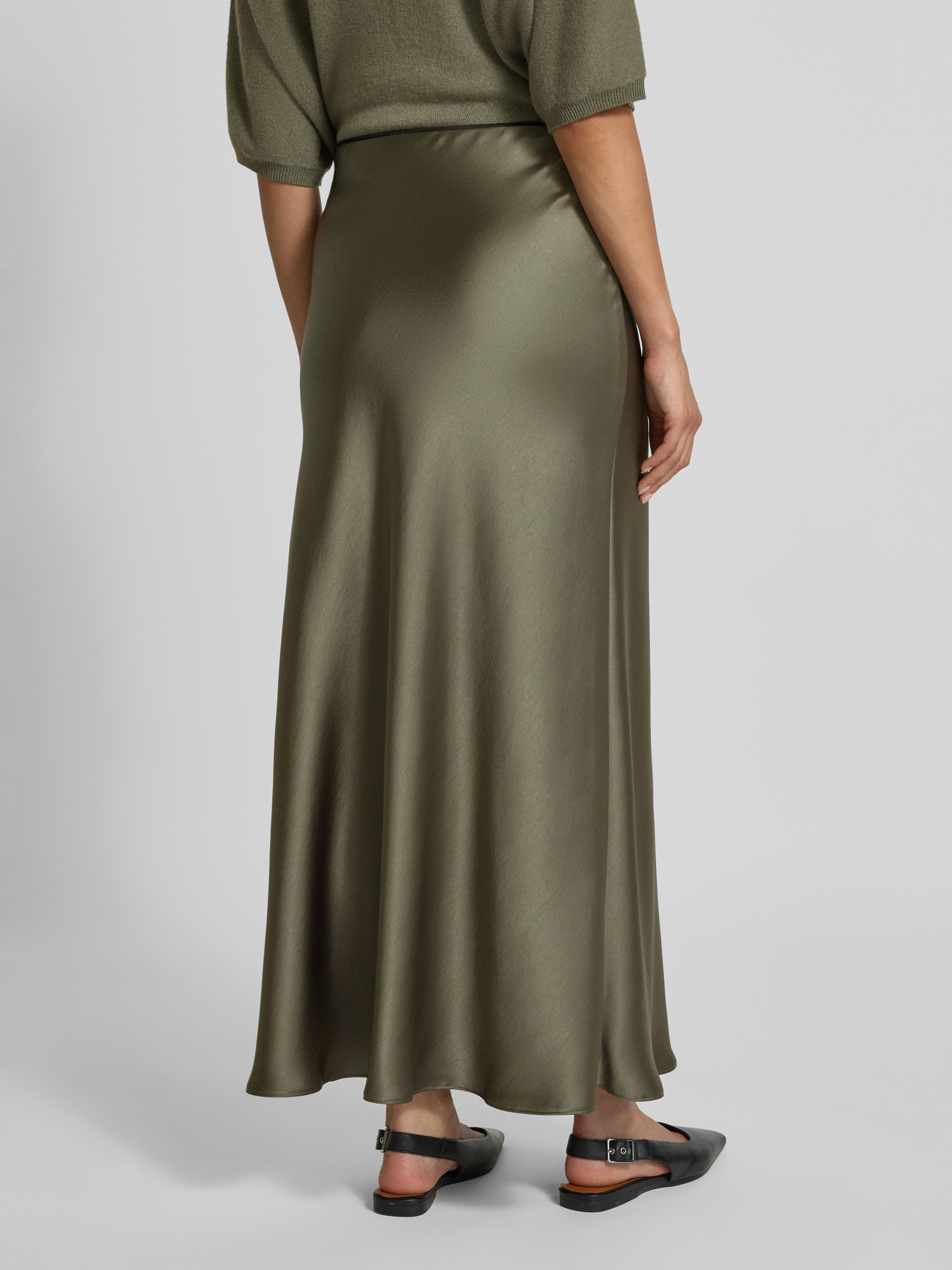 Długa spódnica z elastycznym pasem - khaki