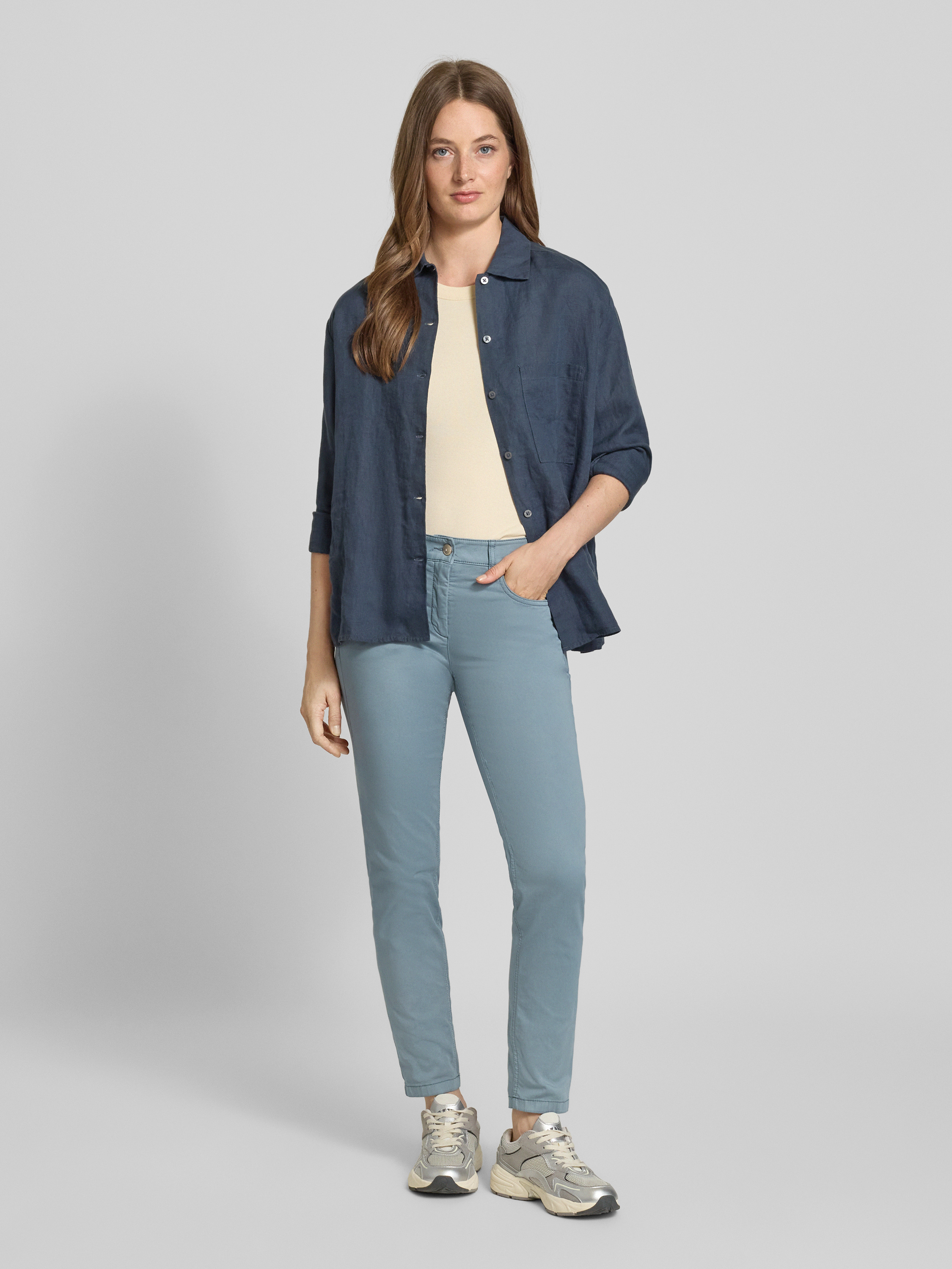 Spodnie z wpuszczanymi kieszeniami i elastycznym pasem - szaroniebieski