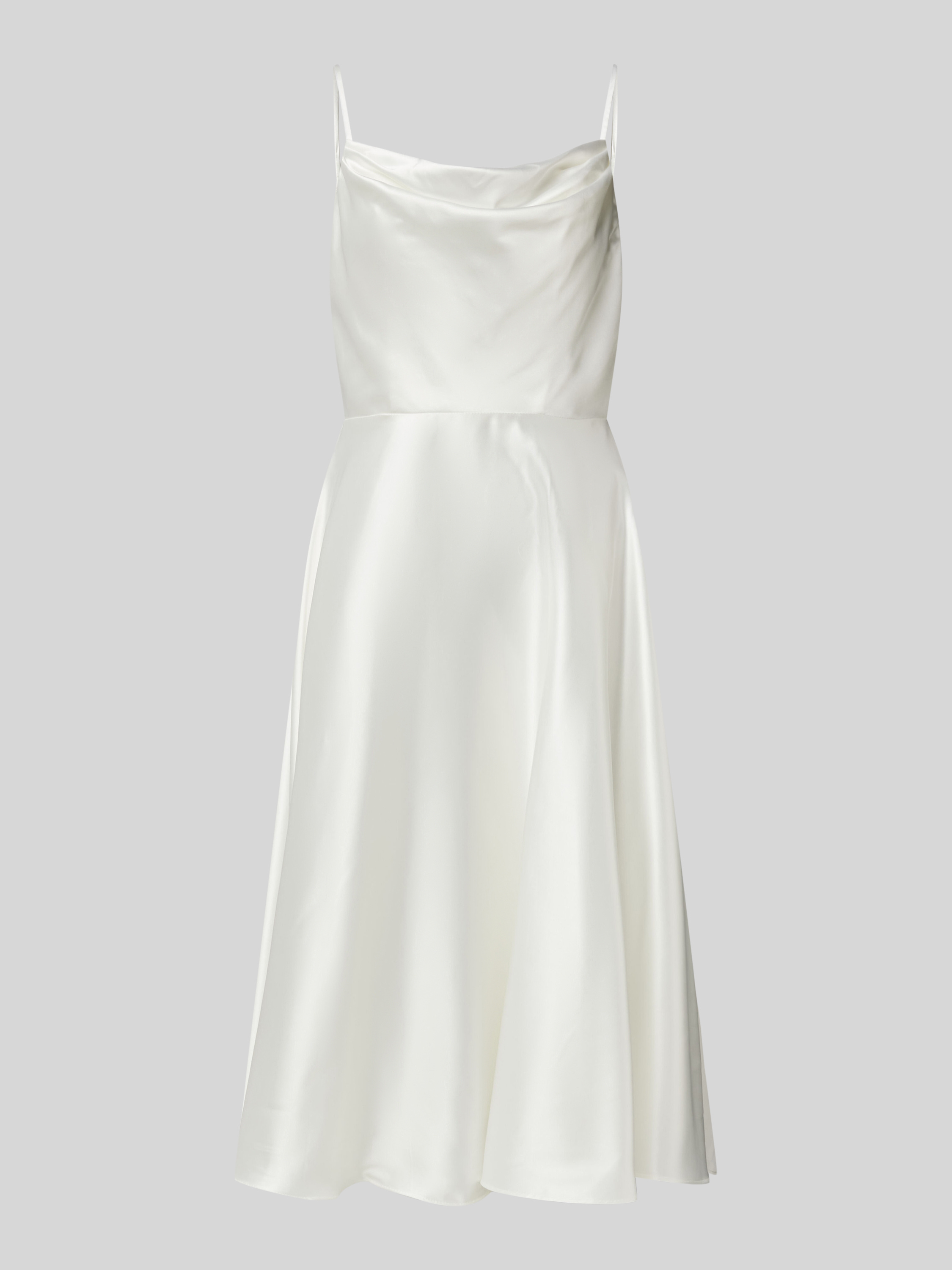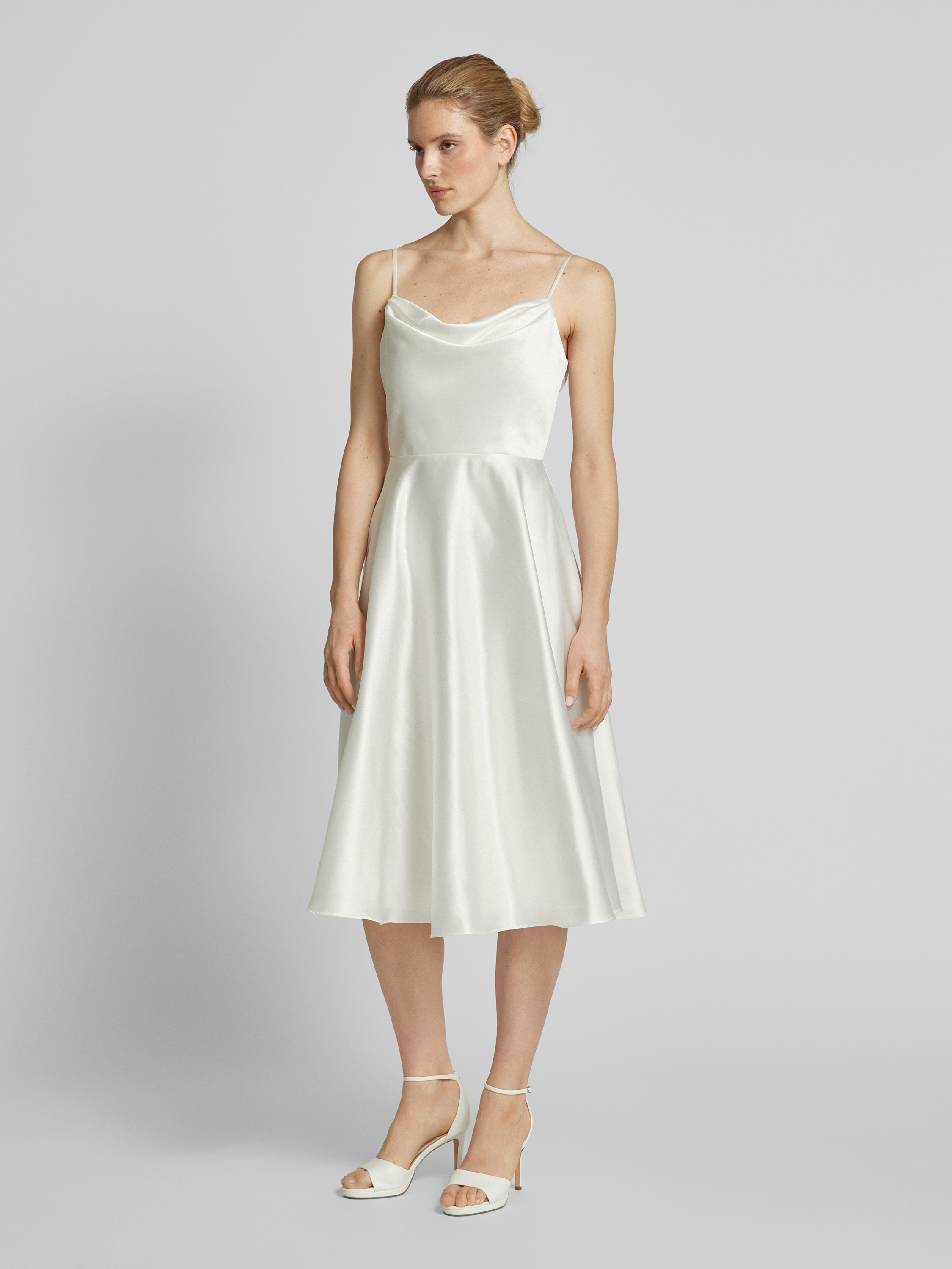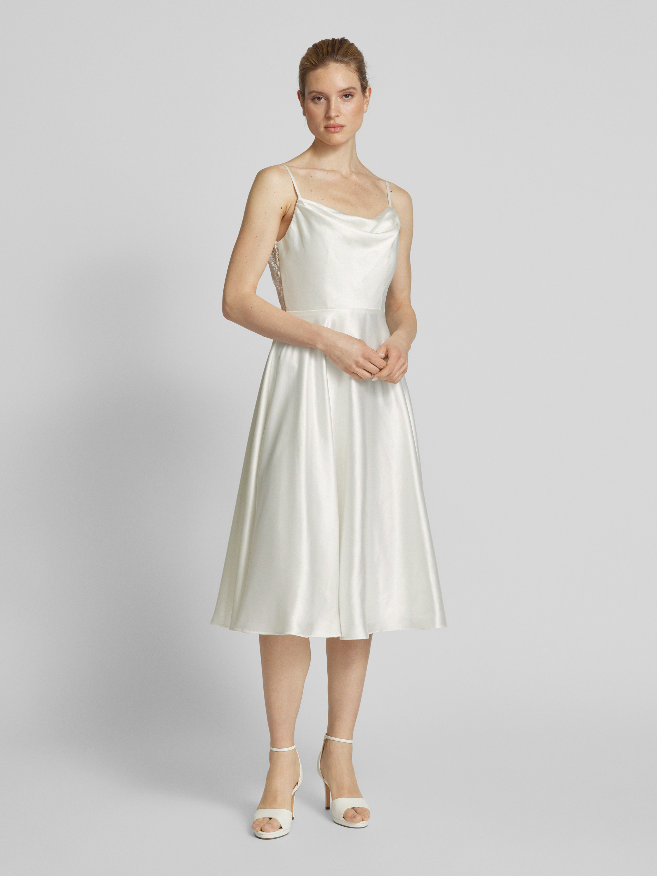 Sukienka koktajlowa suknia ślubna o długości do kolan z lejącym dekoltem - złamany biały