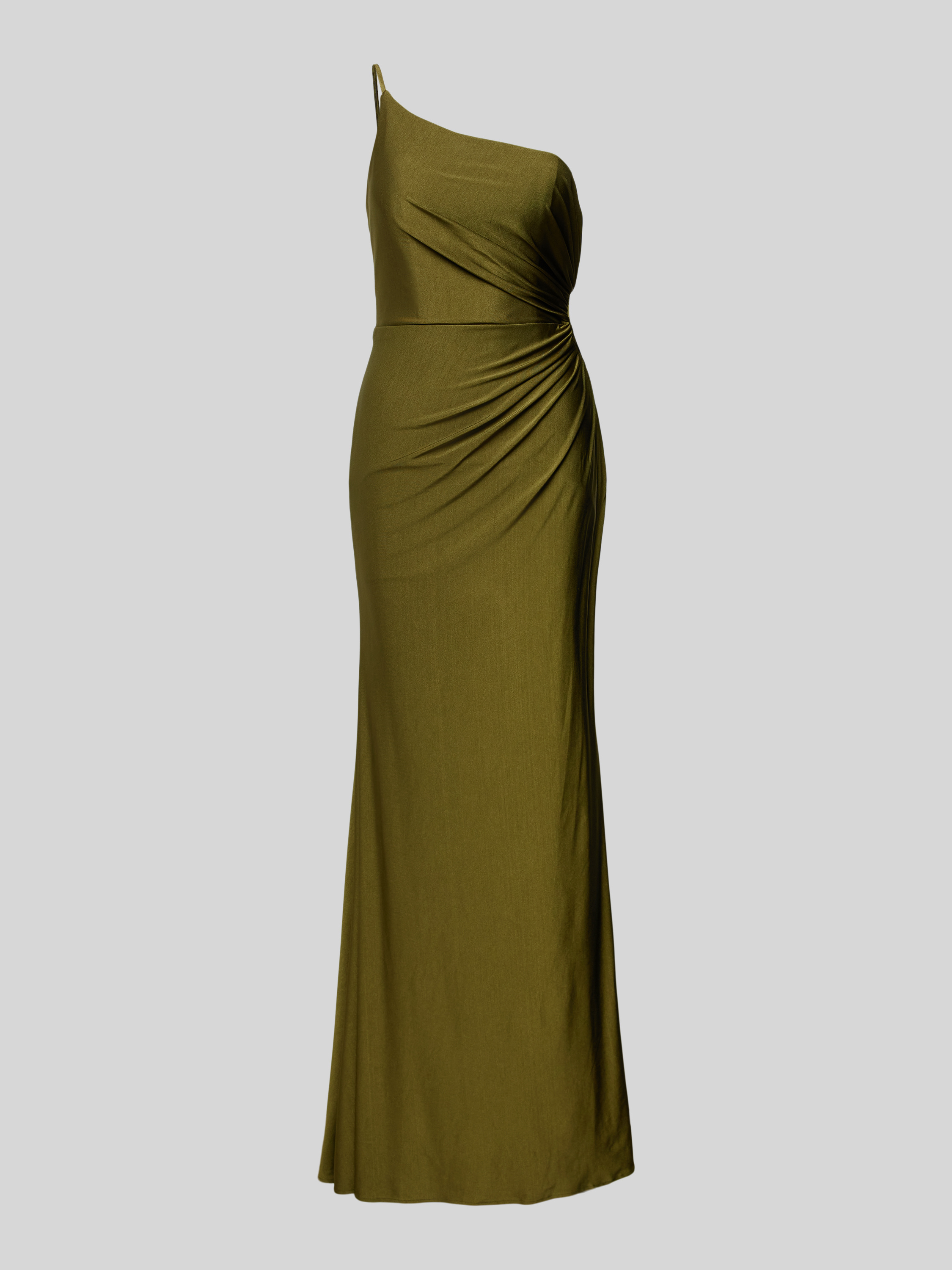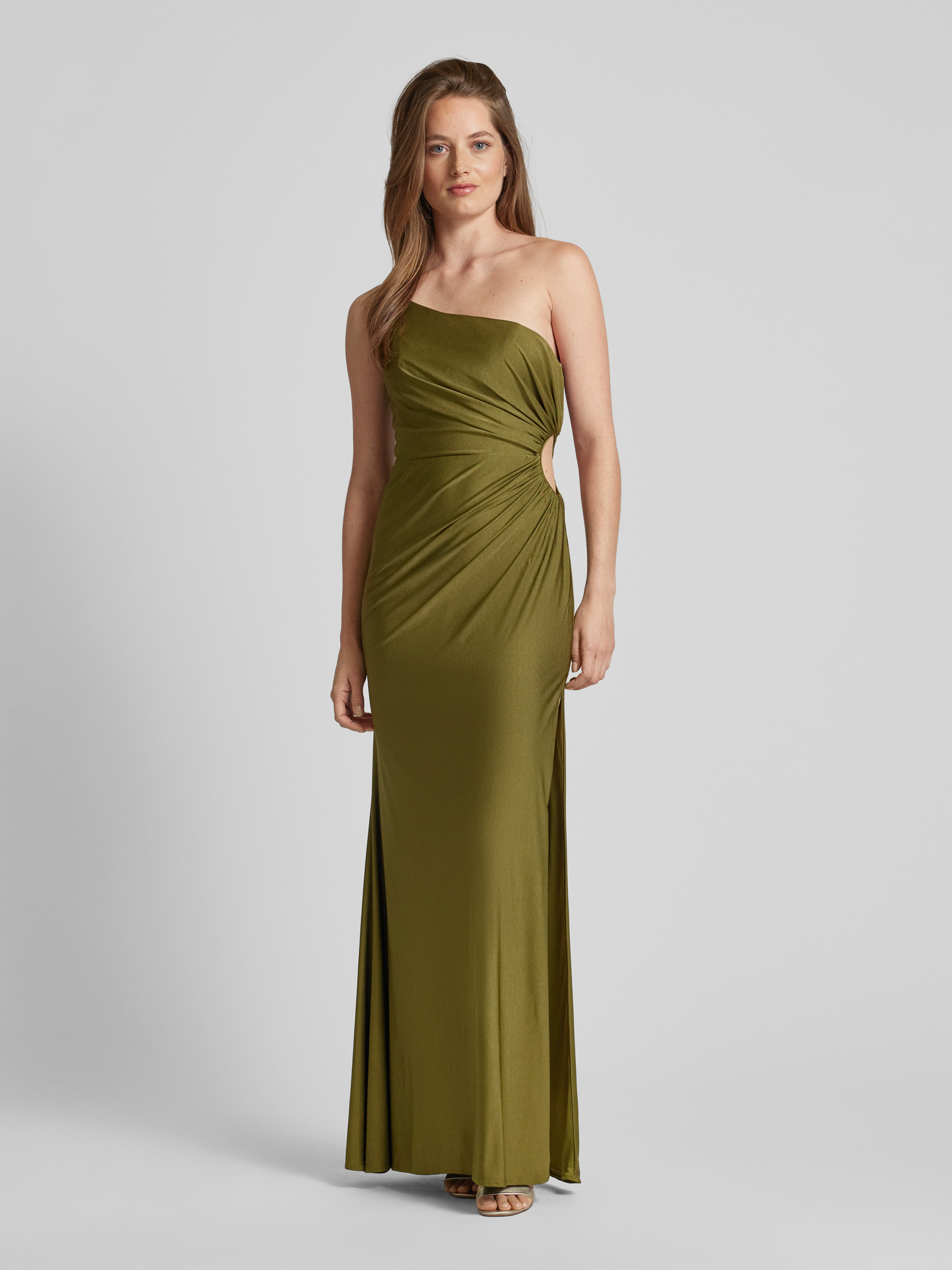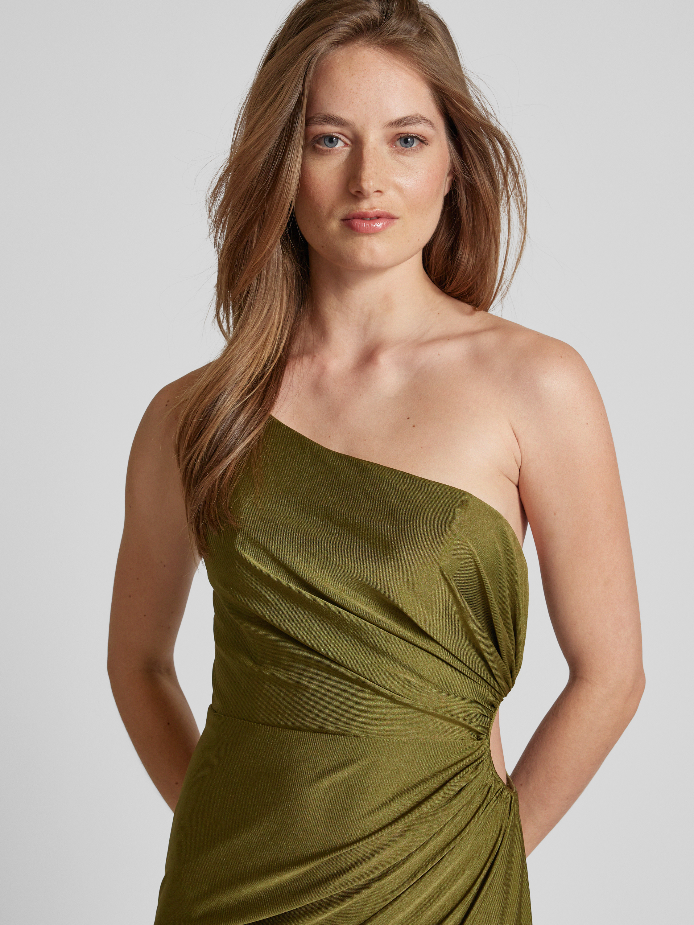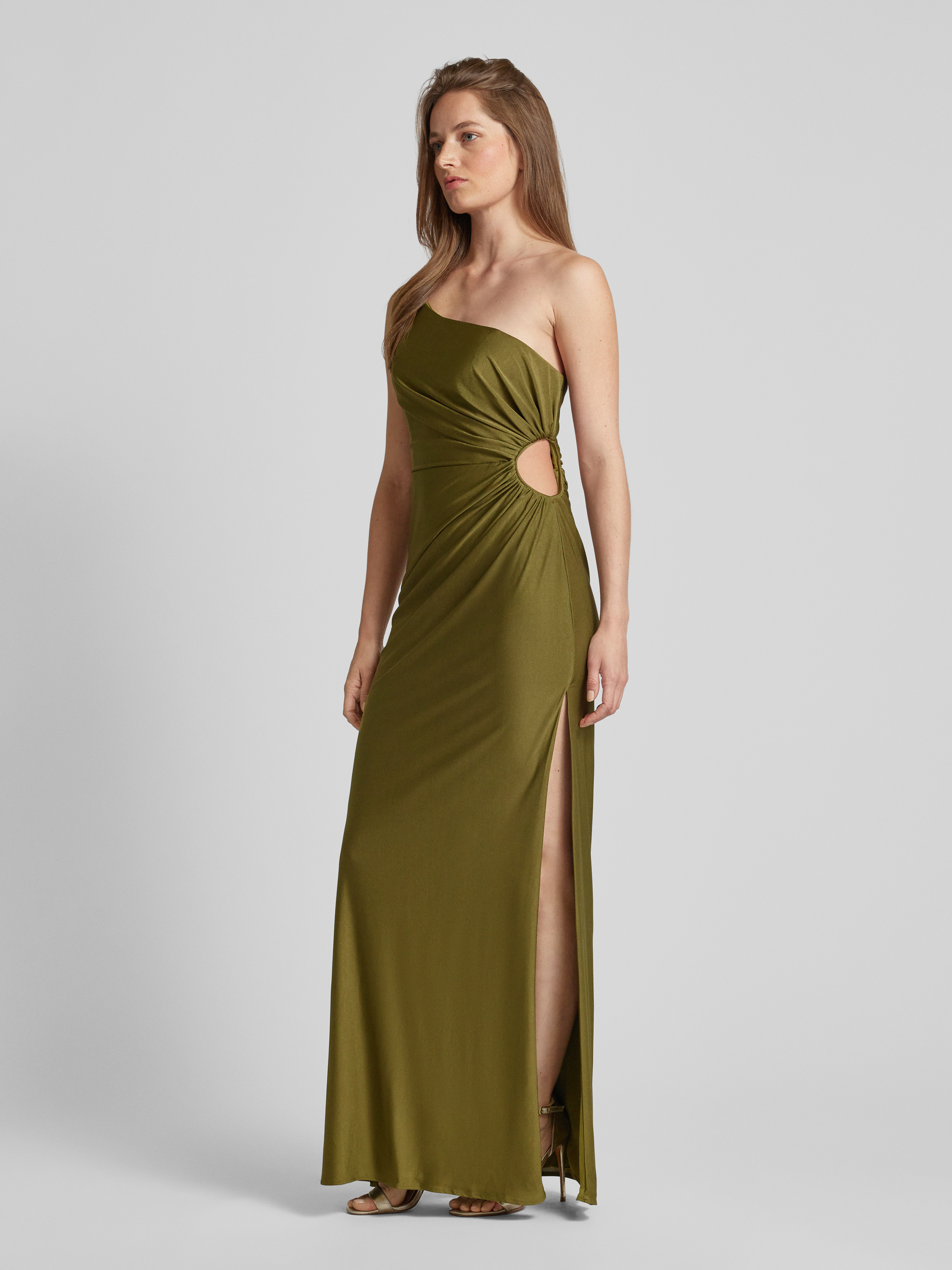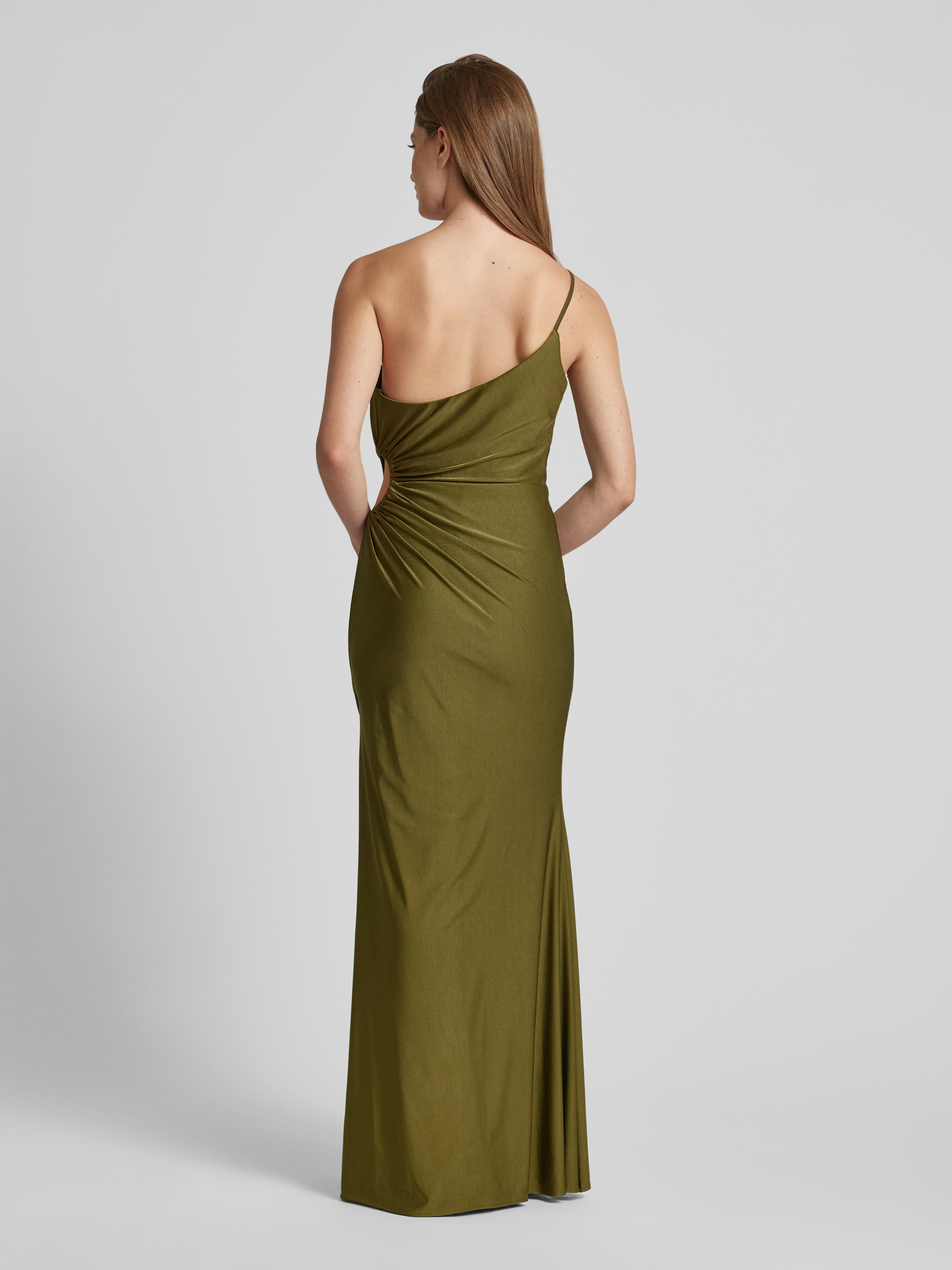 Sukienka wieczorowa na jedno ramię - oliwkowy