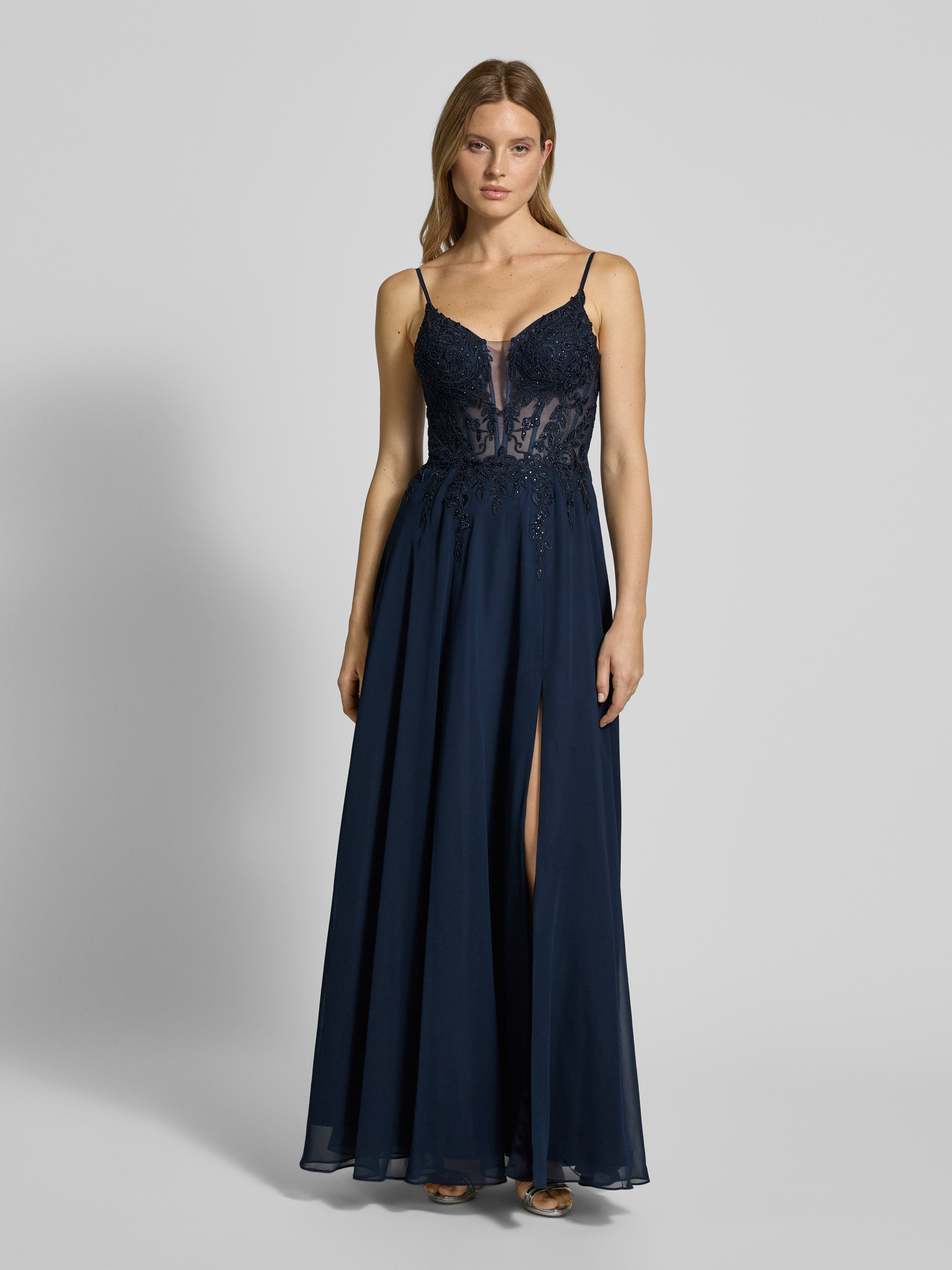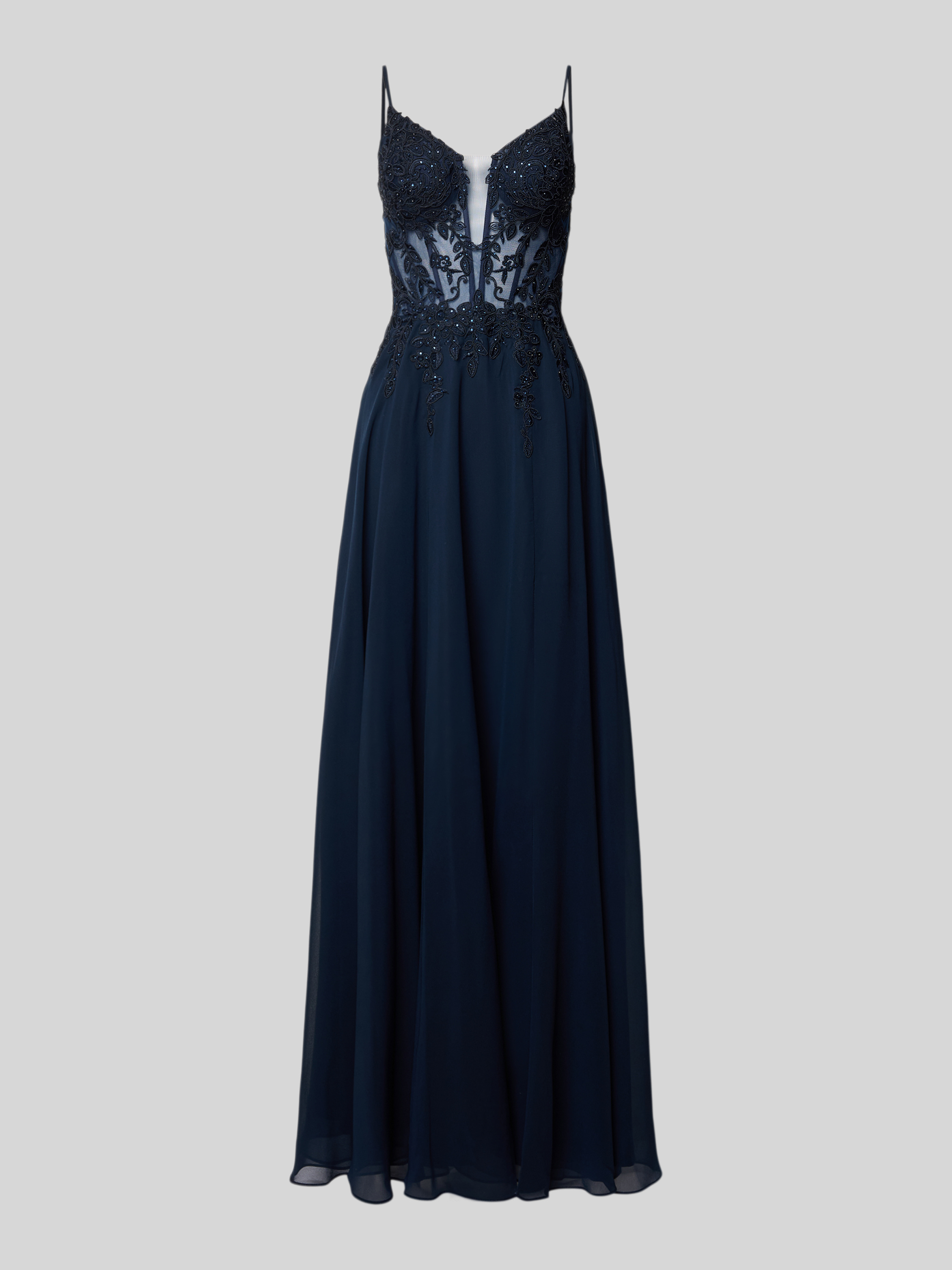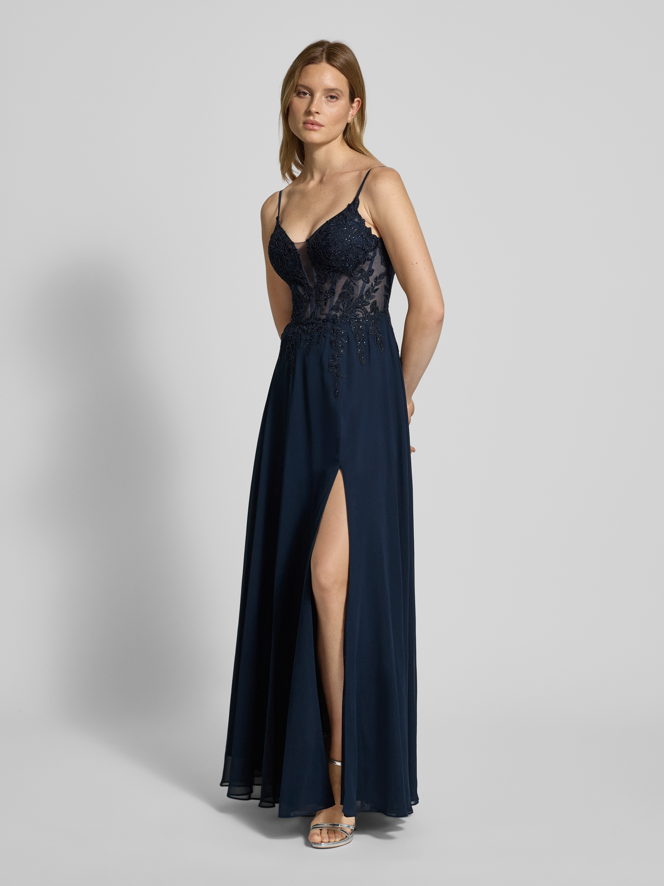 Sukienka wieczorowa z dekoltem w kształcie serca - ciemnoniebieski