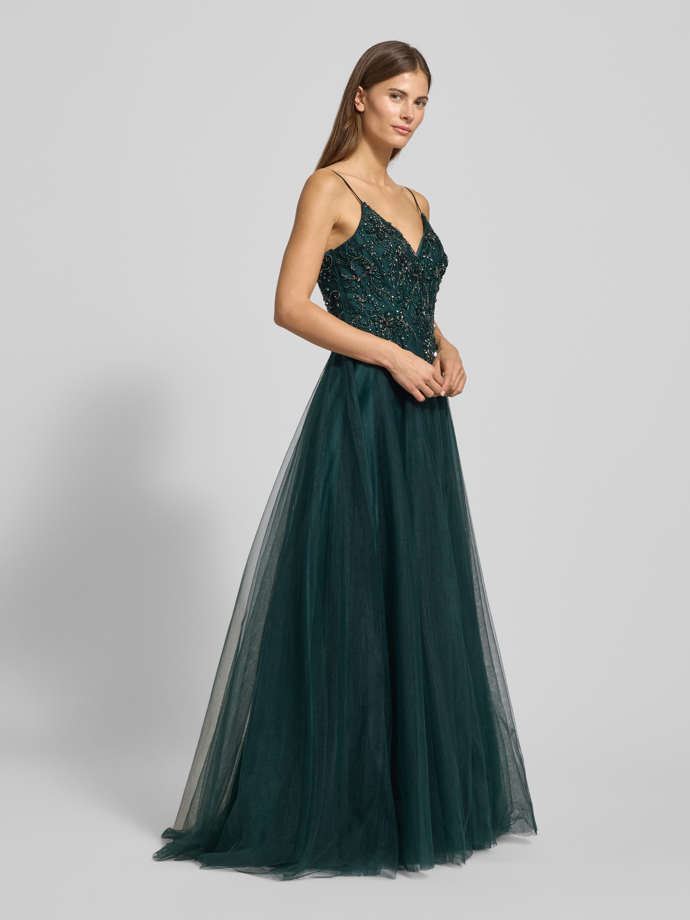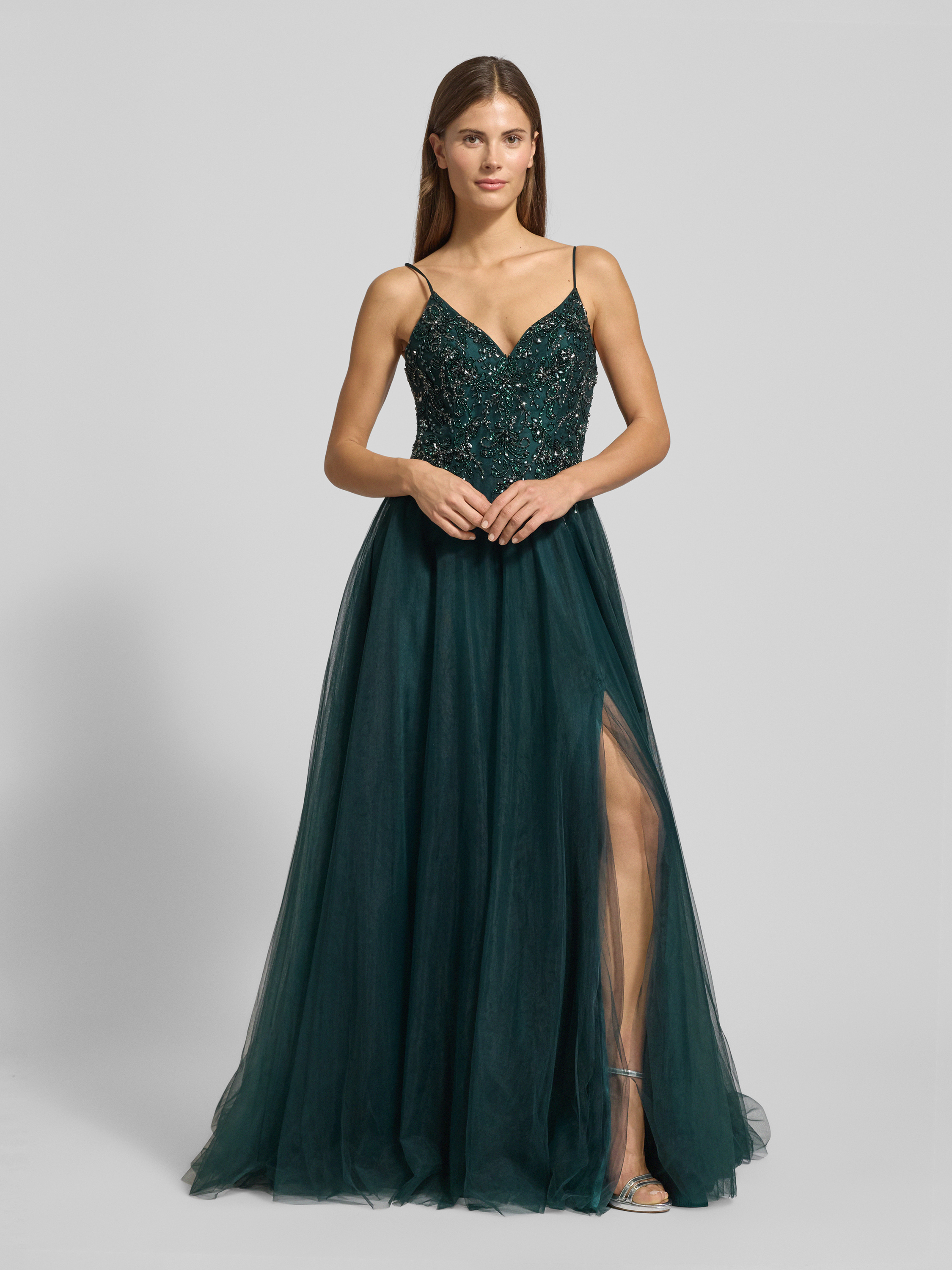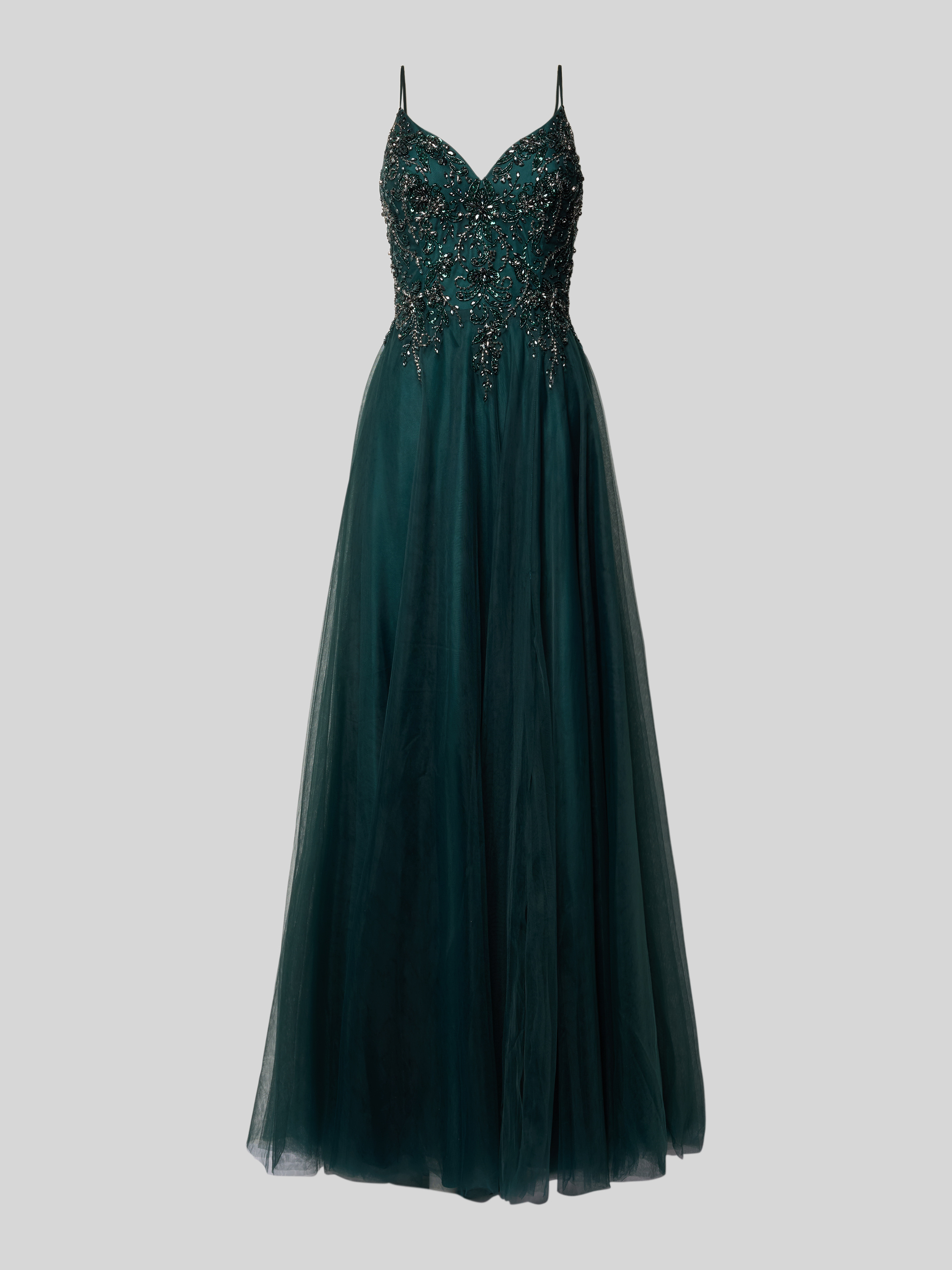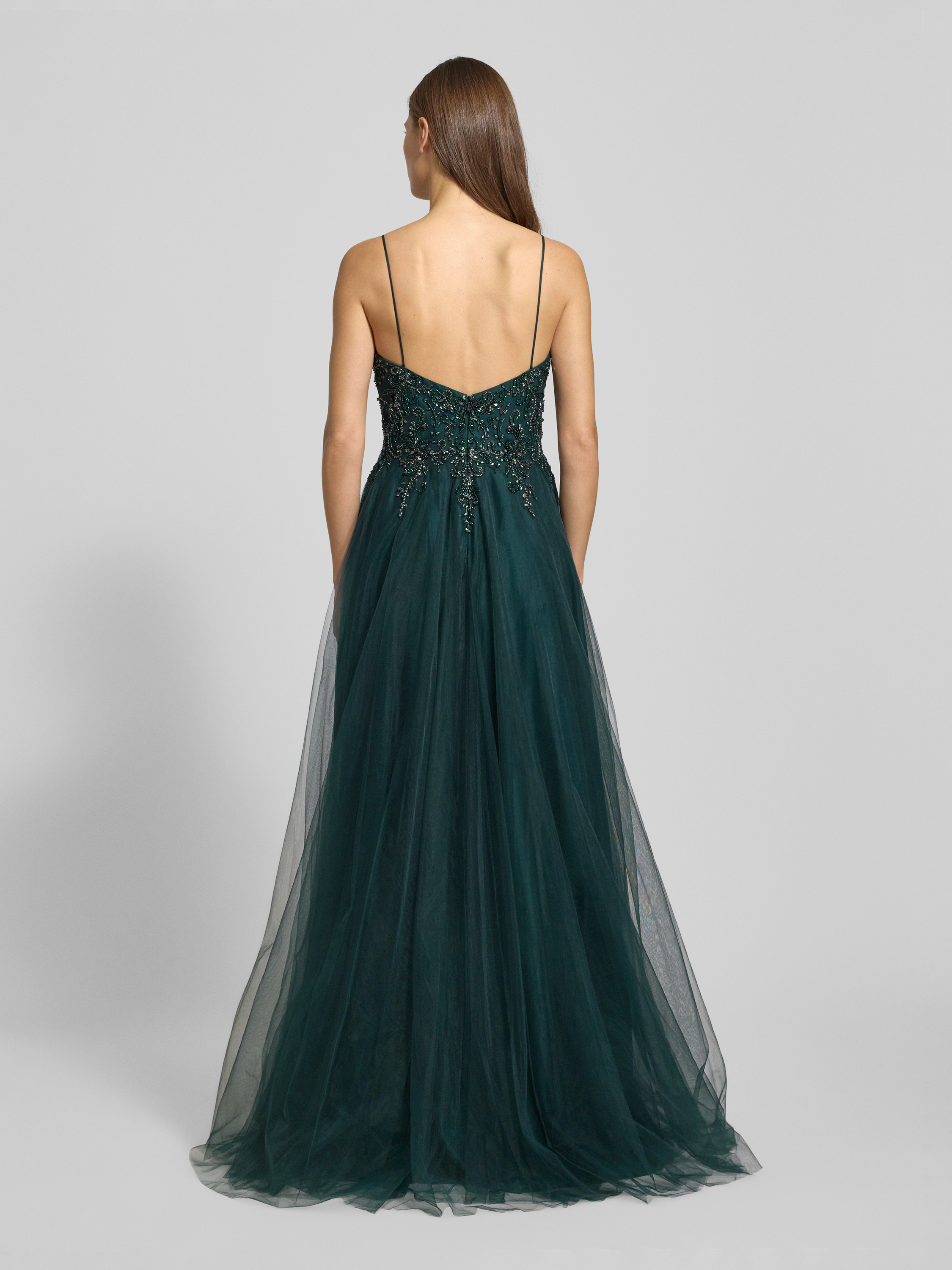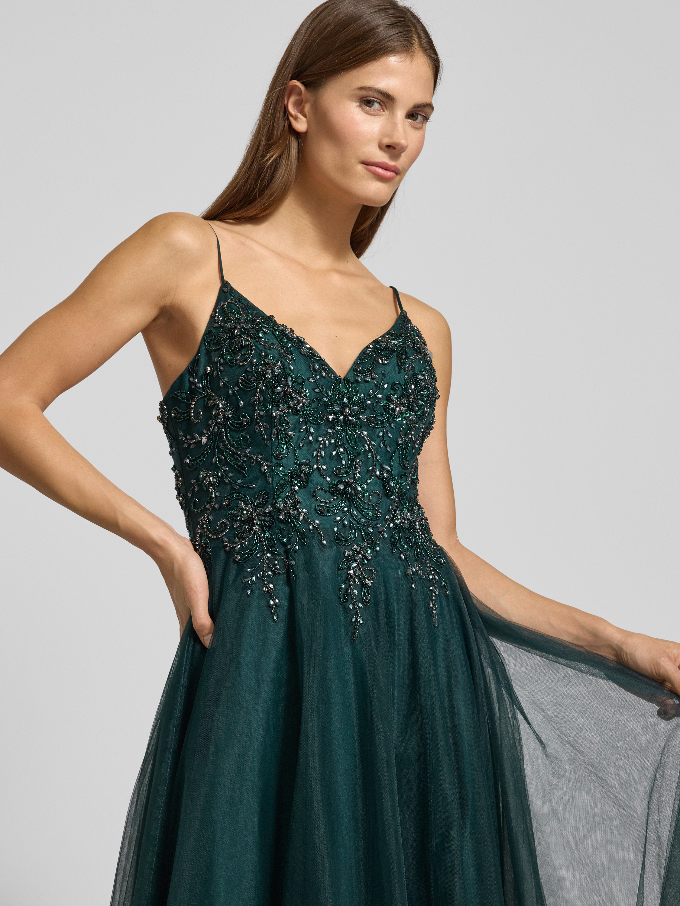 Sukienka wieczorowa z dekoltem w kształcie serca - ciemnozielony