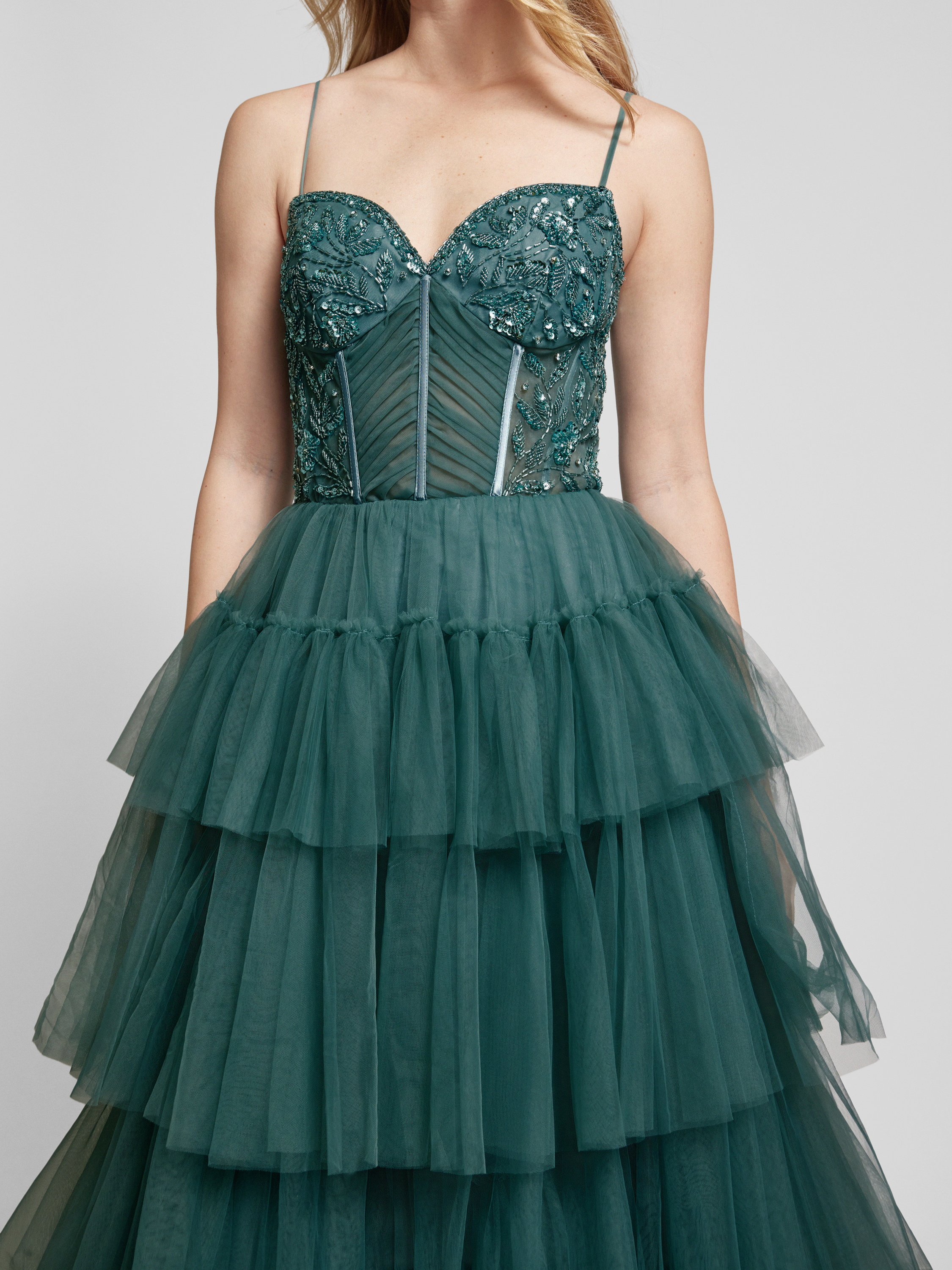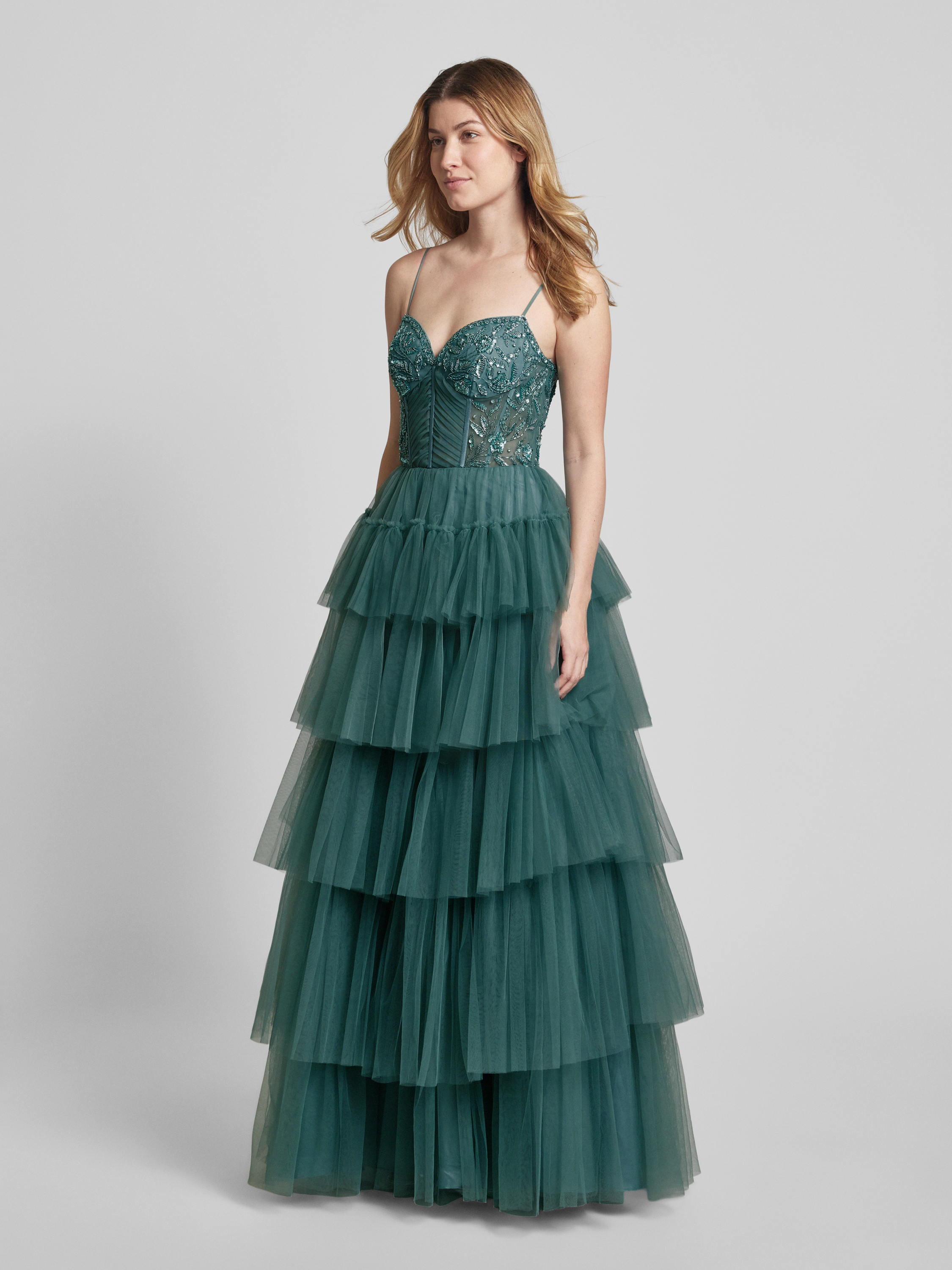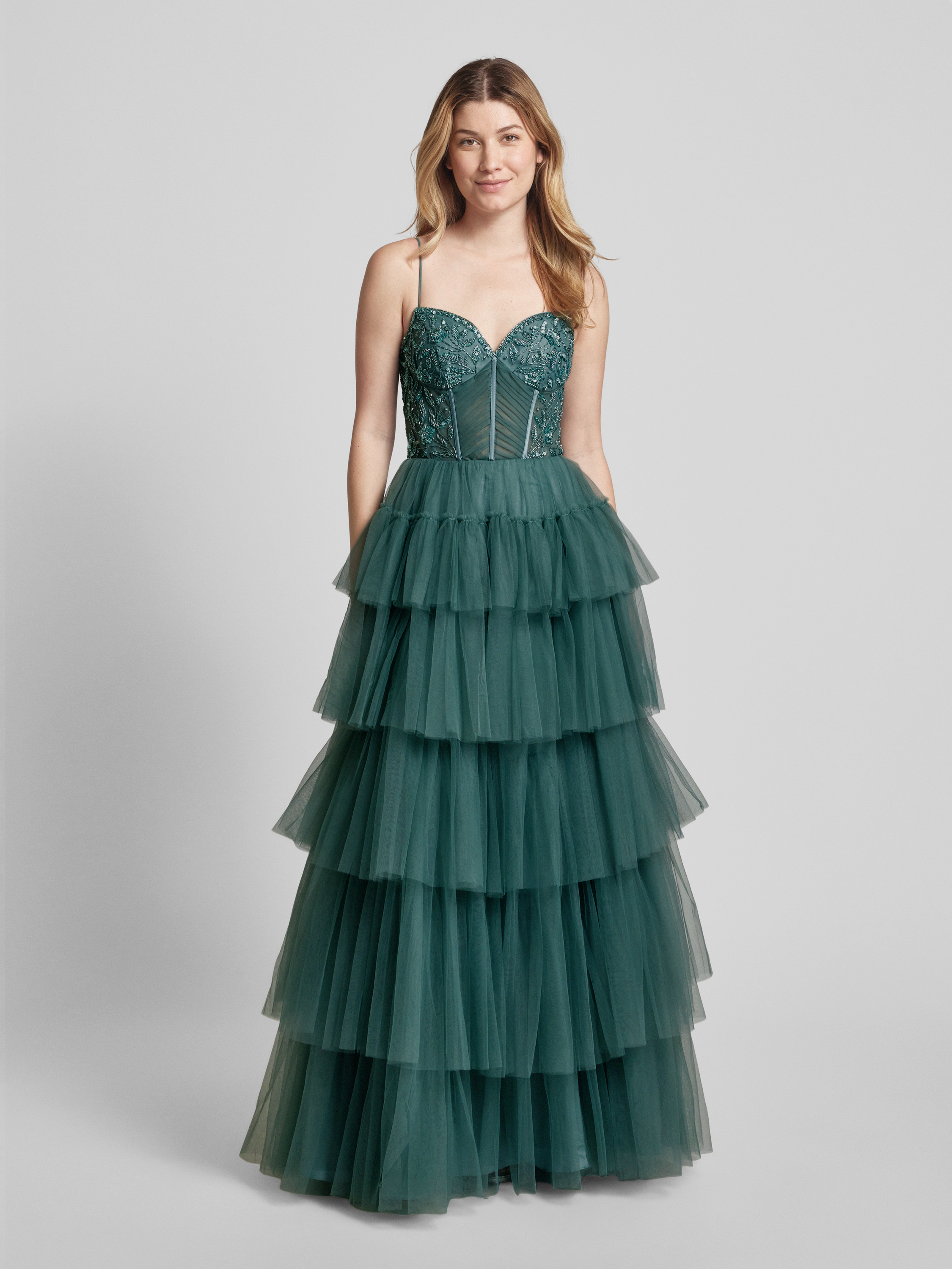 Sukienka wieczorowa z dekoltem w kształcie serca - zielony