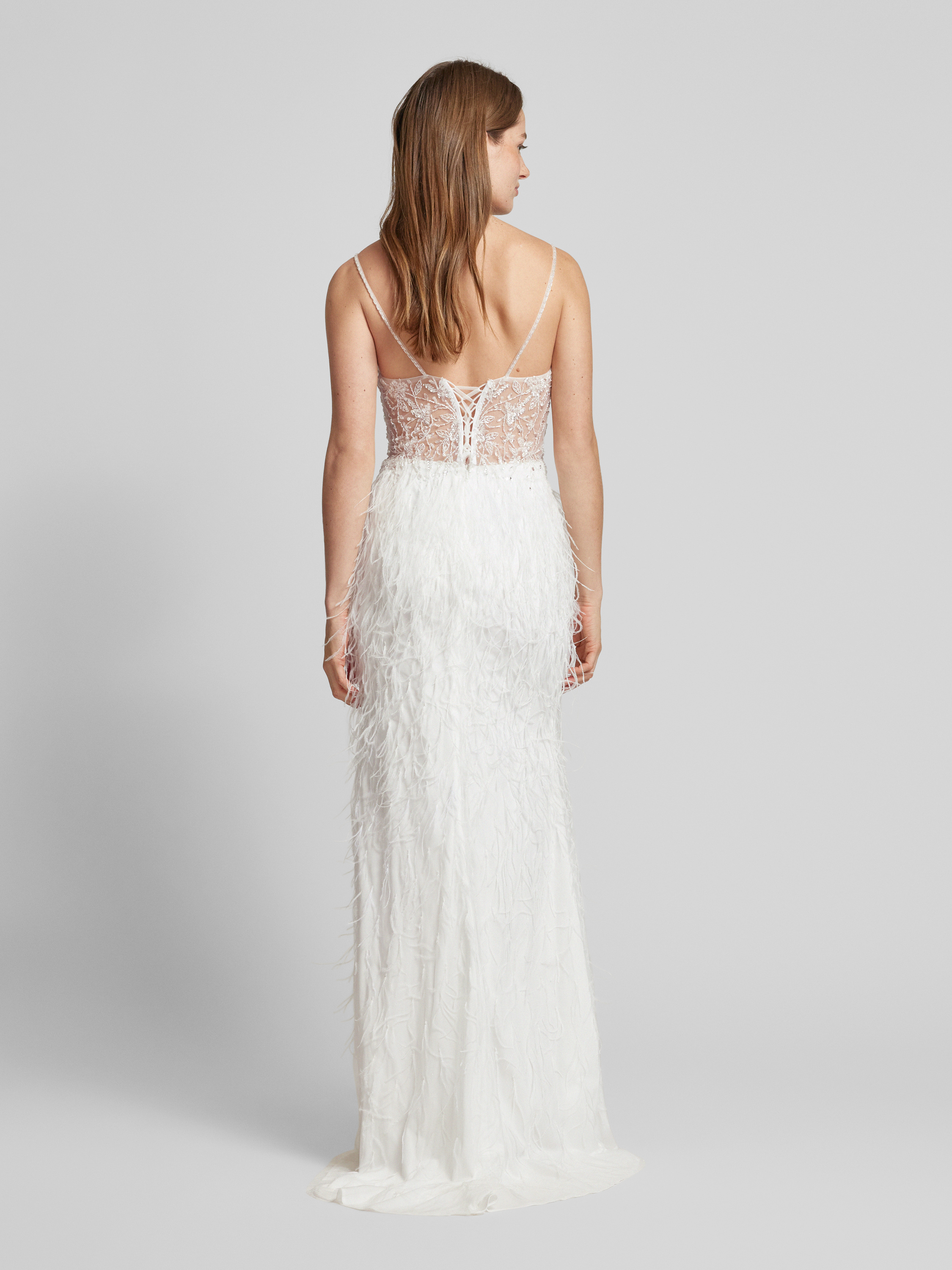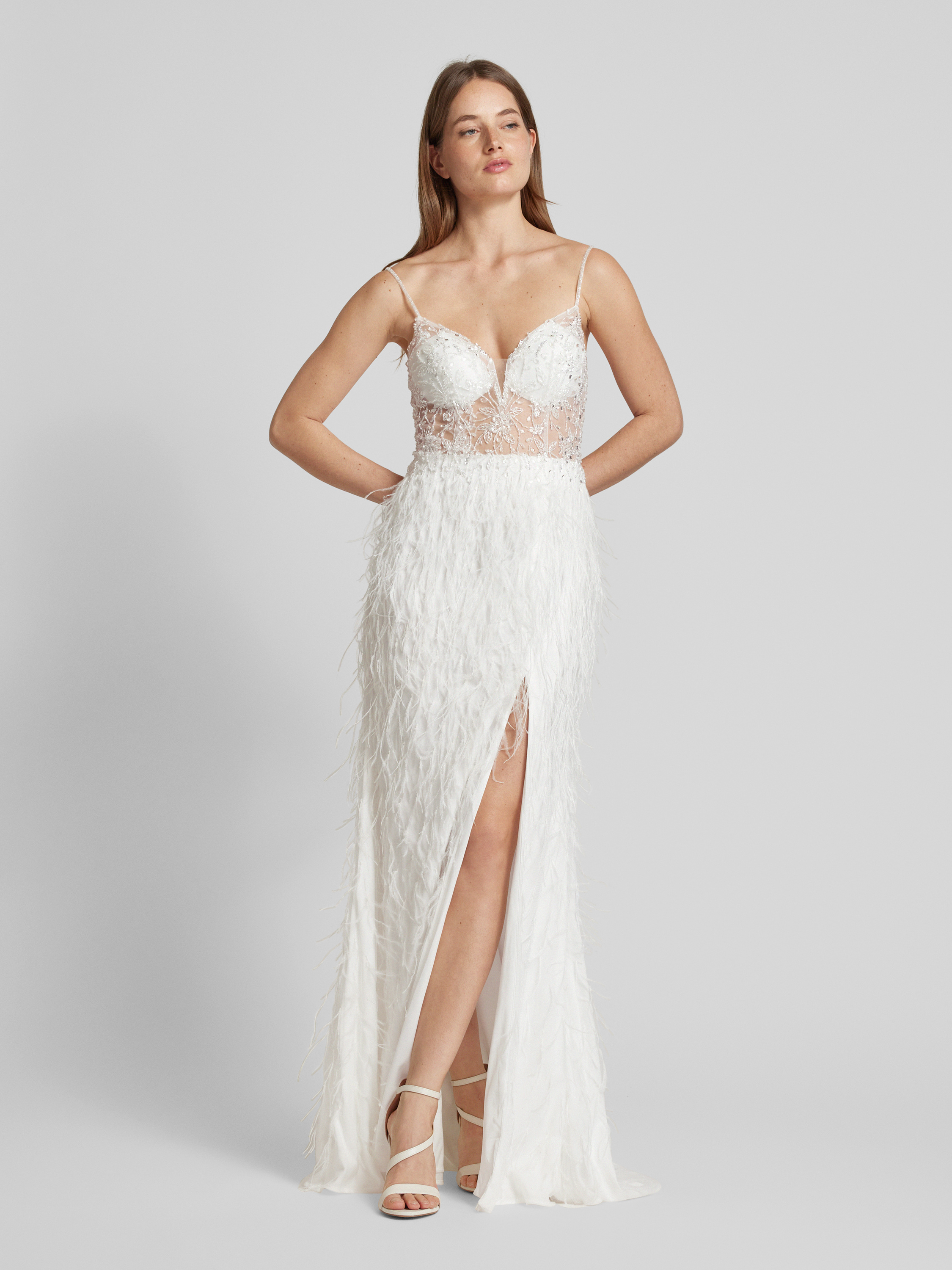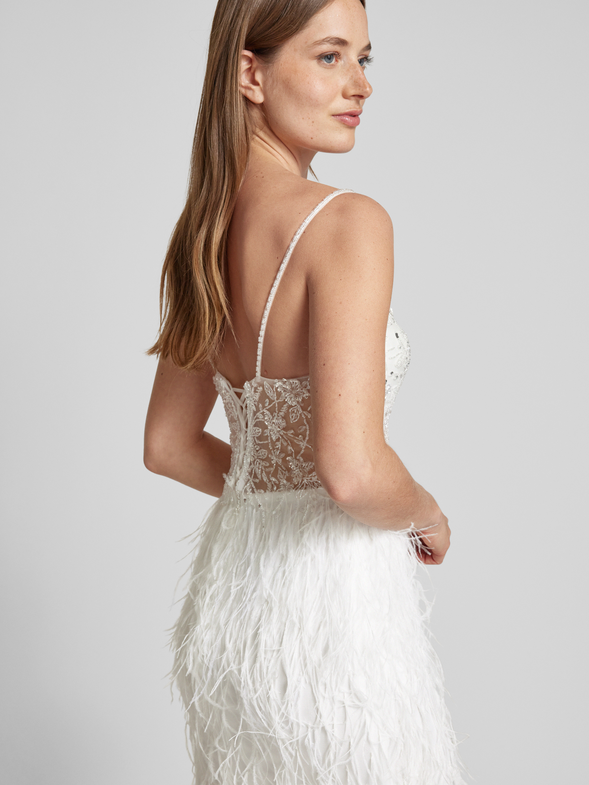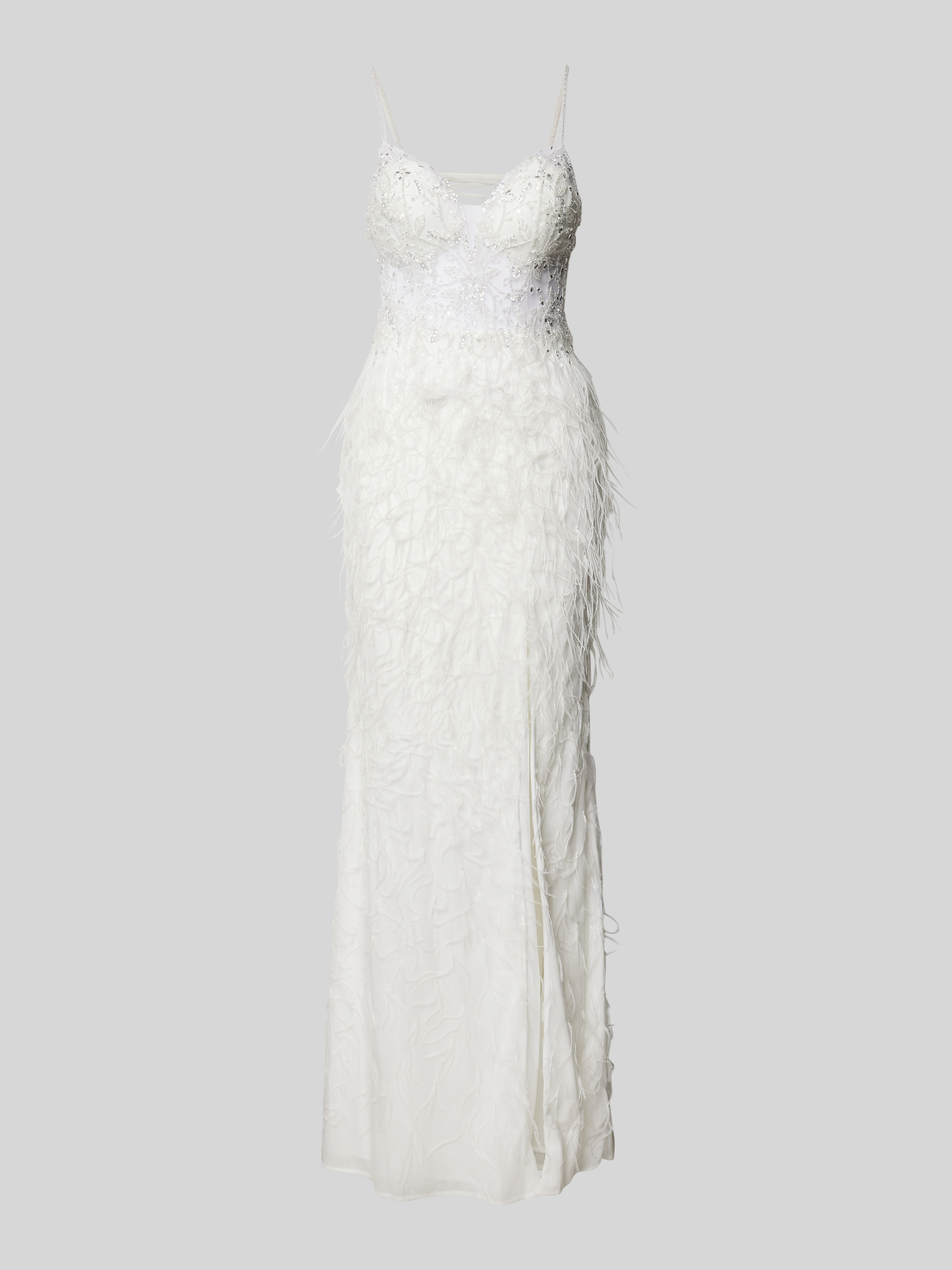 Sukienka wieczorowa z frędzlami - złamany biały