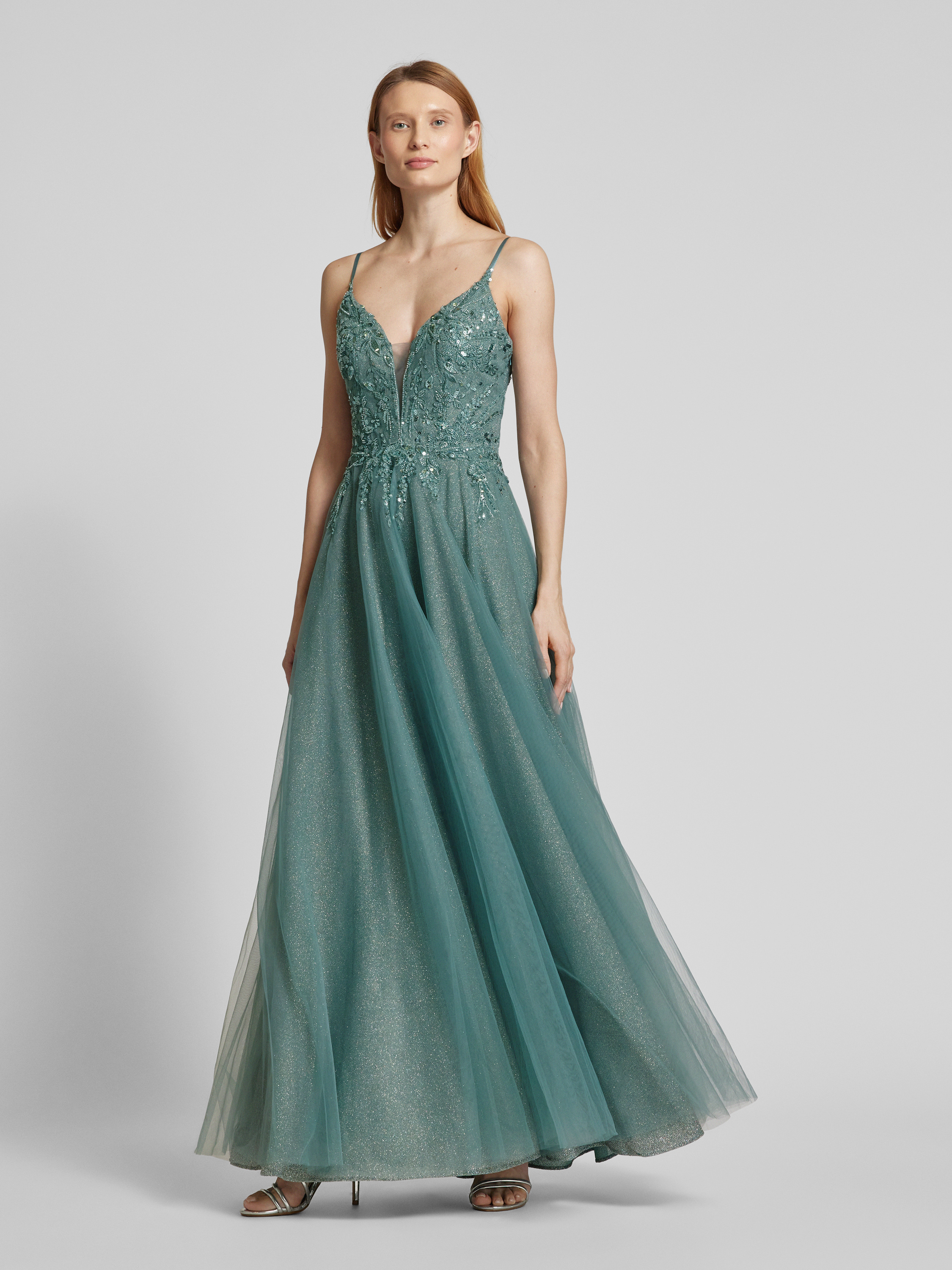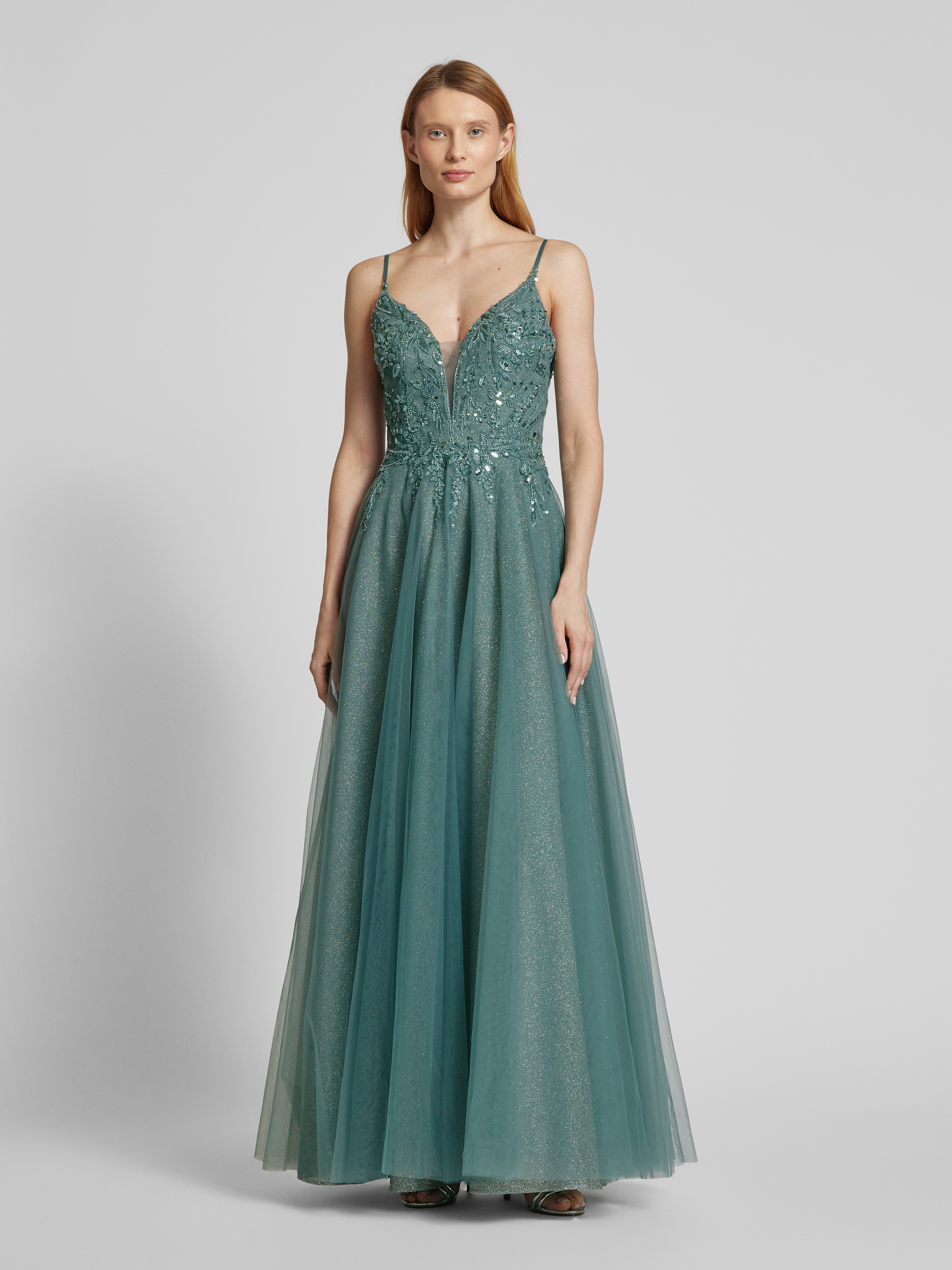 Sukienka wieczorowa z głębokim dekoltem w serek - zielony