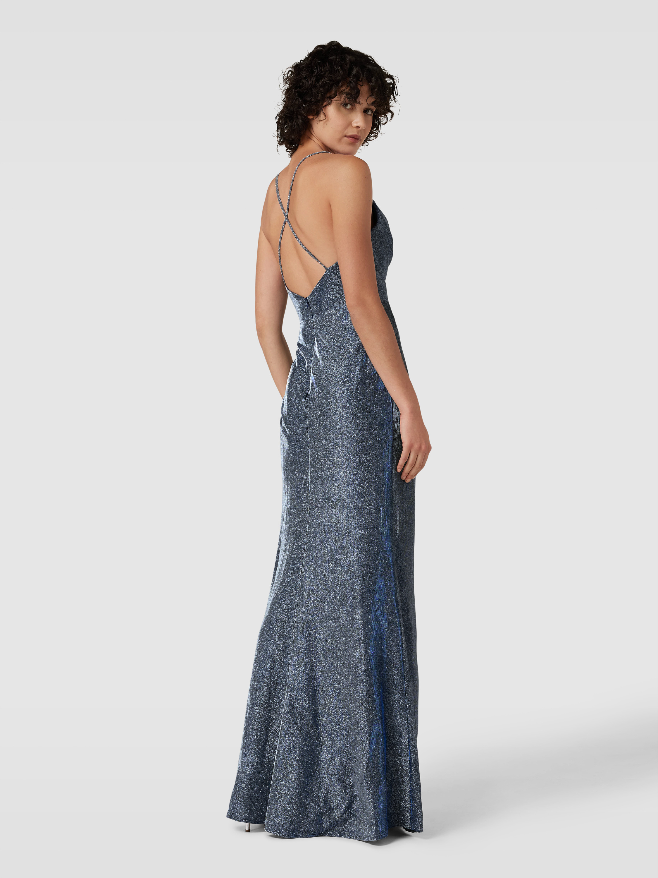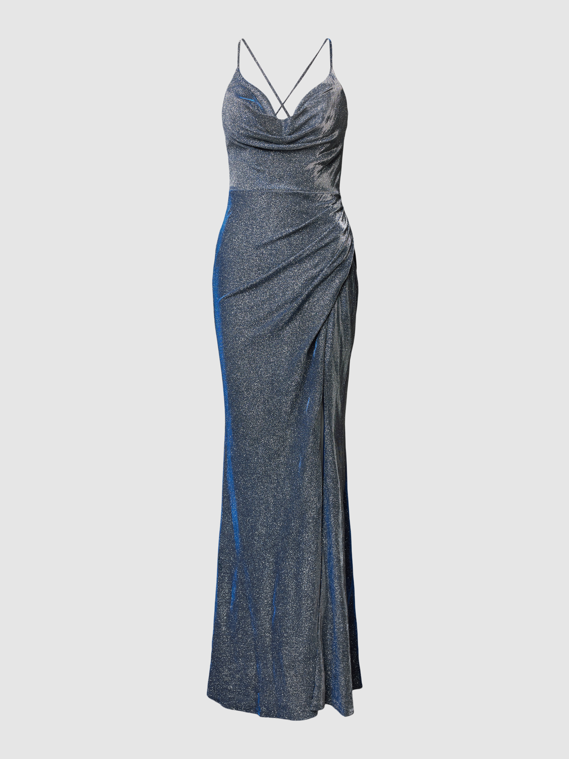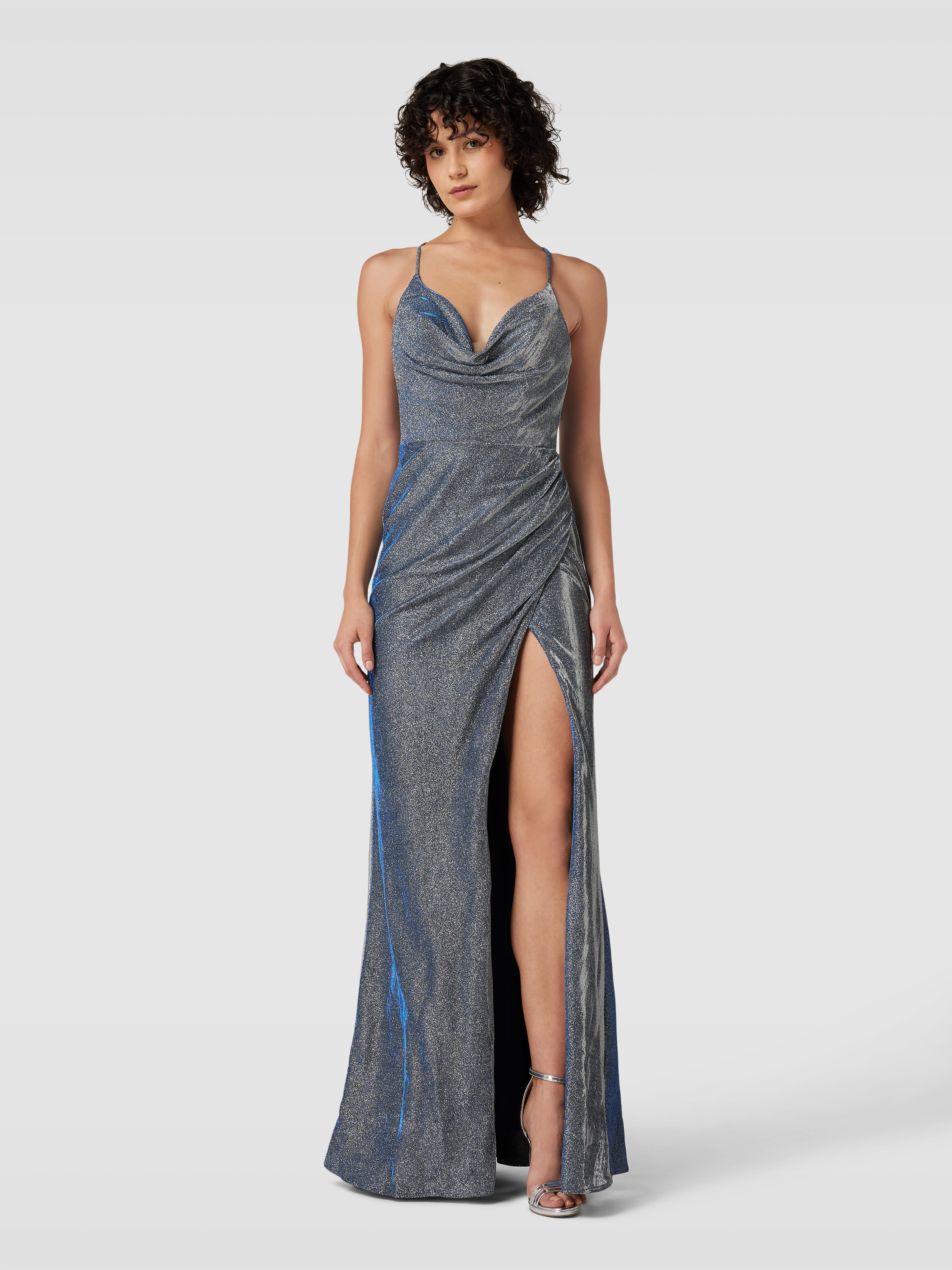 Sukienka wieczorowa z głębokim rozcięciem - granatowy