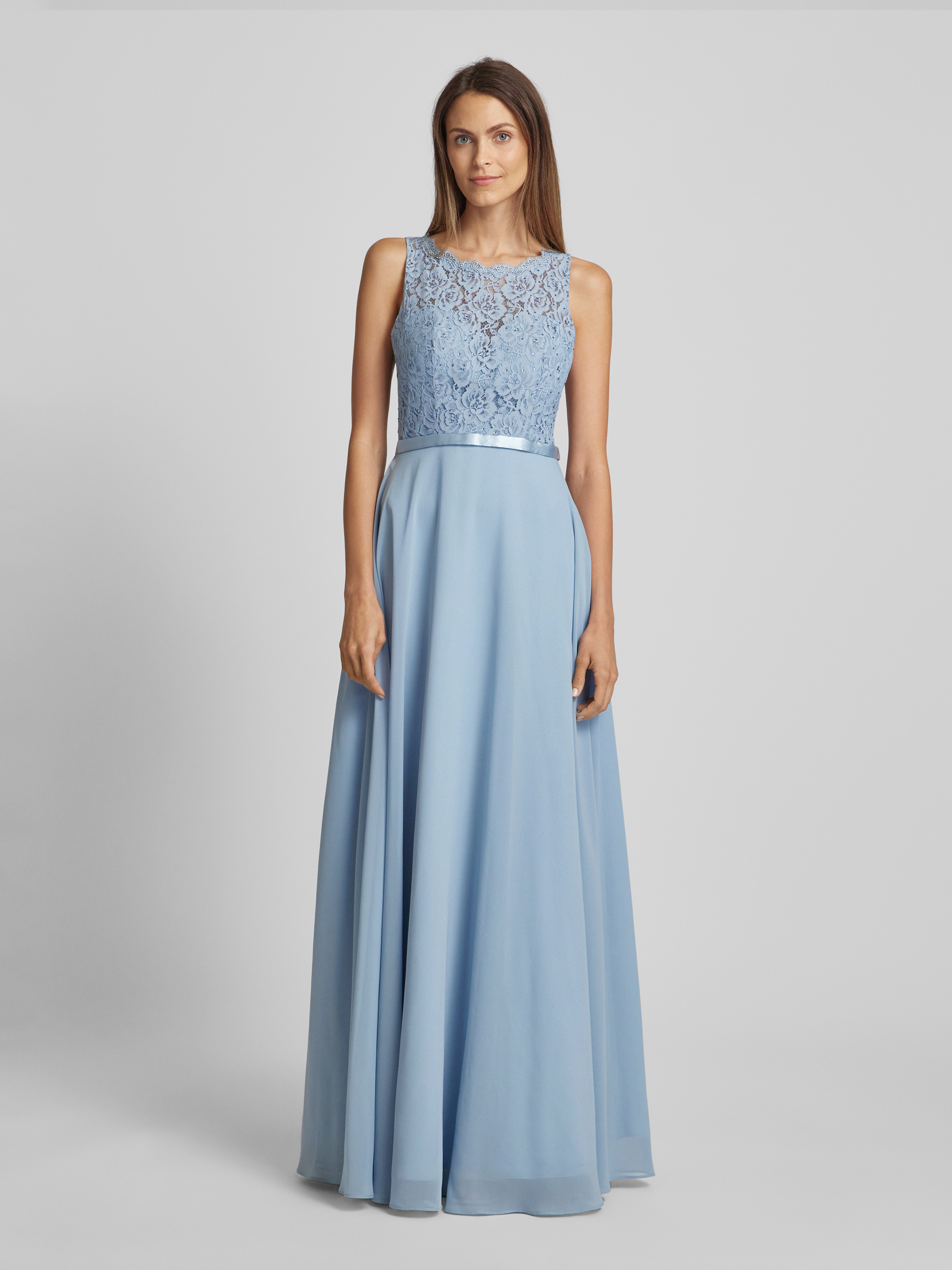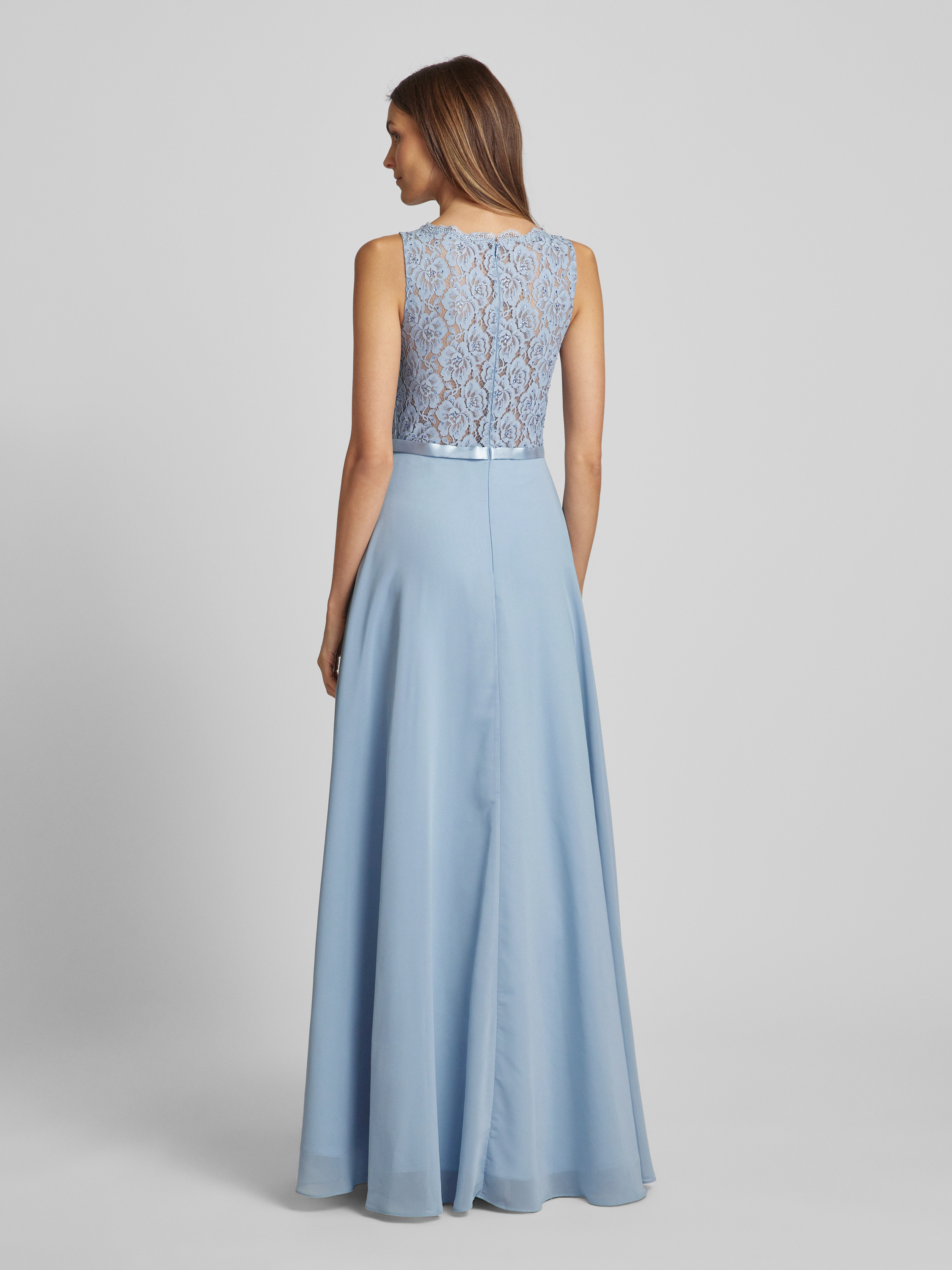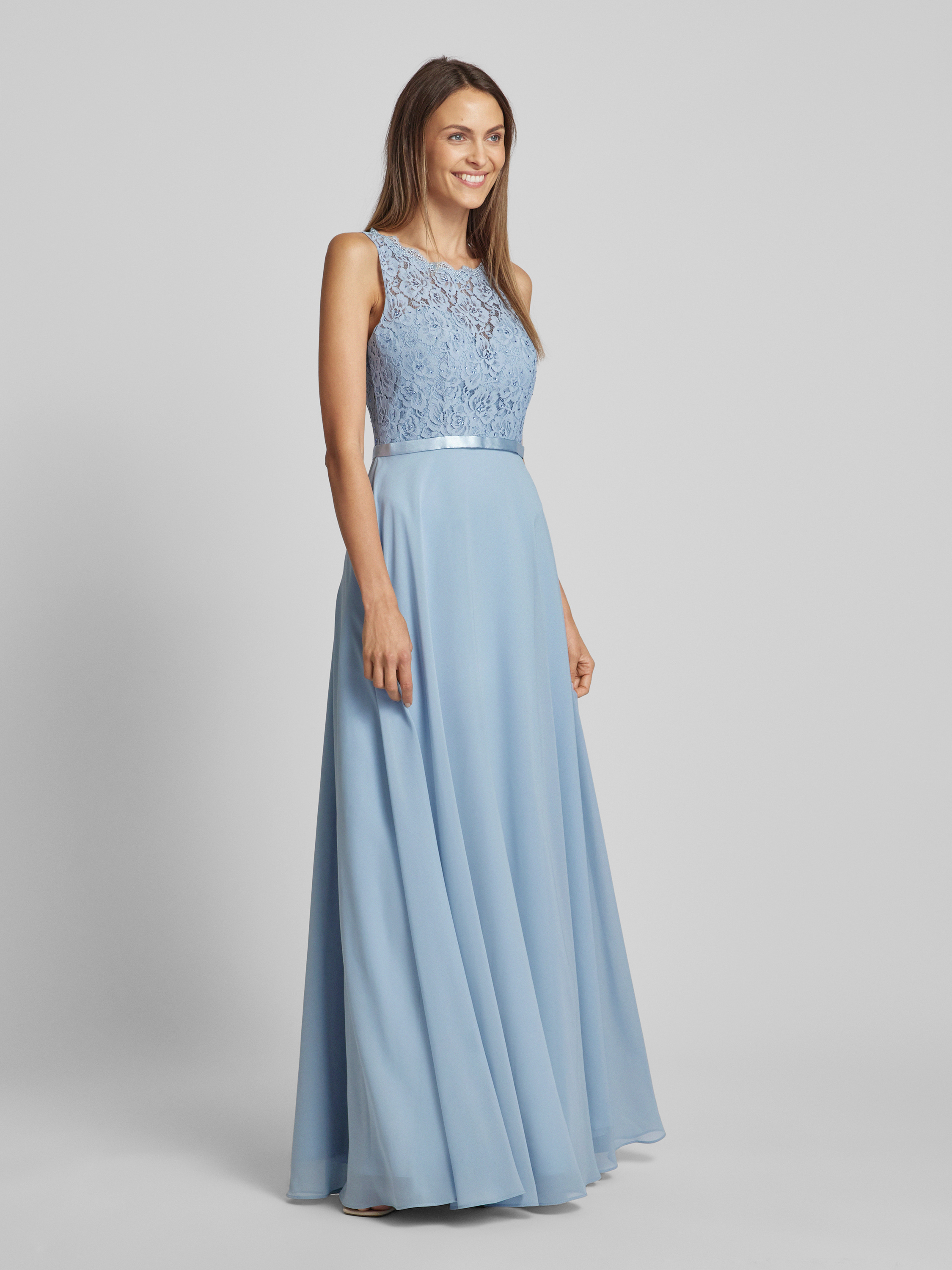 Sukienka wieczorowa z koronkowym obszyciem - szaroniebieski