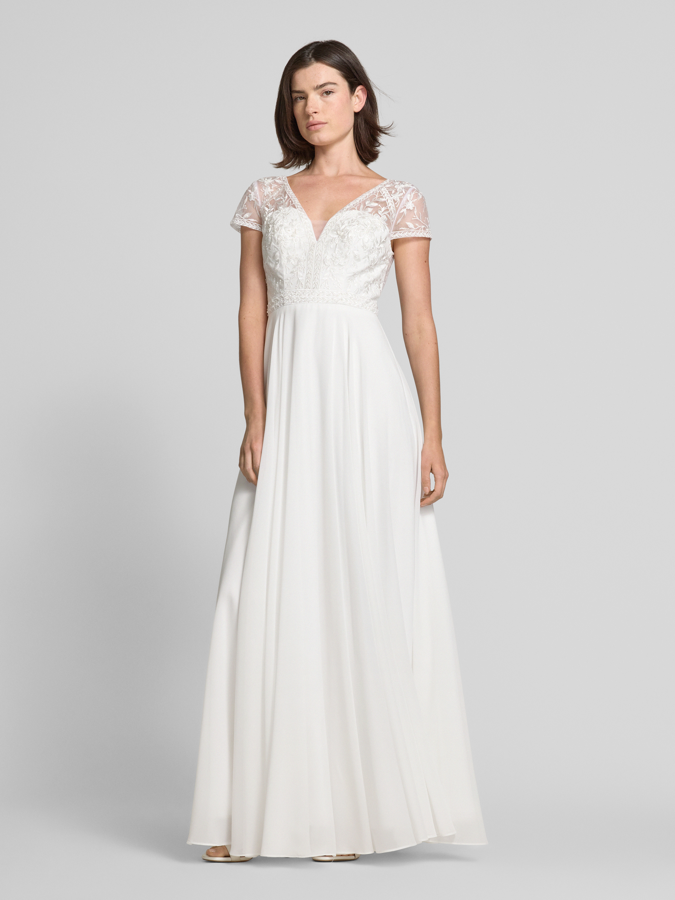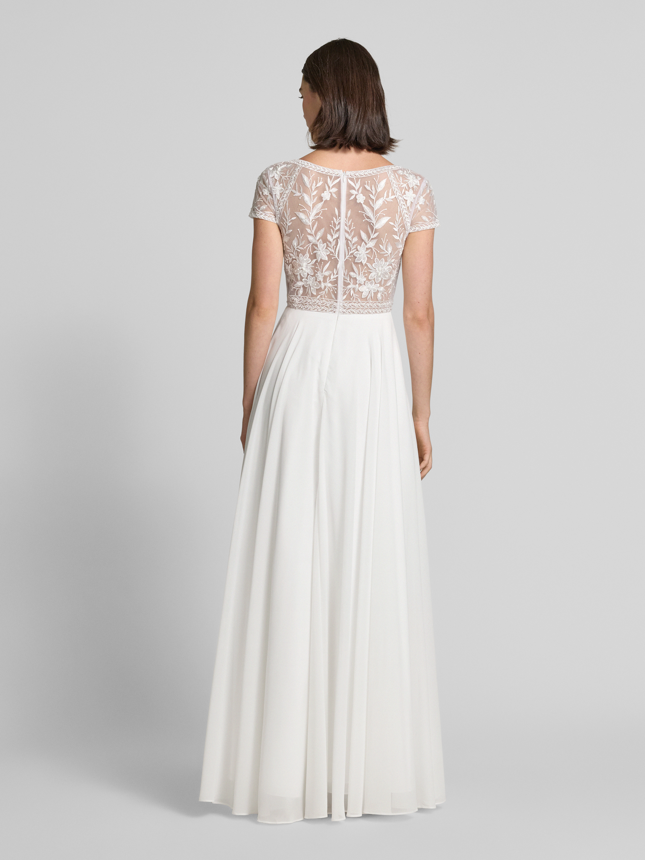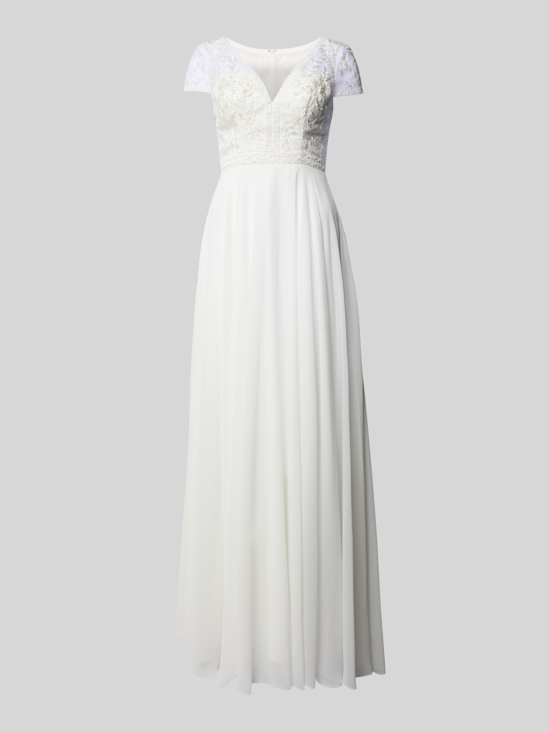 Sukienka wieczorowa z koronkowym obszyciem - złamany biały