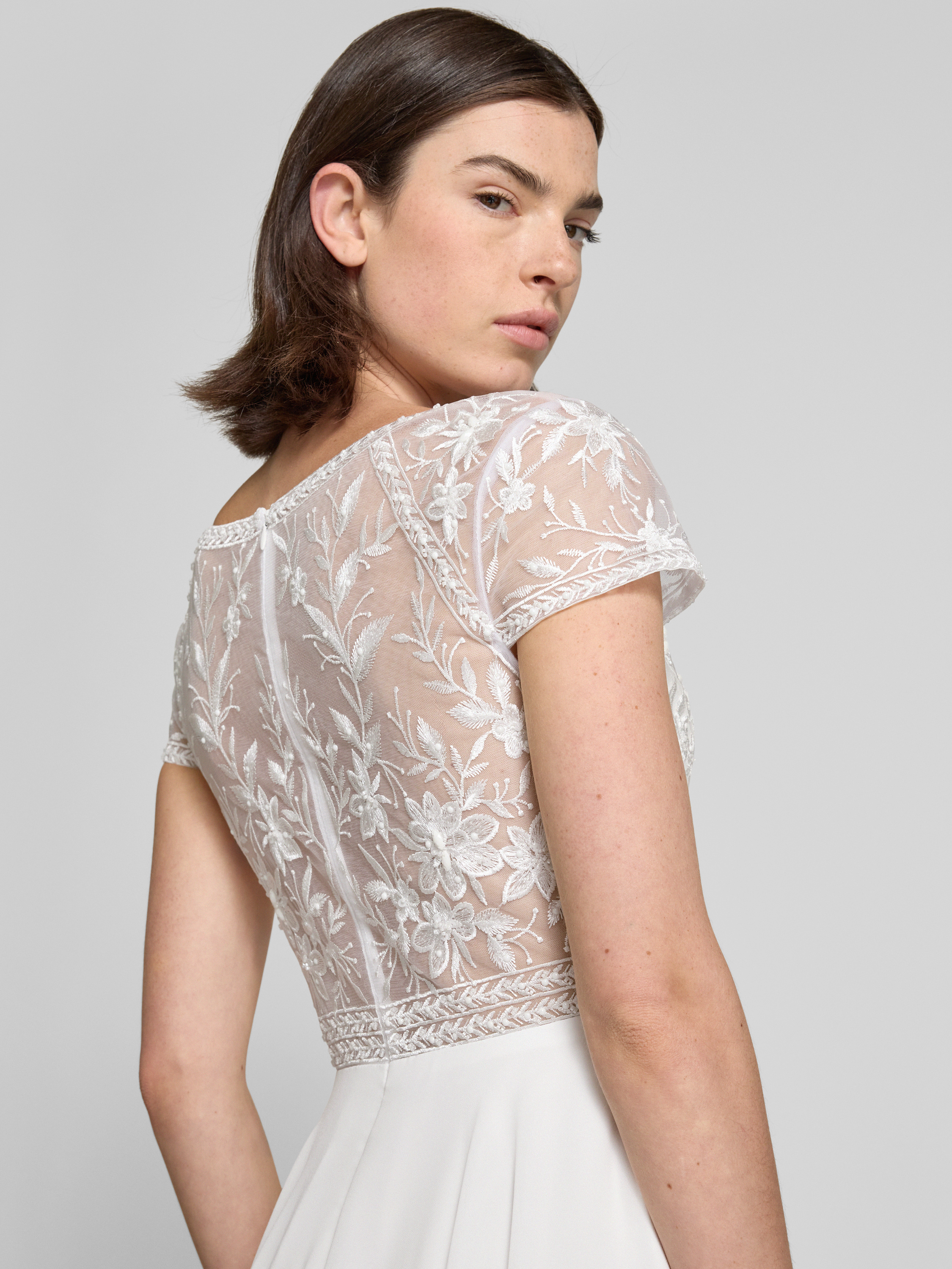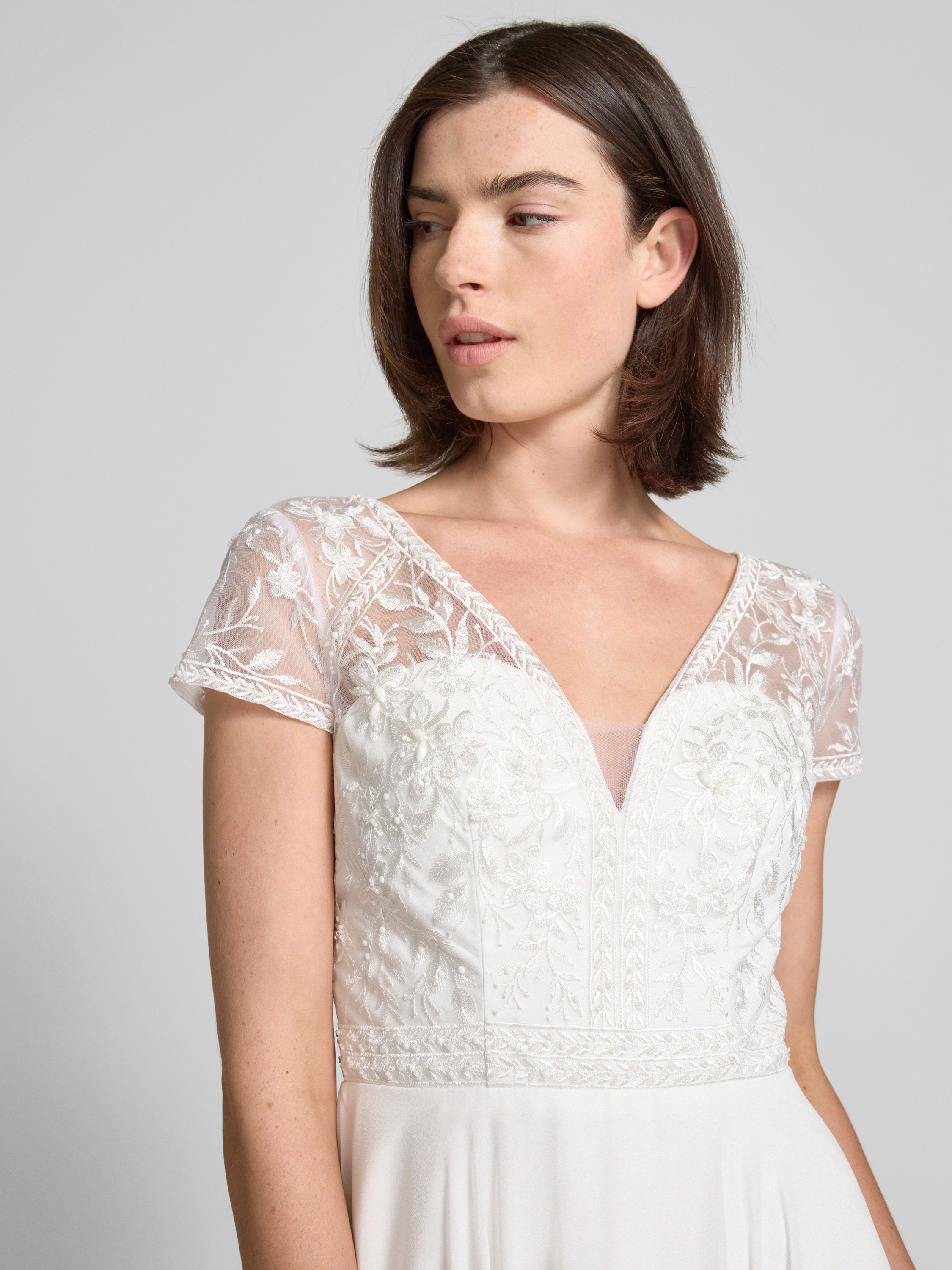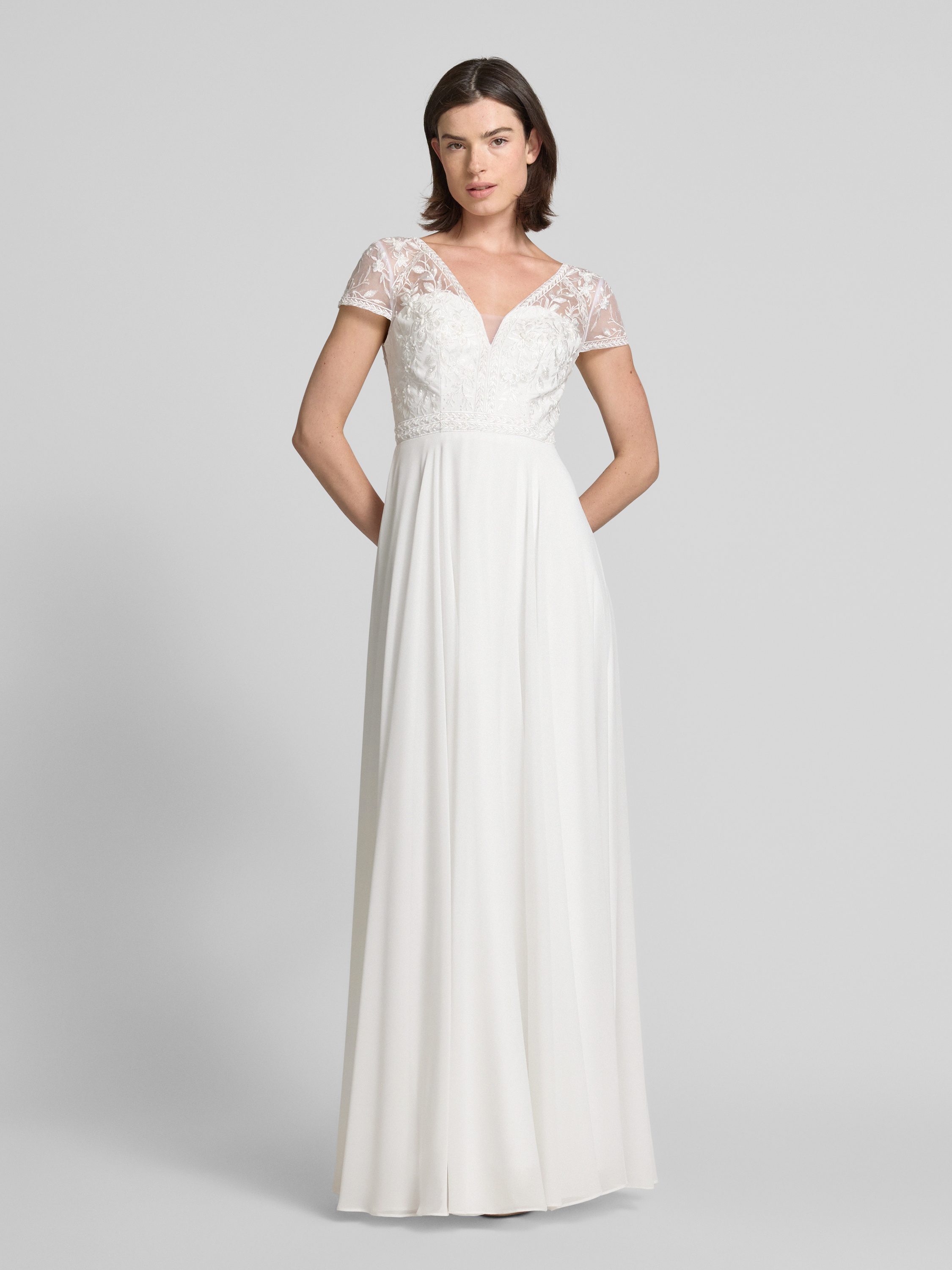 Sukienka wieczorowa z koronkowym obszyciem - złamany biały