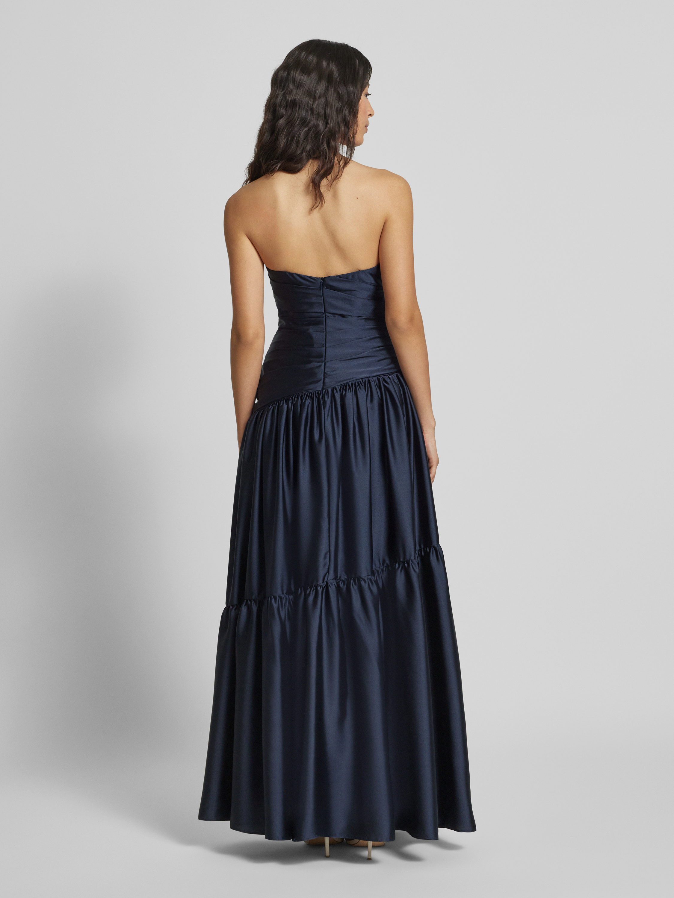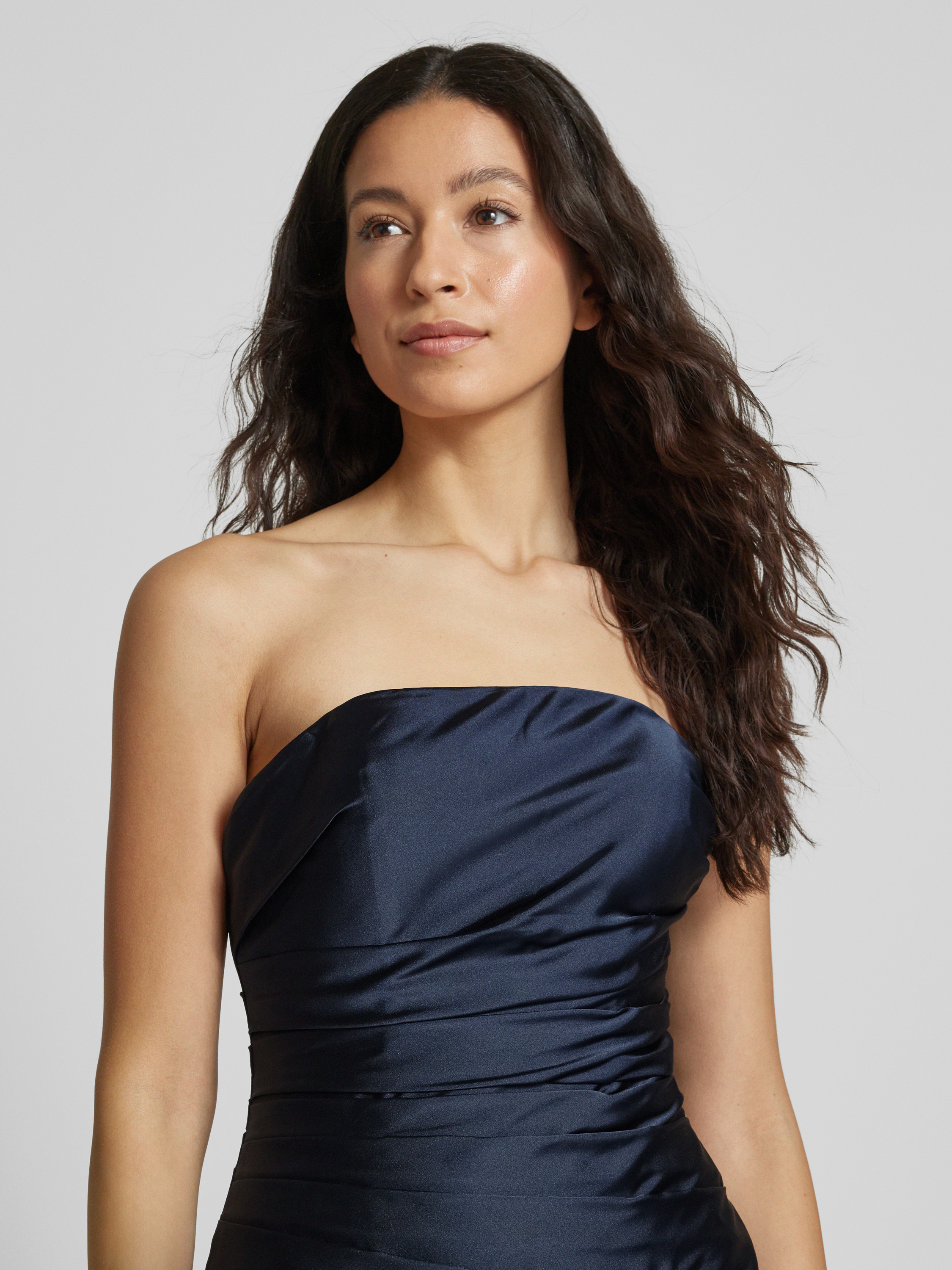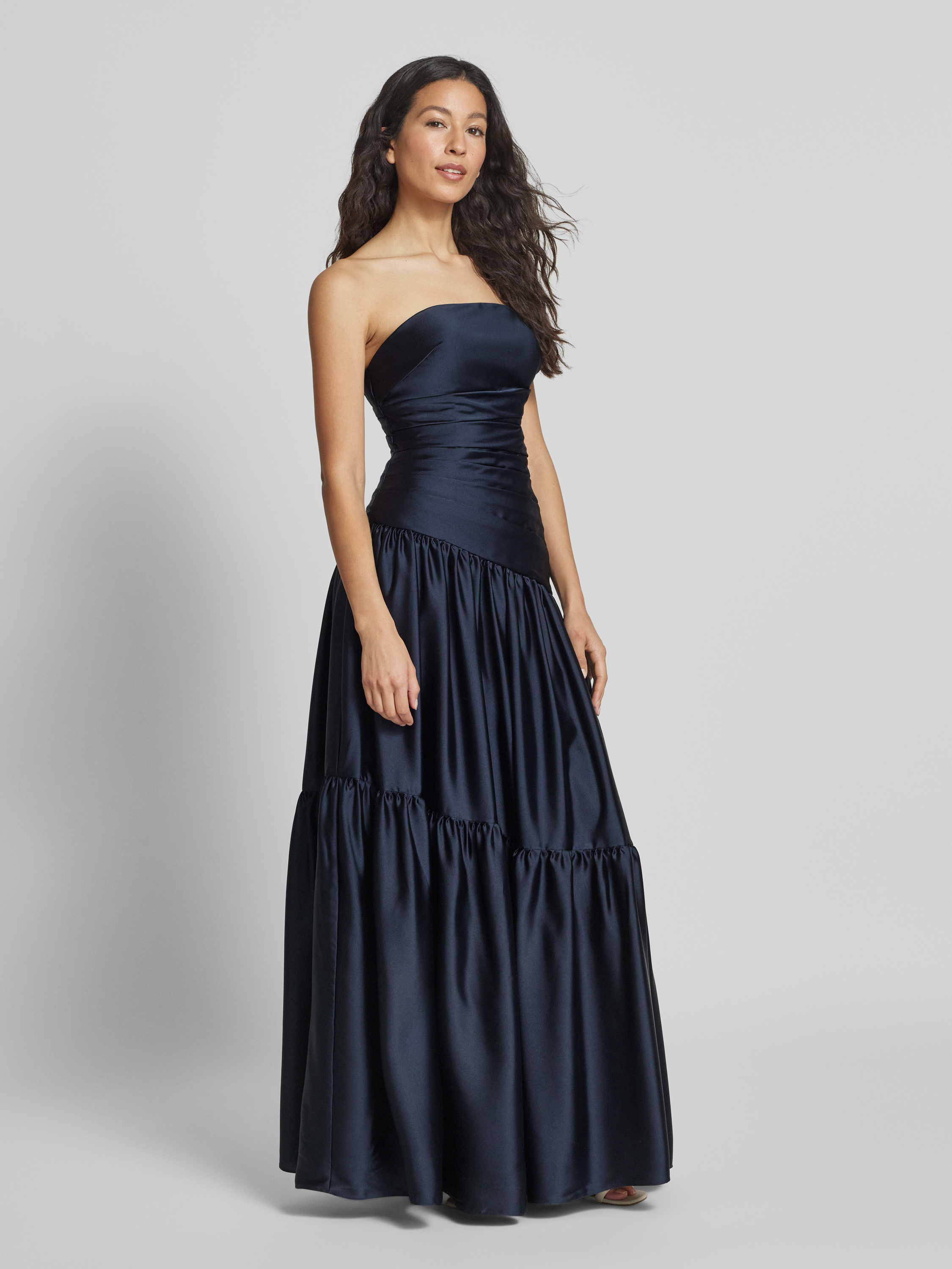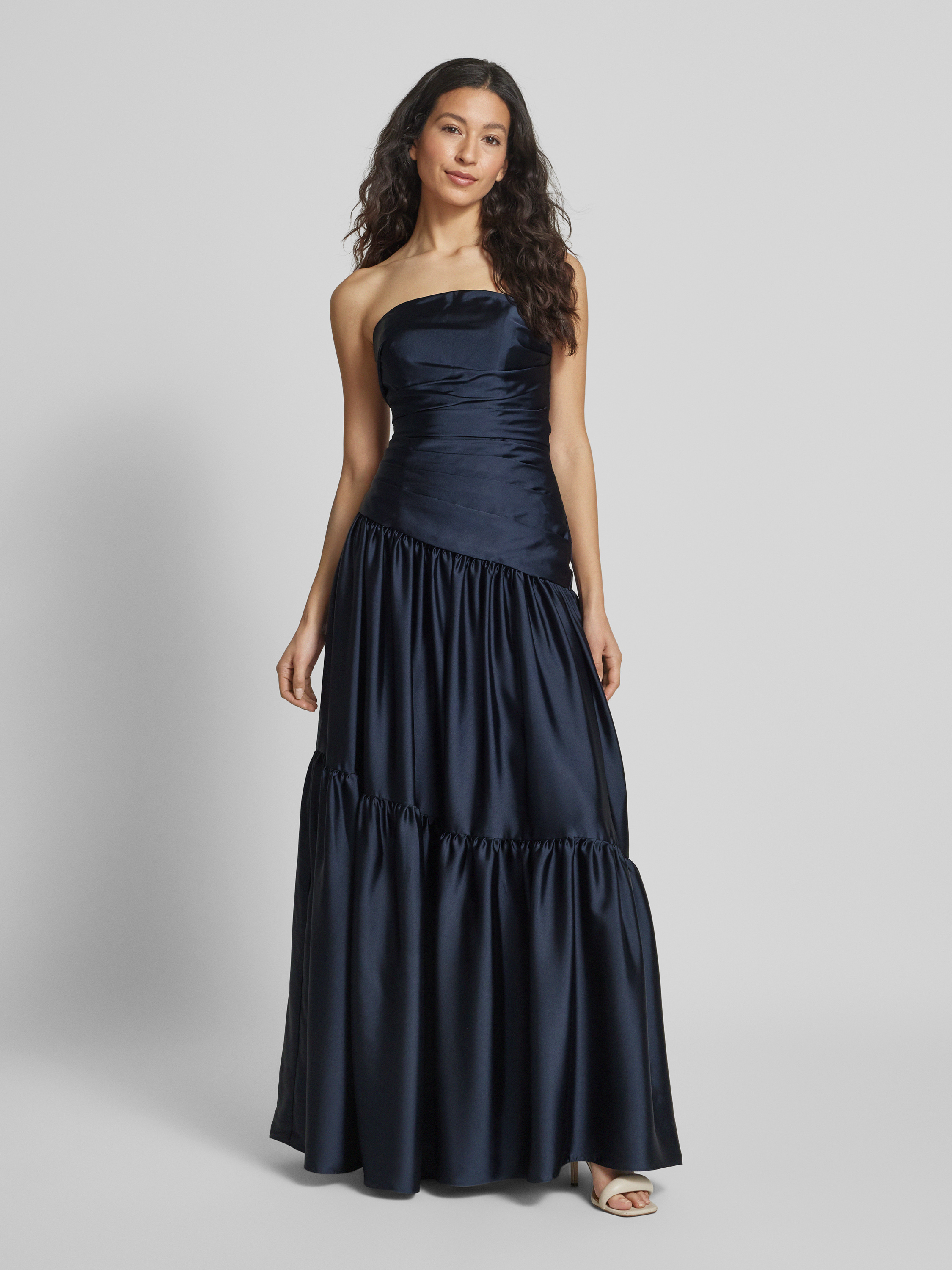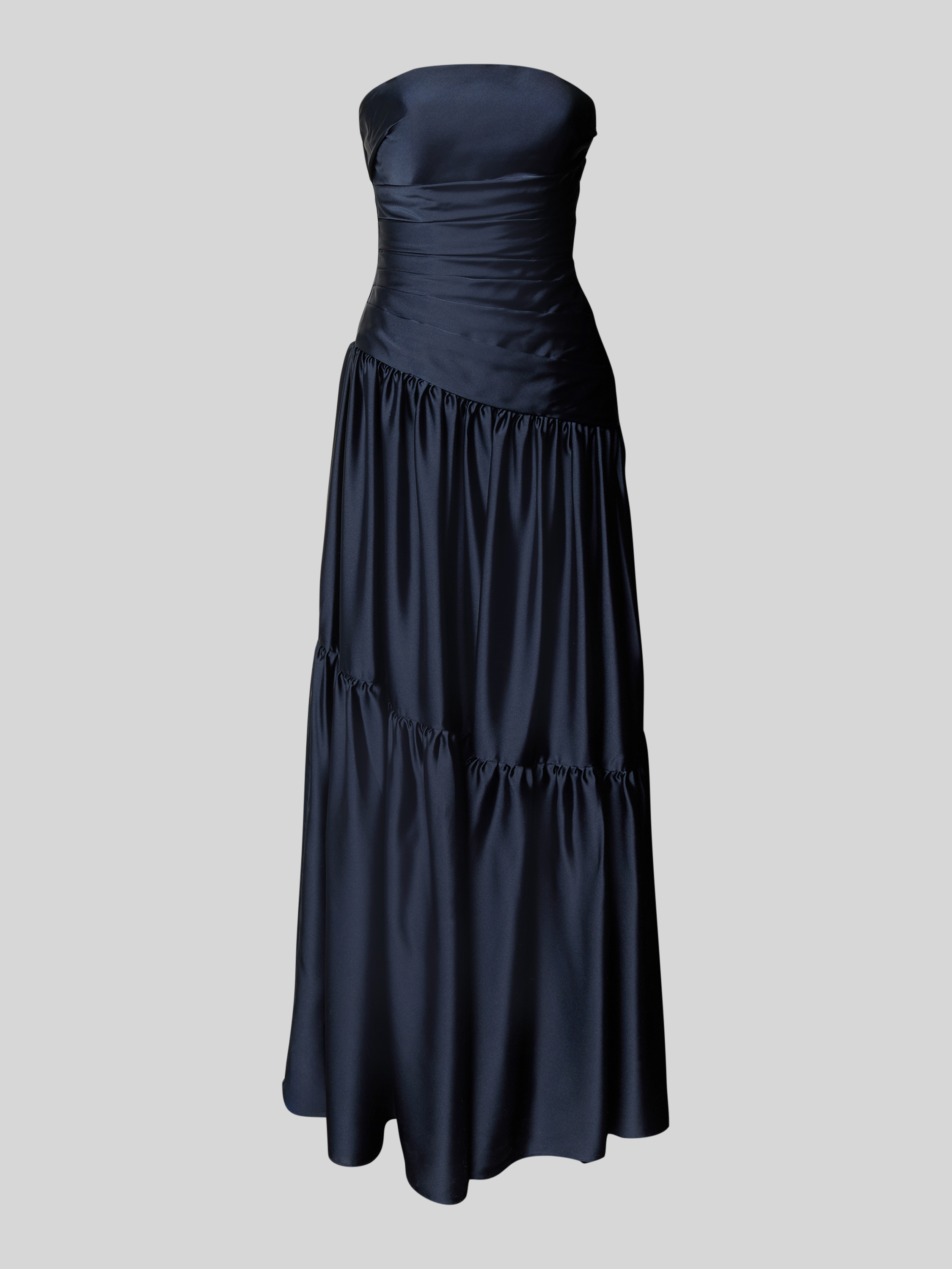 Sukienka wieczorowa z marszczeniami i dołem obszytym falbaną - ciemnoniebieski