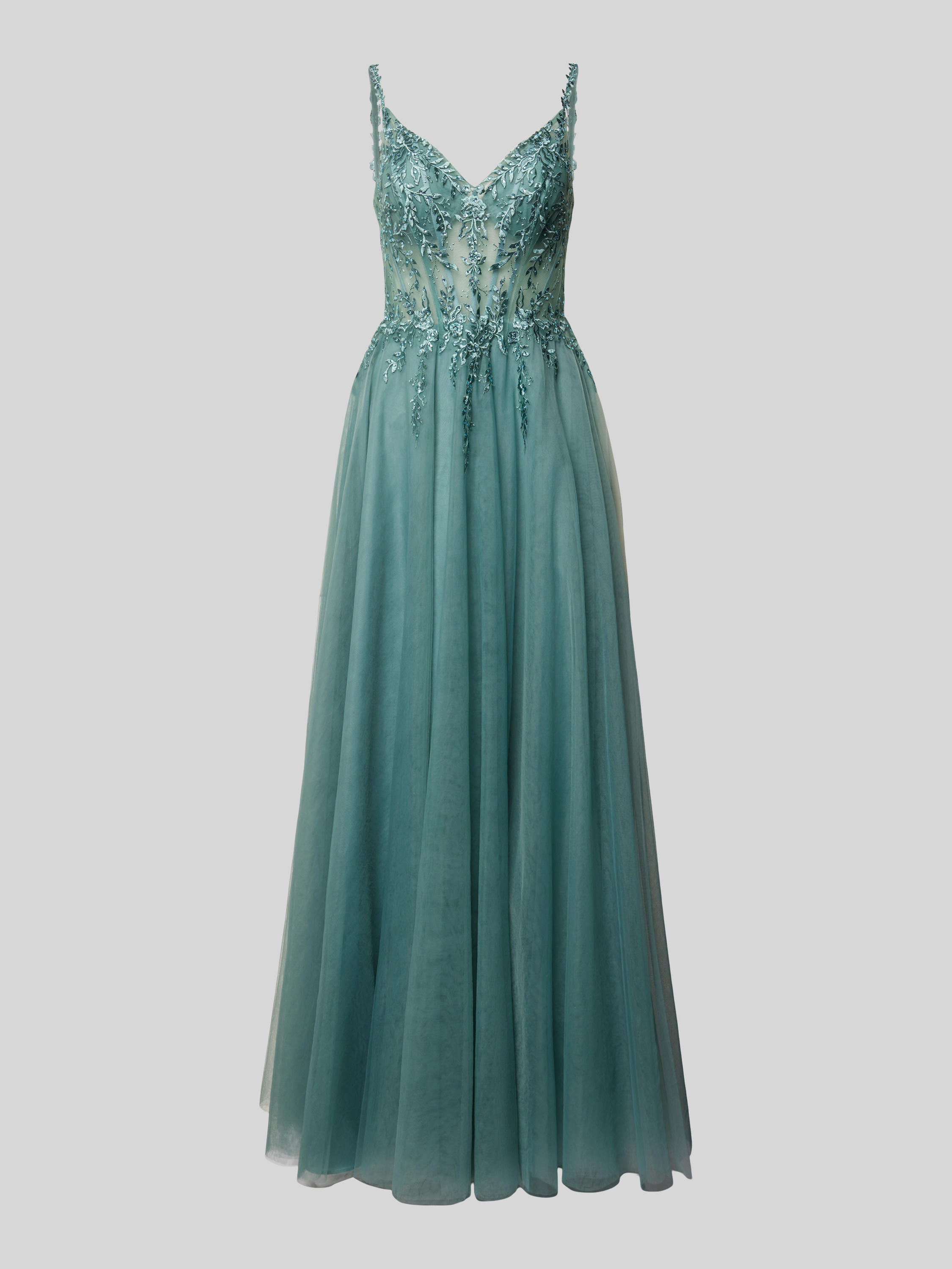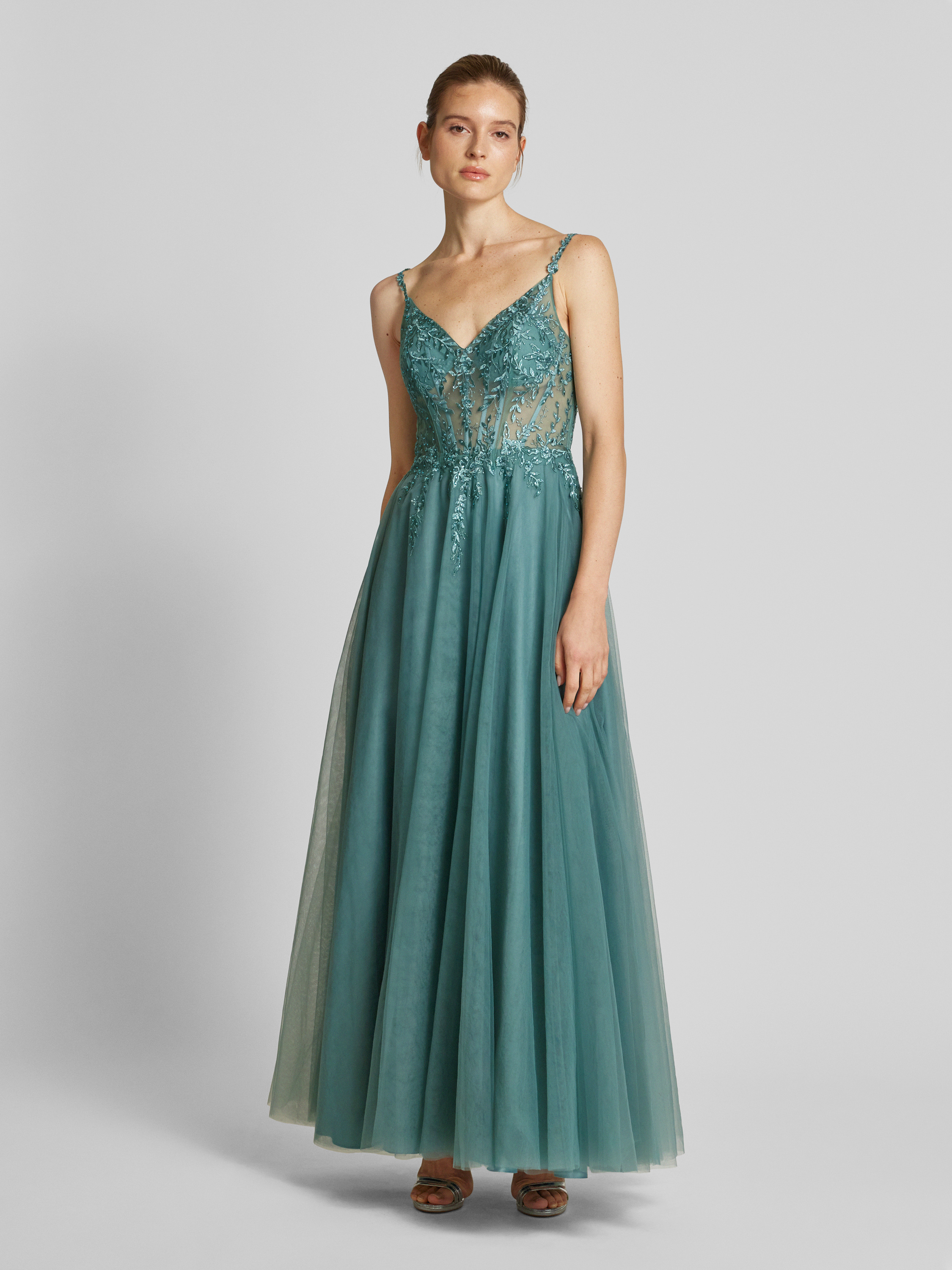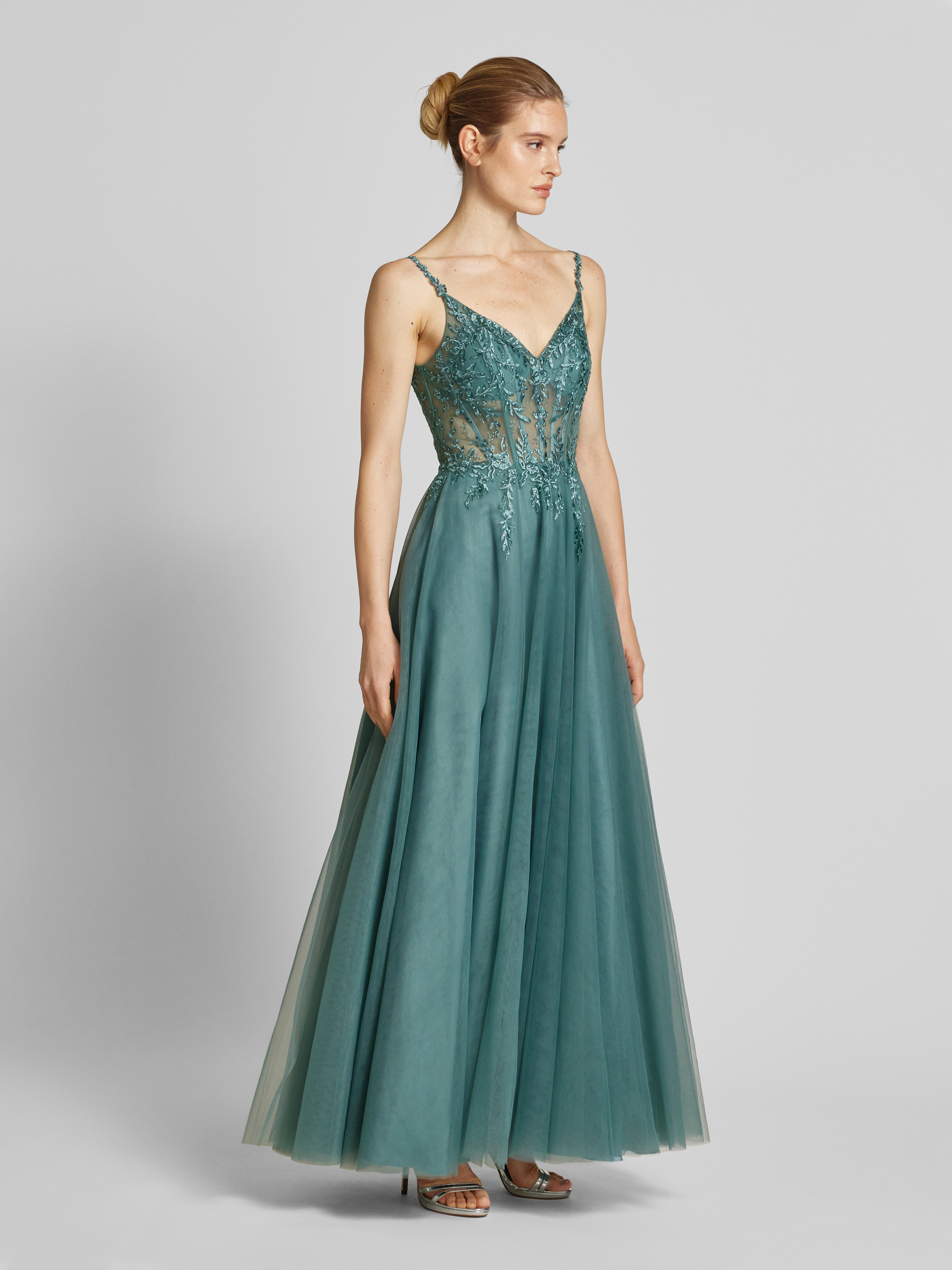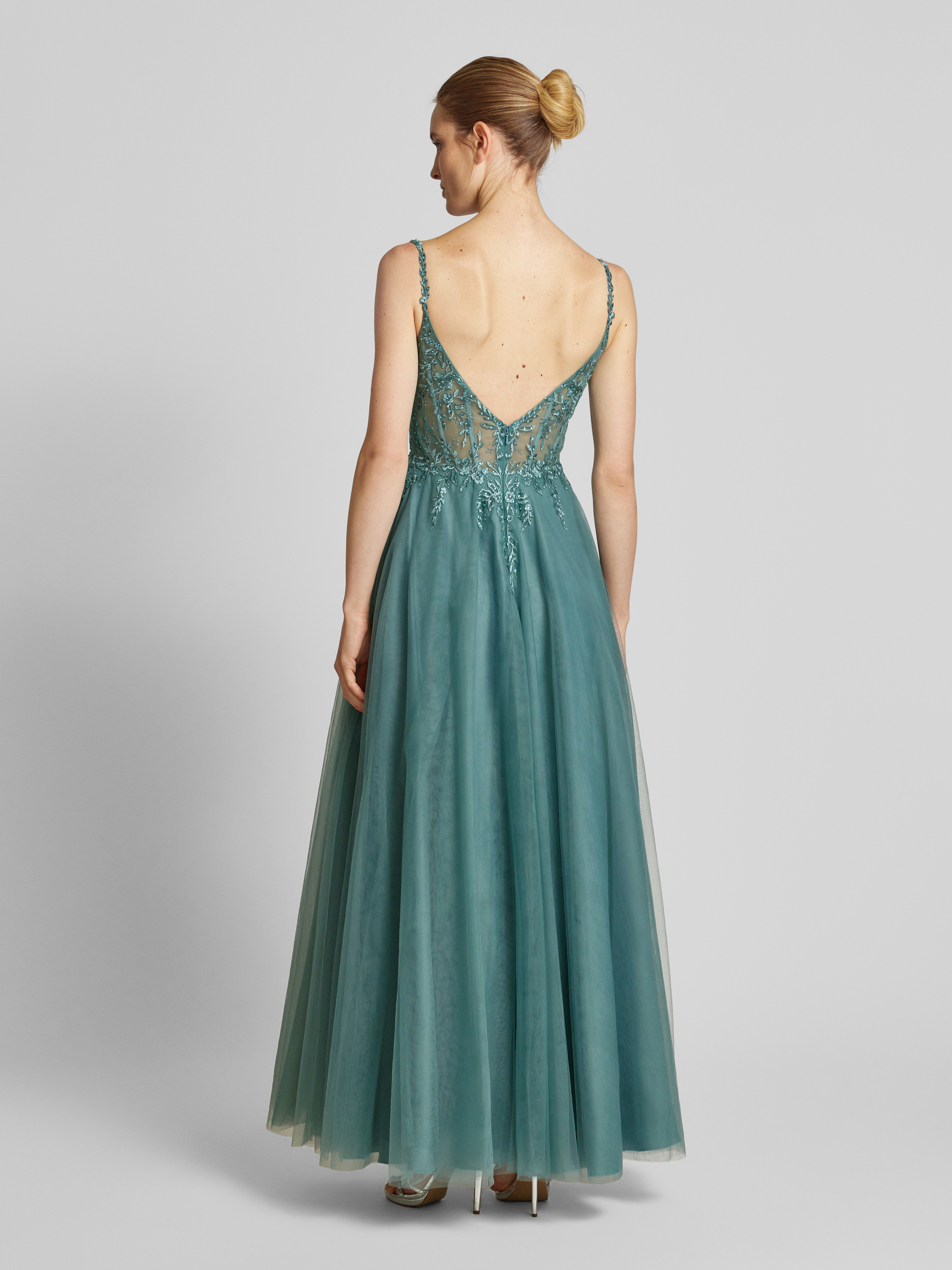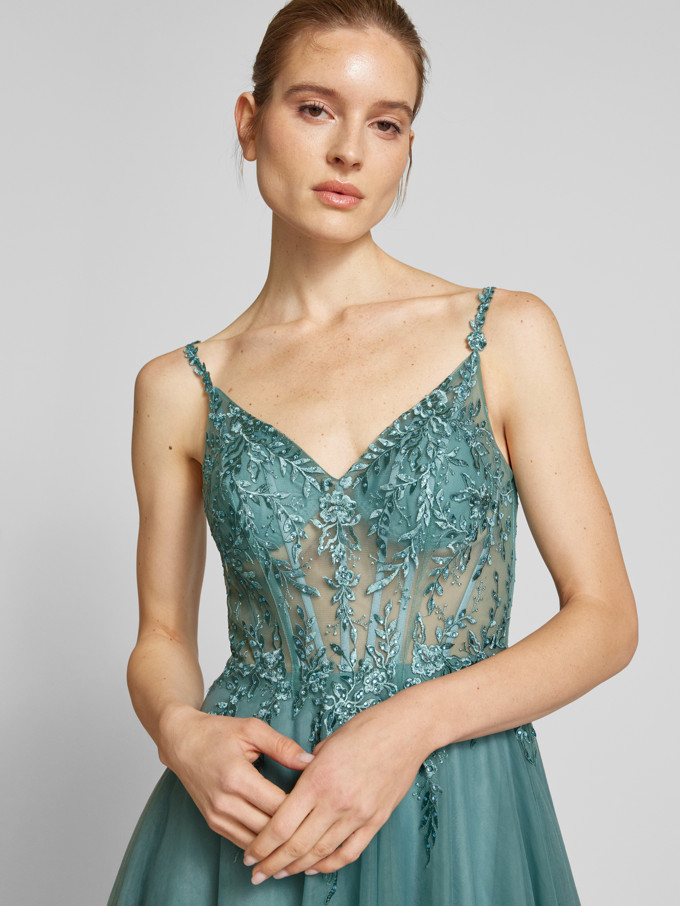 Sukienka wieczorowa z obszyciem kamieniami stras - zielony