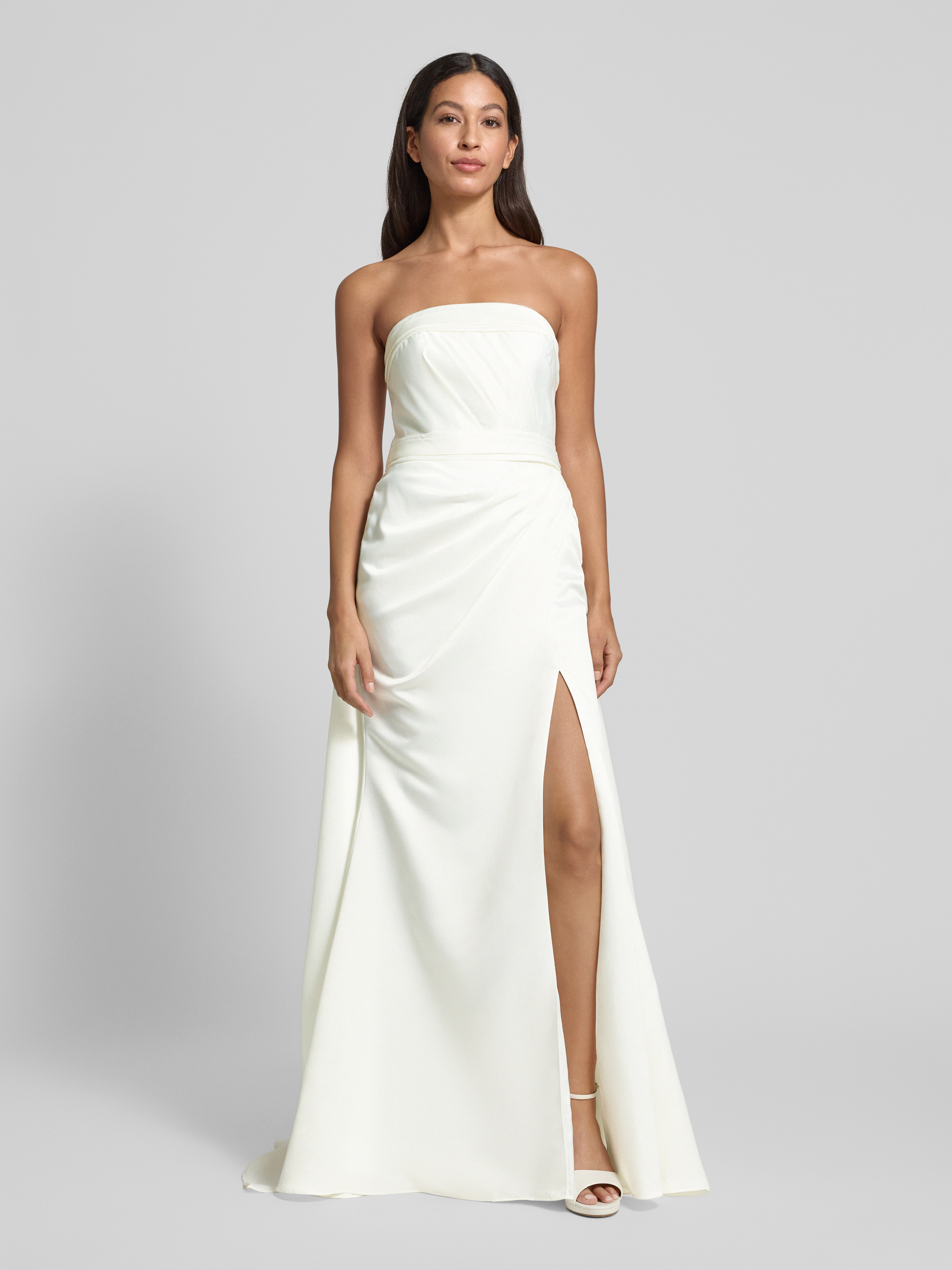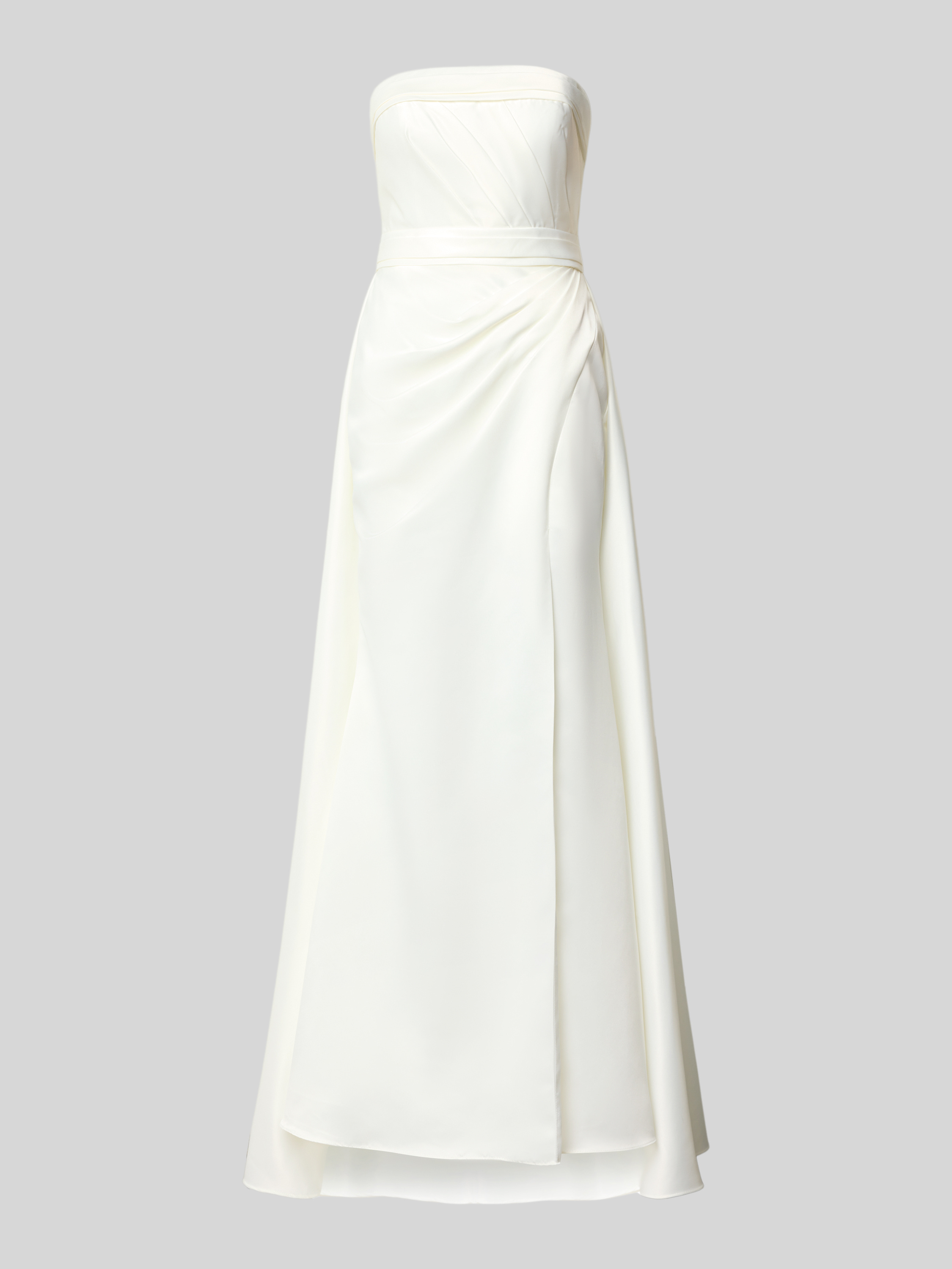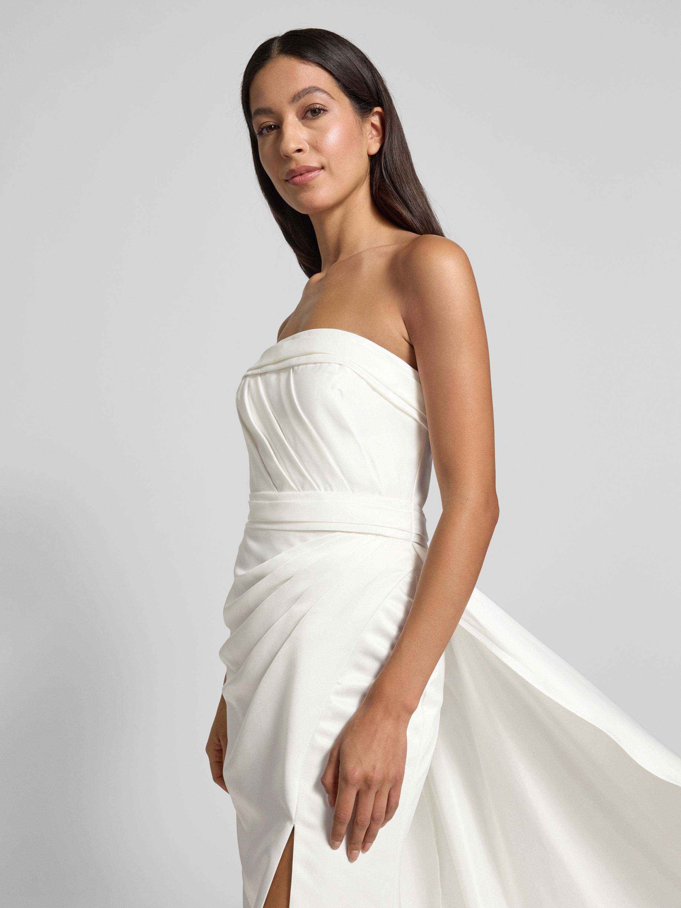 Sukienka wieczorowa z odkrytymi ramionami i rozcięciem - złamany biały