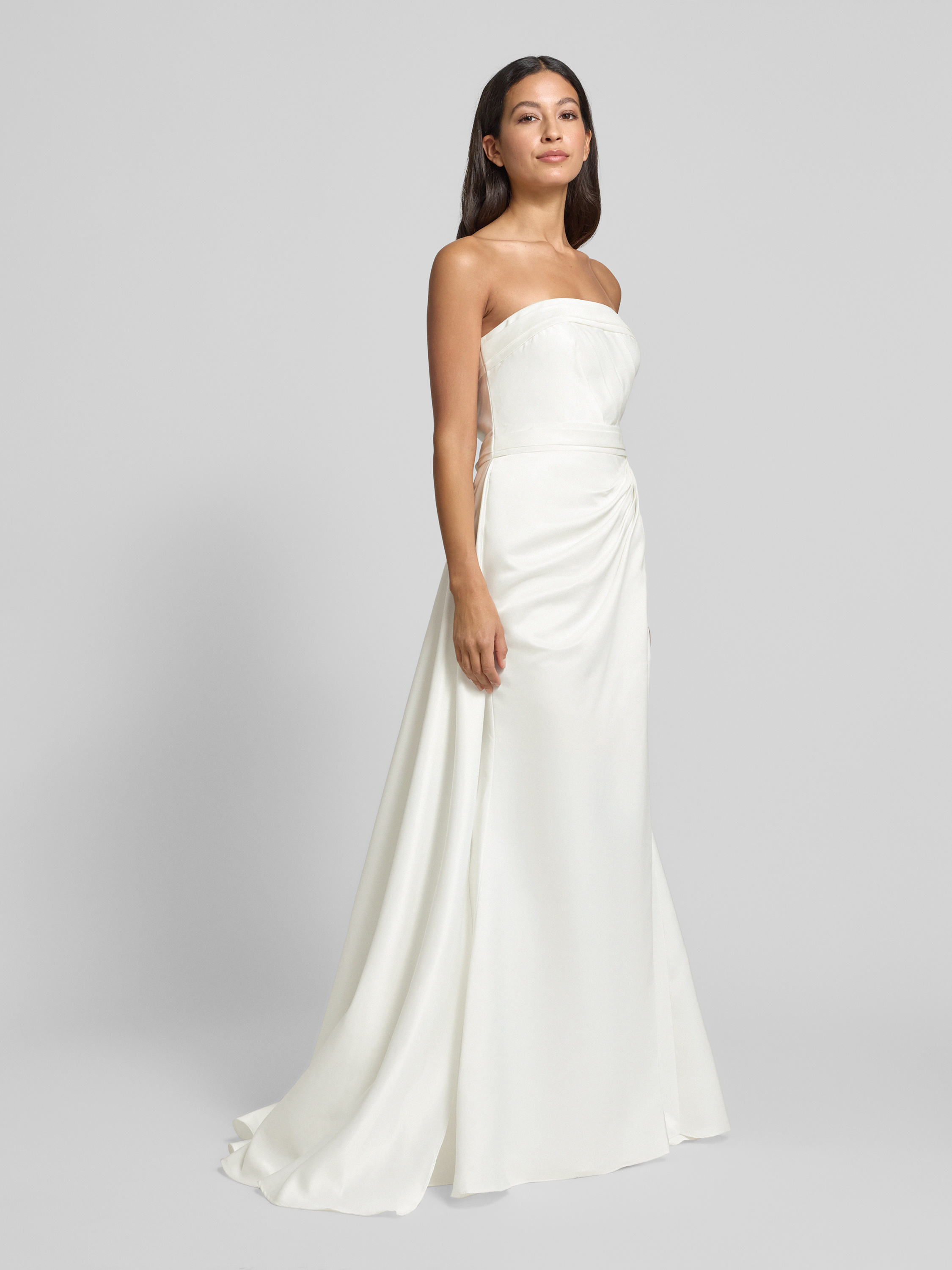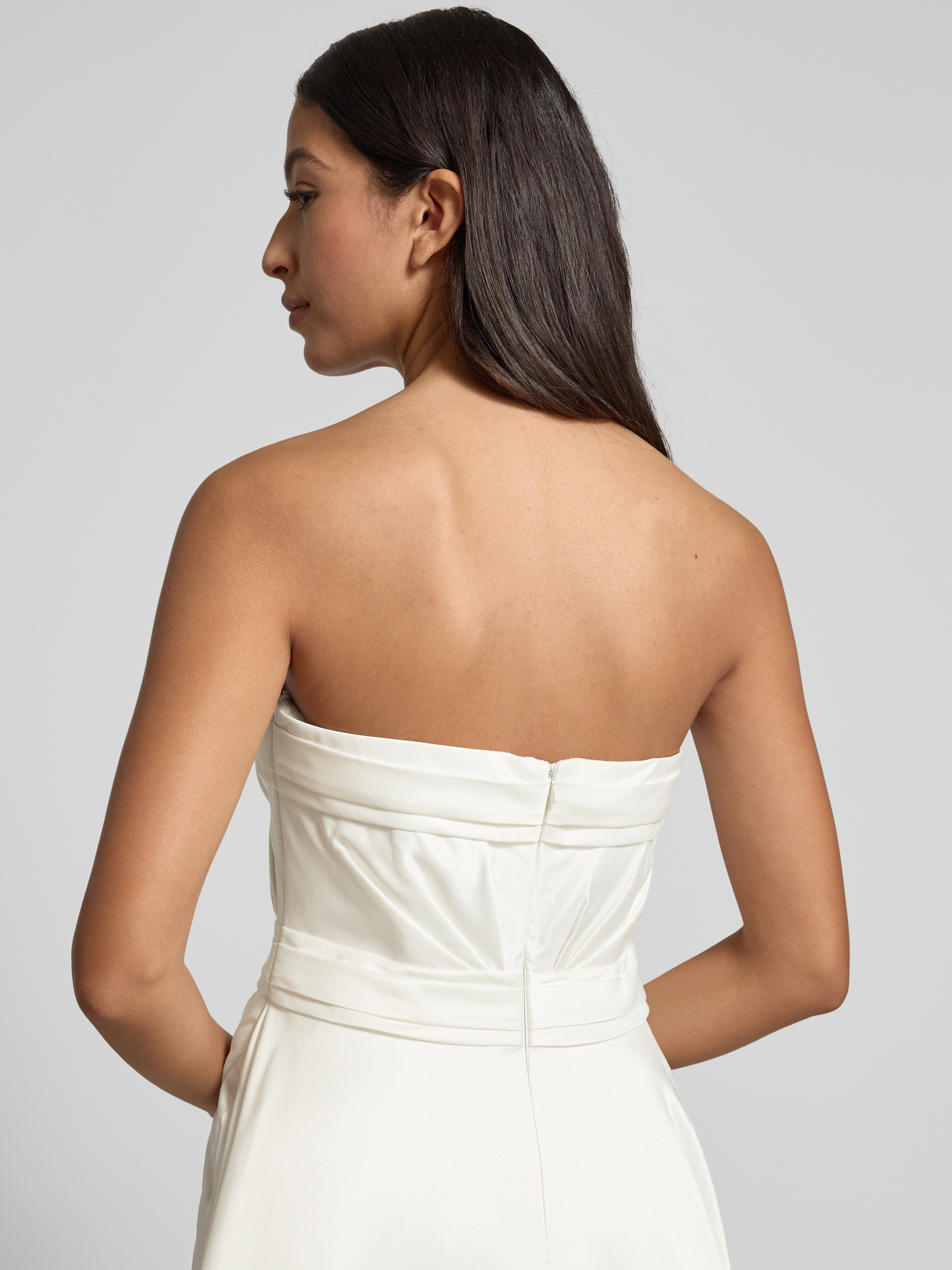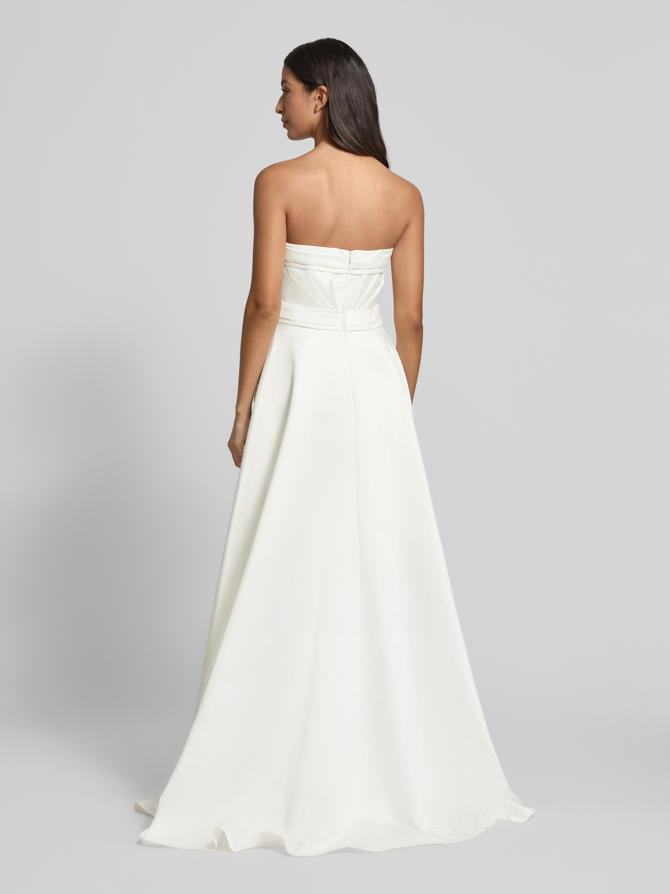 Sukienka wieczorowa z odkrytymi ramionami i rozcięciem - złamany biały