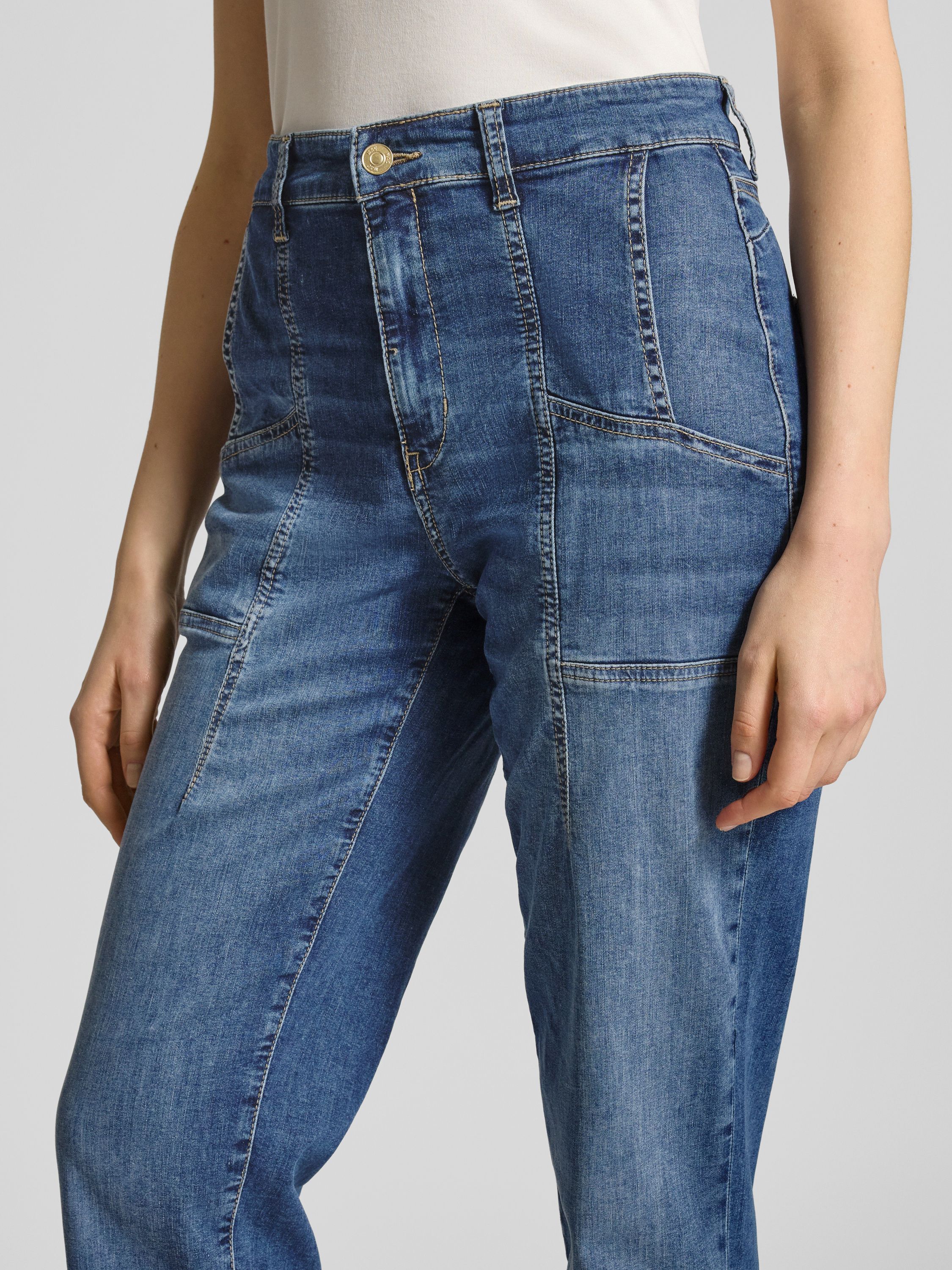 Jeansy o kroju mom fit z wpuszczanymi kieszeniami model ‘Carol’ - ciemnoniebieski