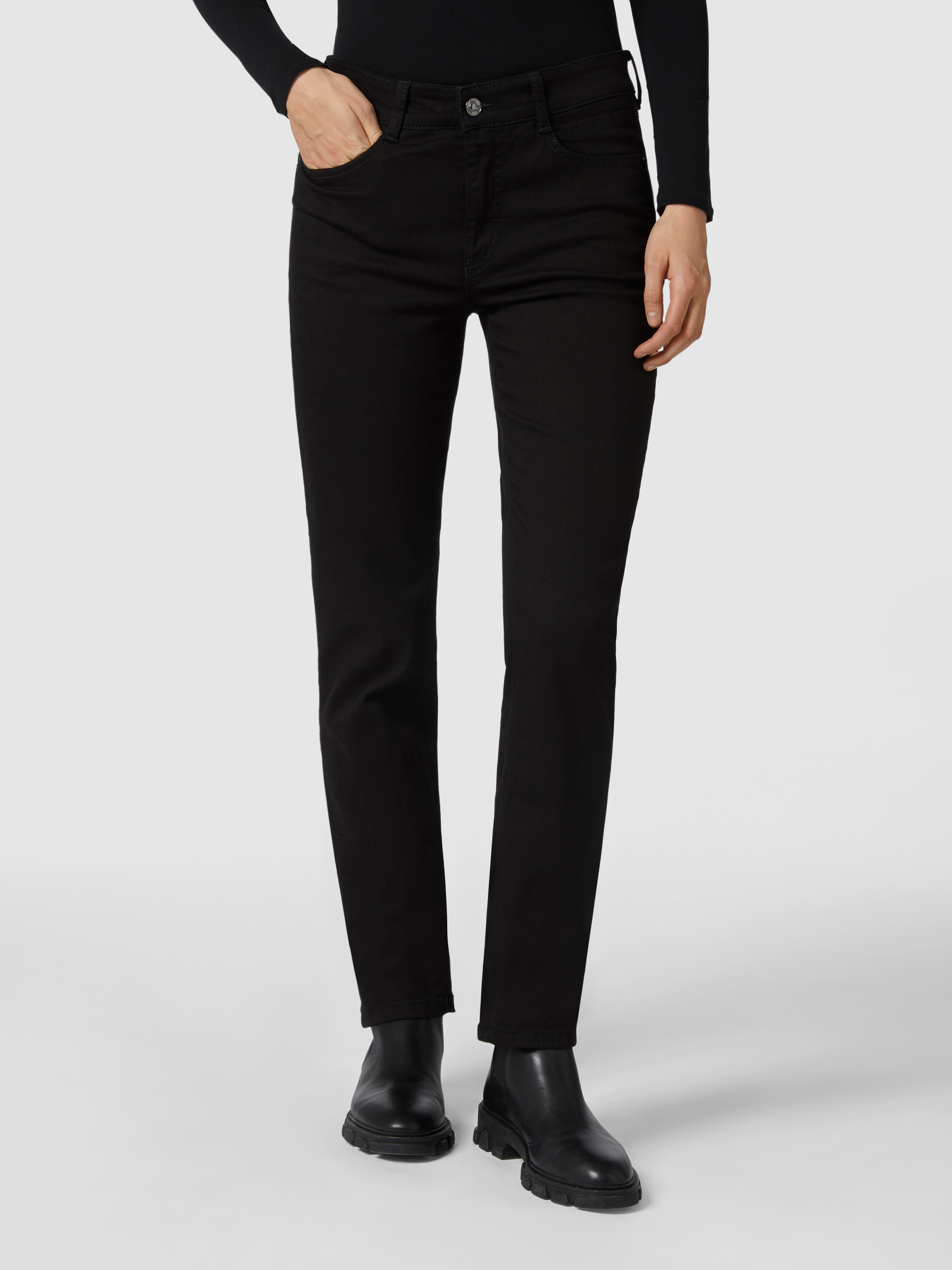 Jeansy o kroju straight fit z naszywką z logo model ‘Angela’ - czarny