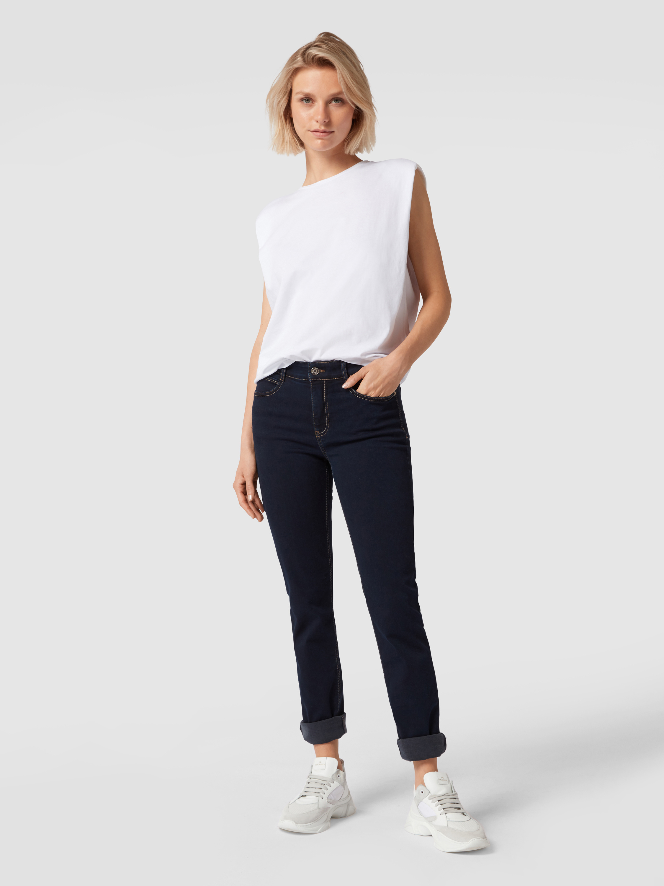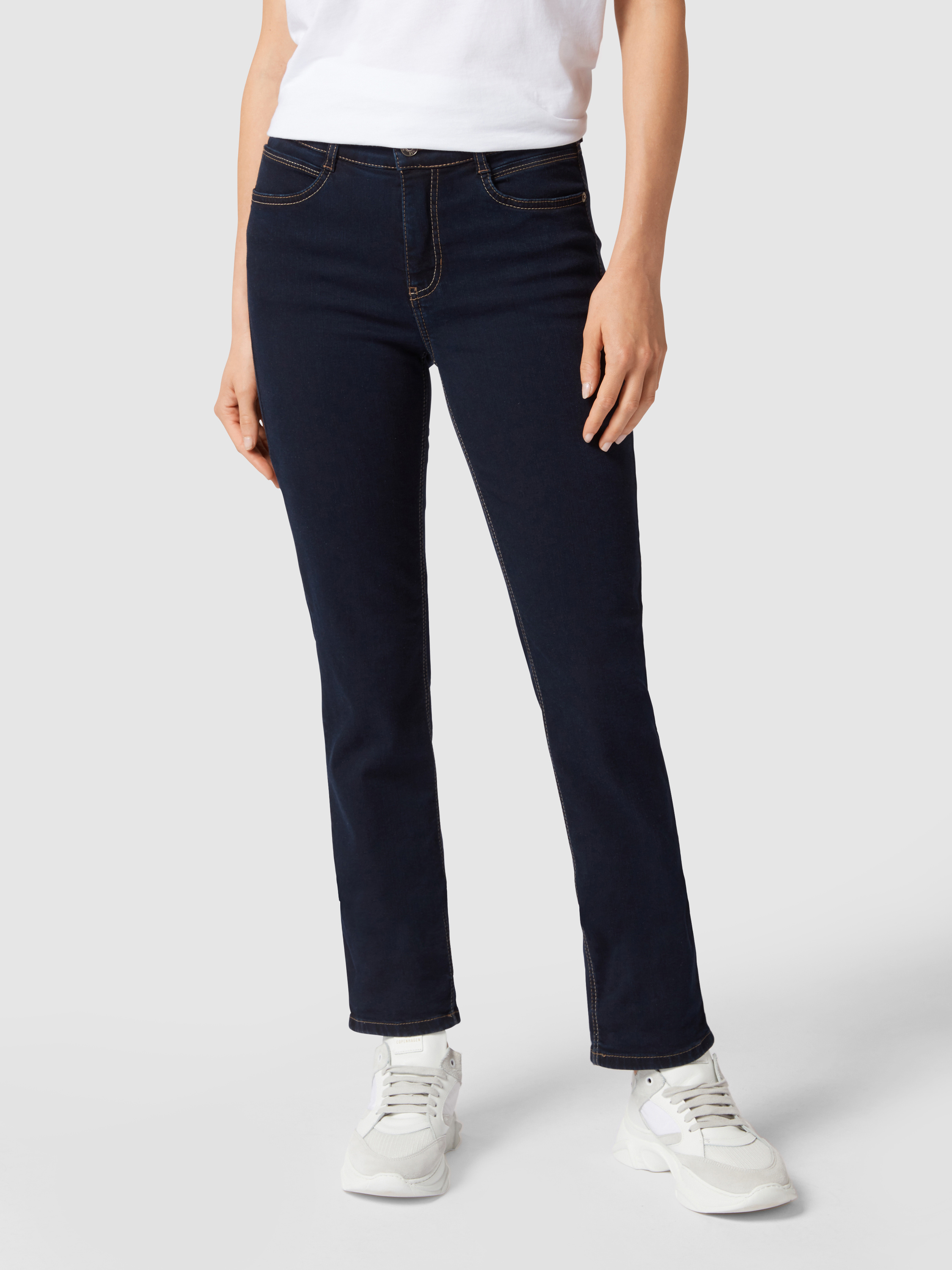 Jeansy o kroju straight fit z naszywką z logo model ‘Angela’ - granatowy