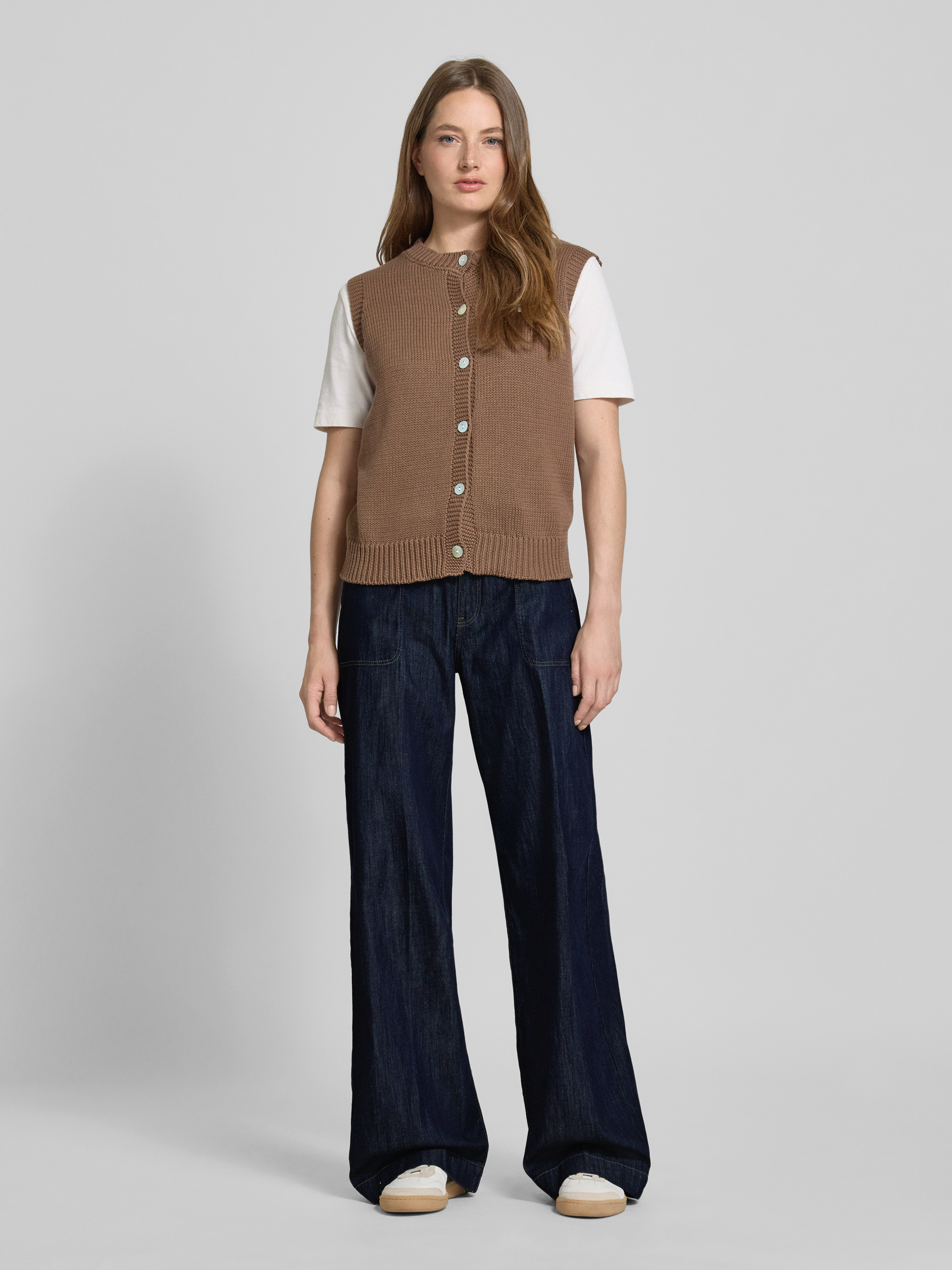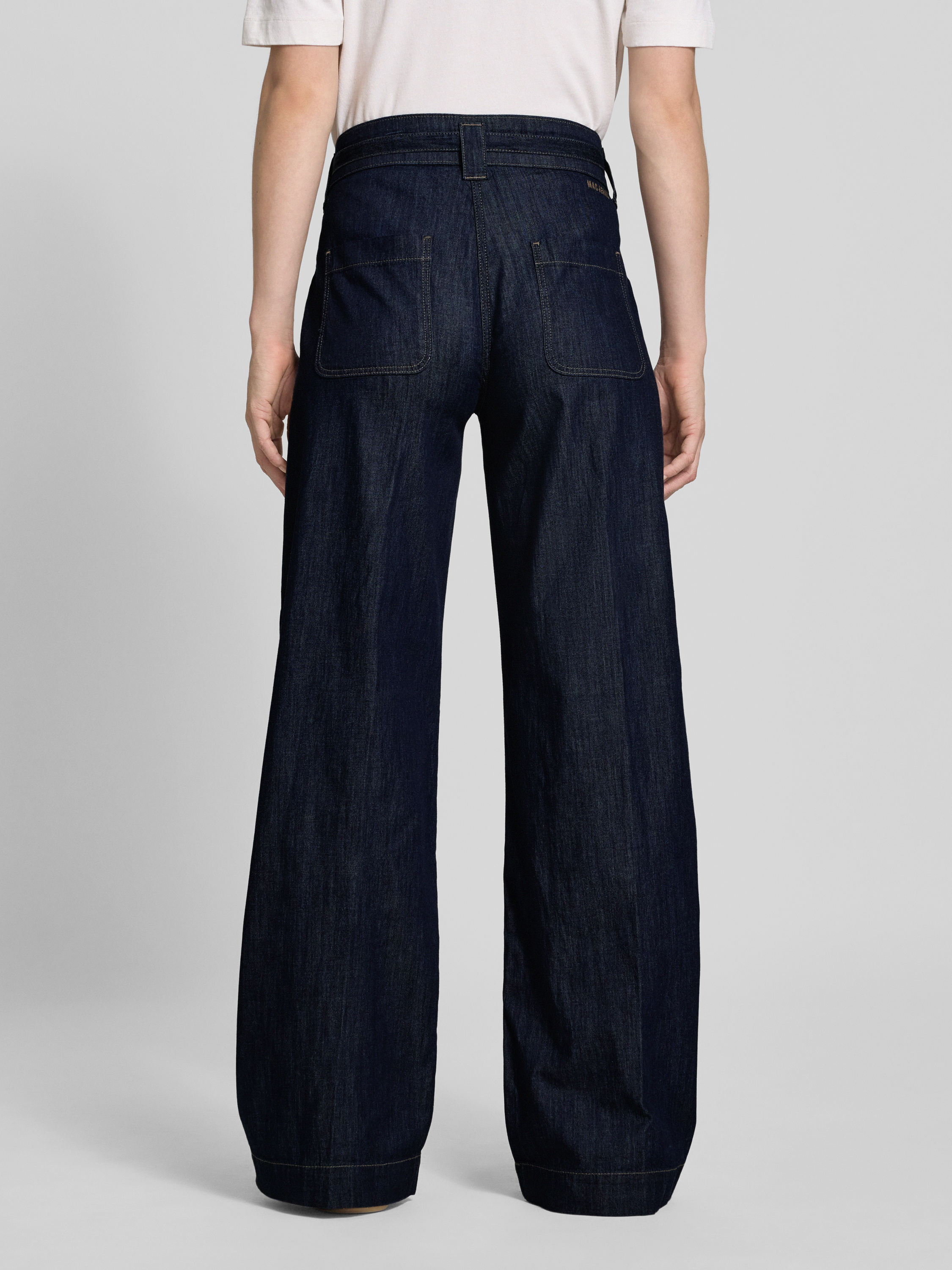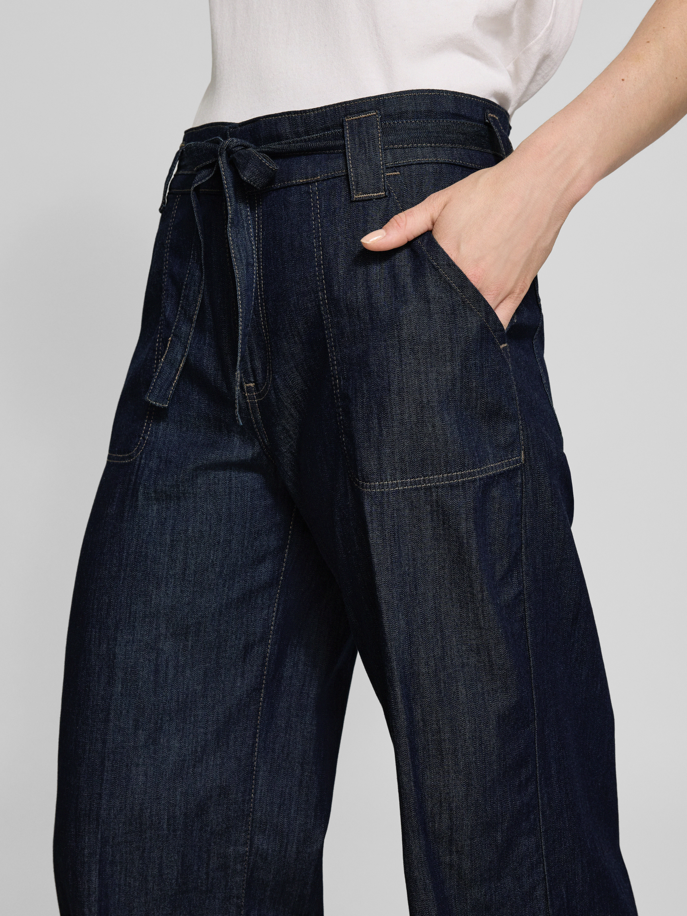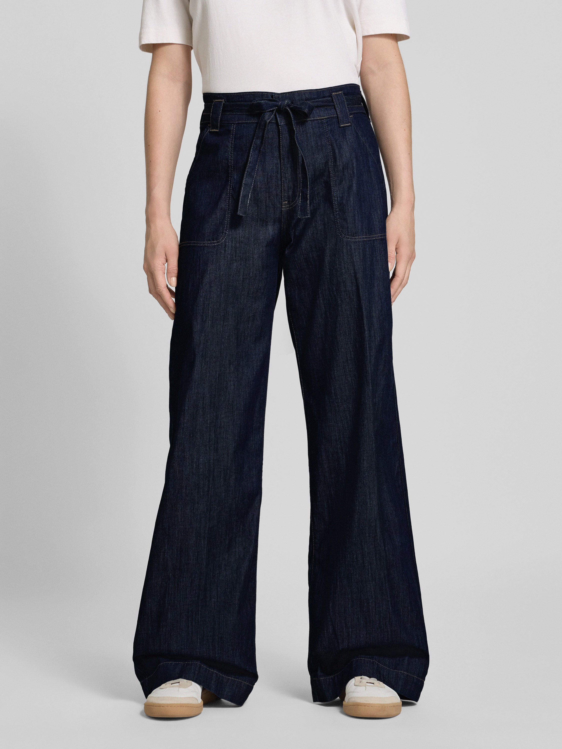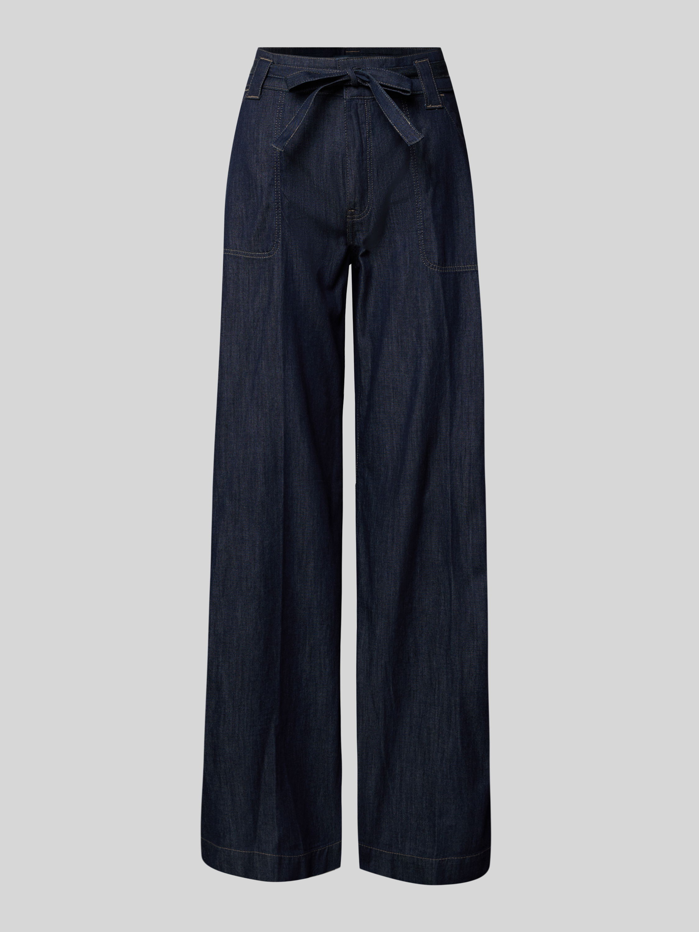 Jeansy z szeroką nogawką i wiązanym paskiem model ‘Sienna’ - ciemnoniebieski
